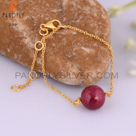 14k Gold Plated 925 Silver Red Onyx Gemstone Bracelet