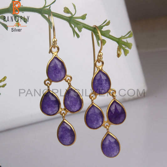 18K Gold 925 Sterling Silver Purple Chandelier Earrings