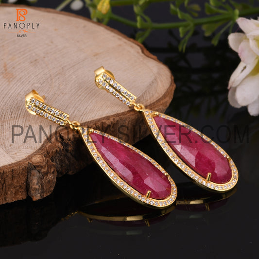 14K Gold Pear Ruby Corundum, Cz Drop Wedding Earrings