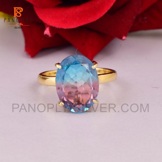 18k Gold & 925 Silver Alexandrite Ring – Color Changing Purple to Blue