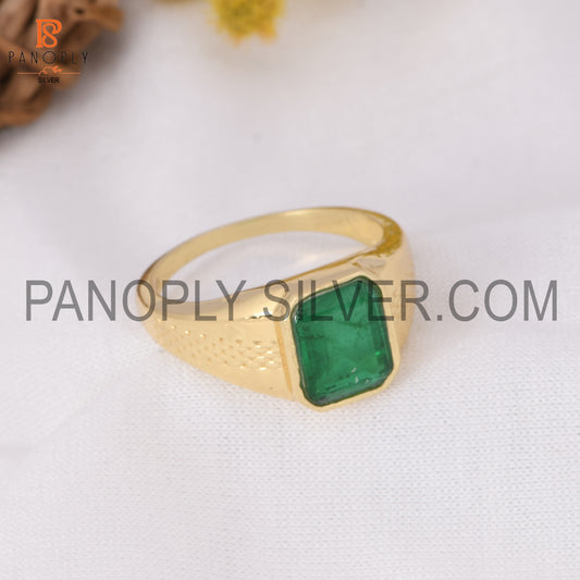 0.5 Micron 14k Gold Plated Gem Zambian Emerald Ring