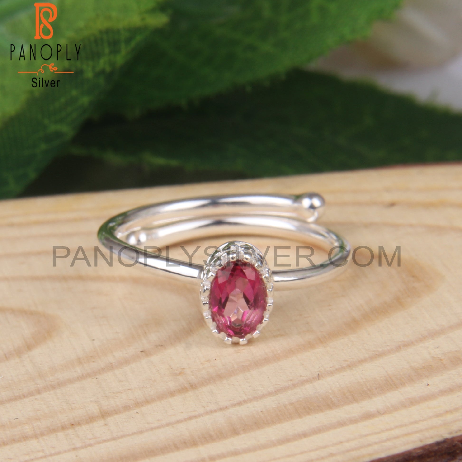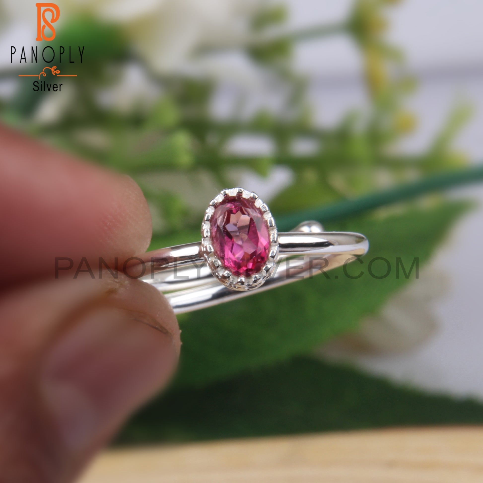 Pink Topaz Oval Shape 925 Sterling Silver Women Ring