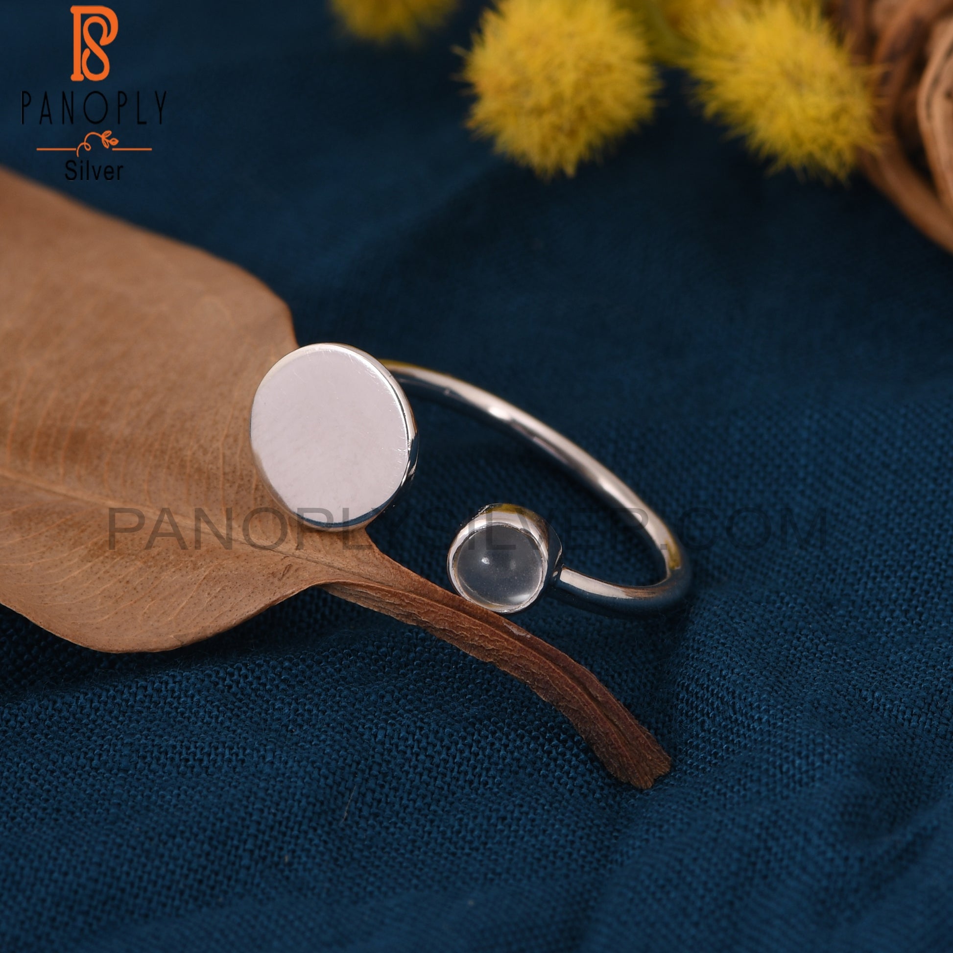 925 Silver Crystal Quartz Adjustable Rings Initial Jewelry