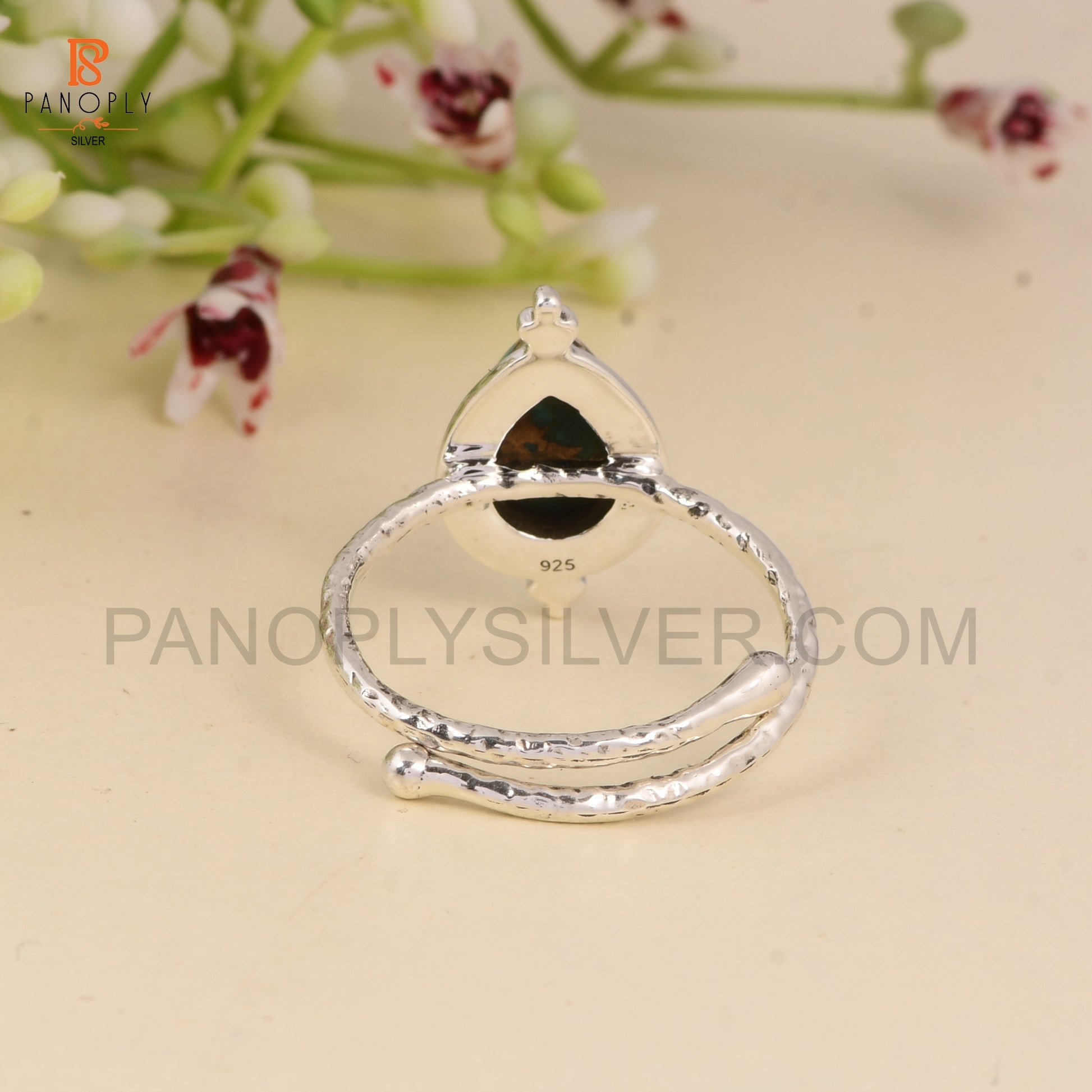925 Sterling Silver Mojave Copper Turquoise Pear 10x7mm Hammered Ajustable Oxidized Ring