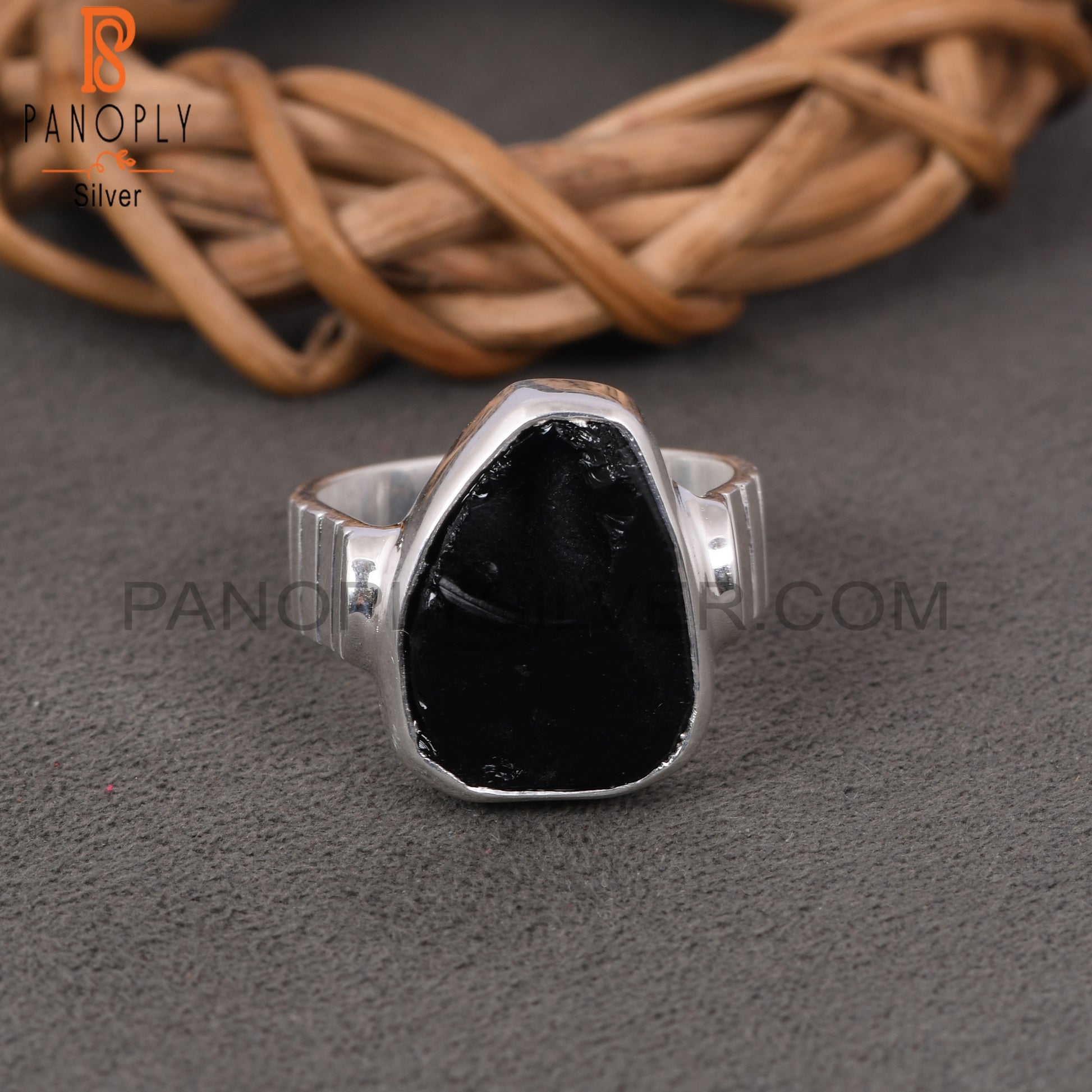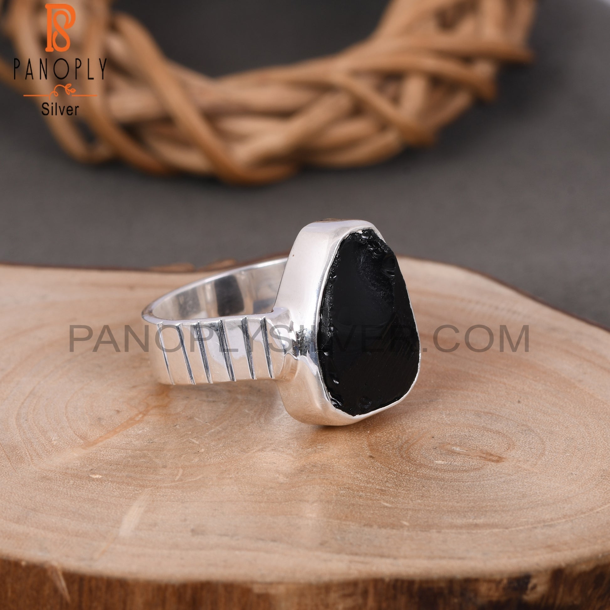 Black Obsidian Rough Bezel Set Gemstone Stackable Rings