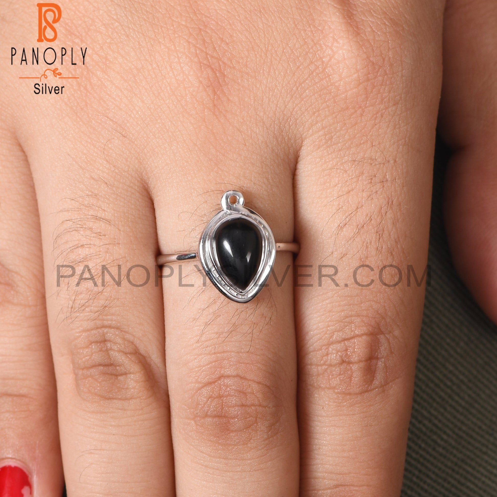 Black Onyx Gemstone 925 Silver Pear Onyx Rings