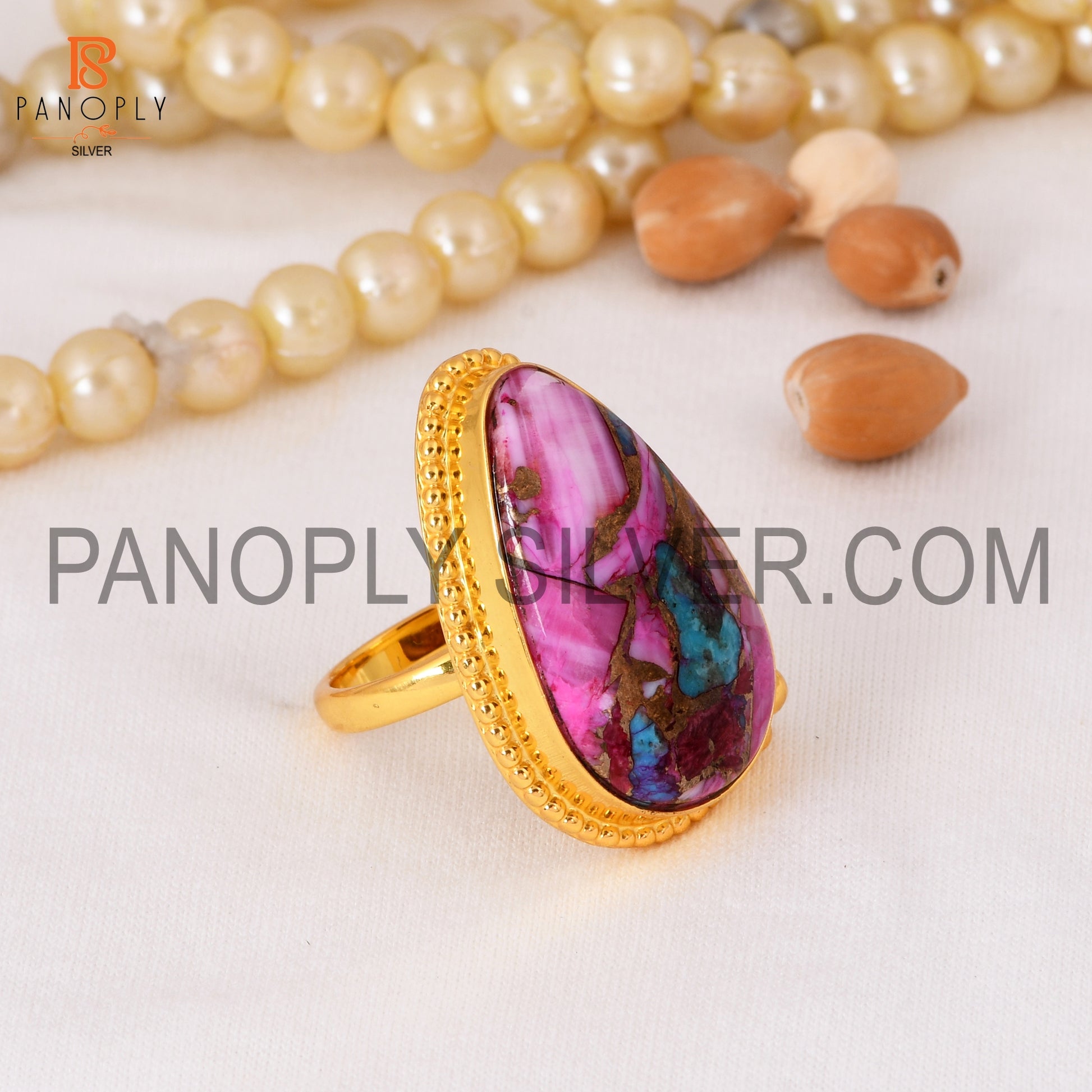 Mojave Purple Oyster Turquoise 18K Gold Plated Rings