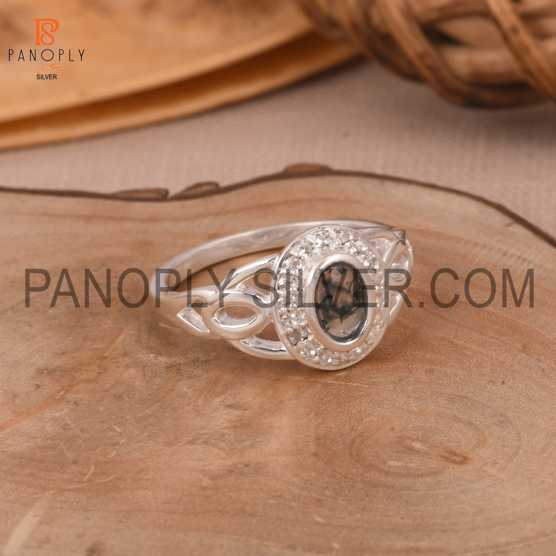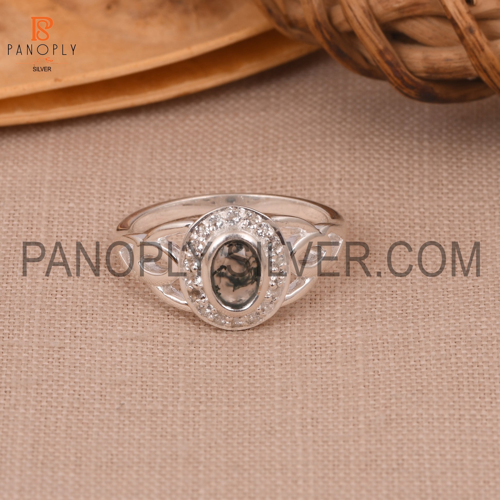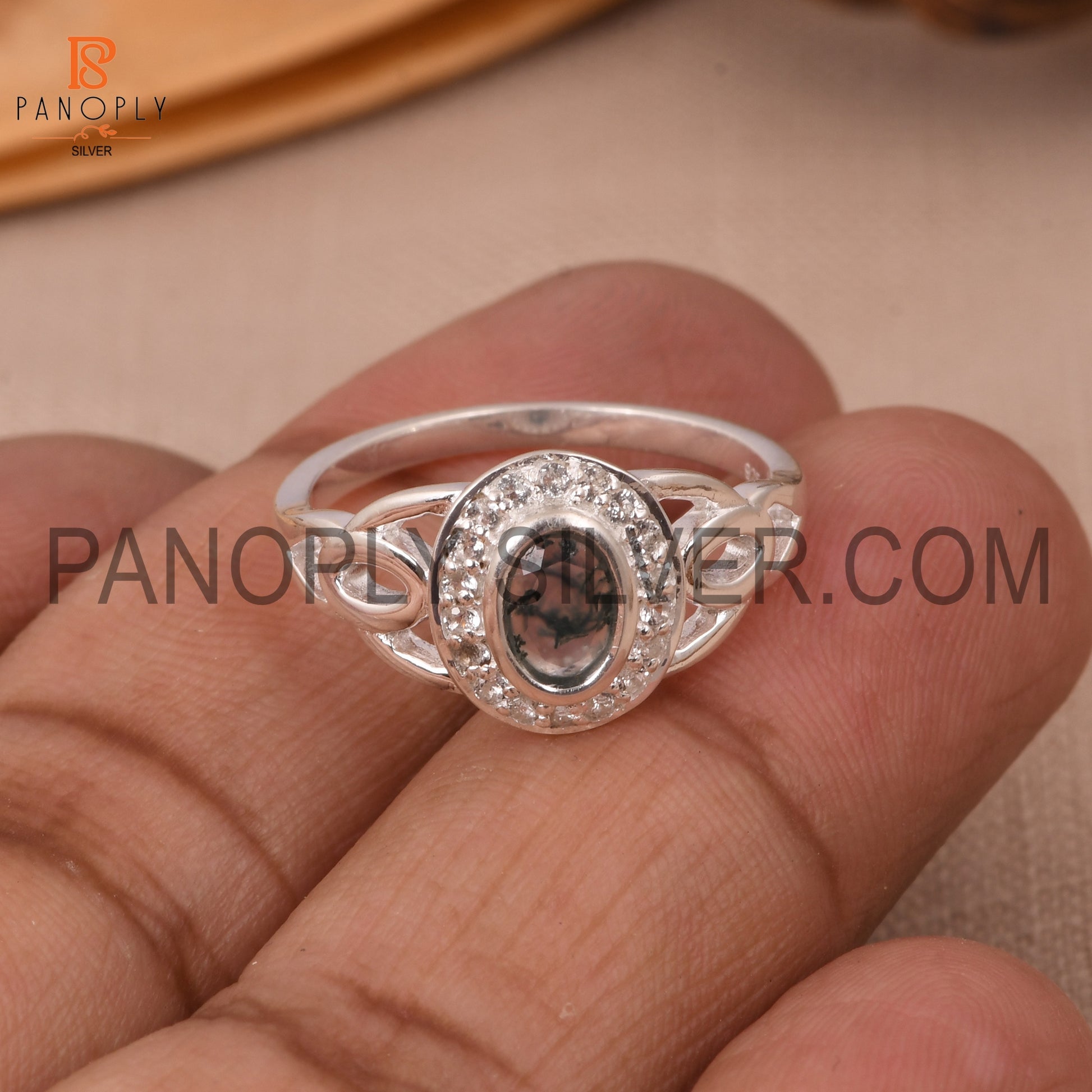 925 Moss Agate And White Topaz Silver Engagement Rings