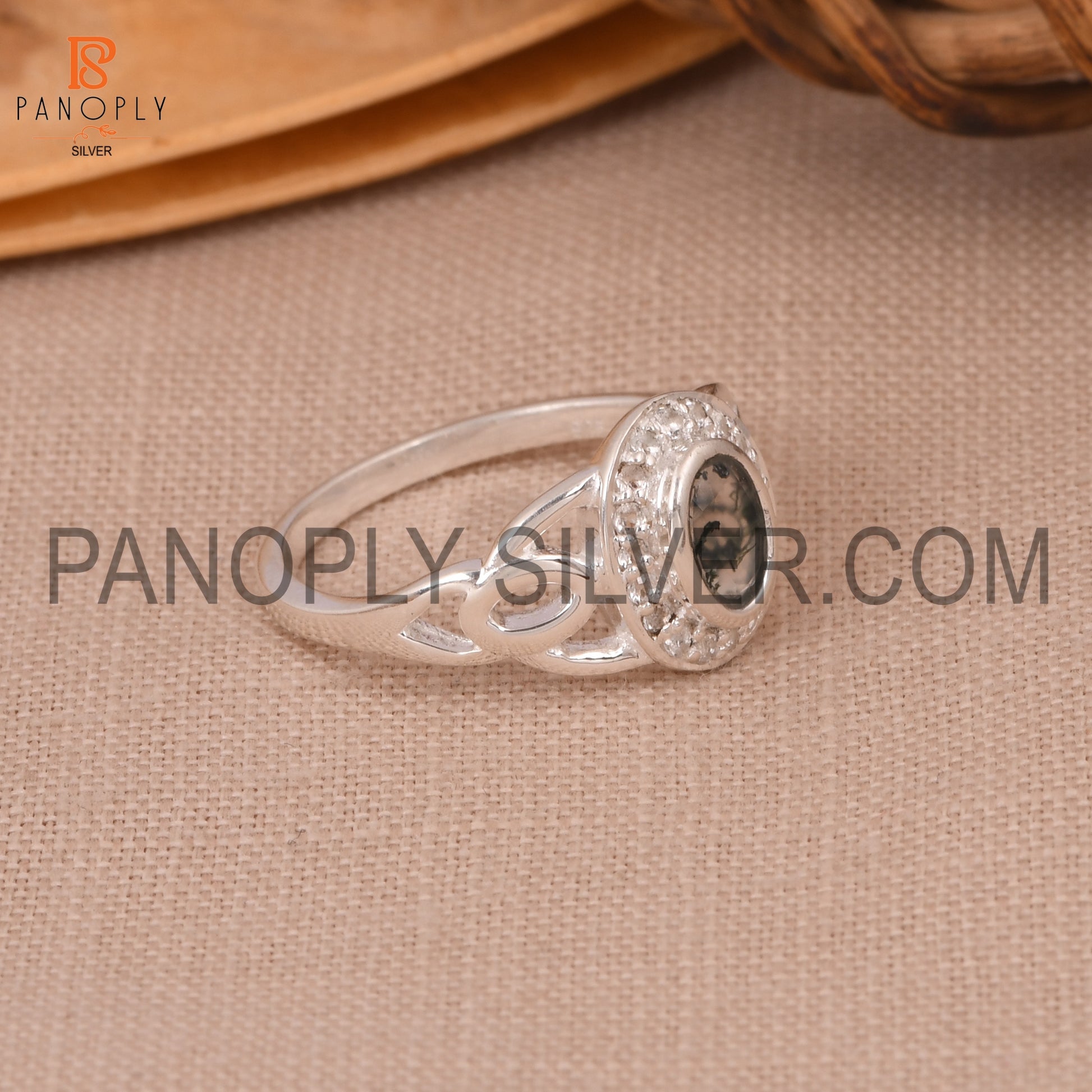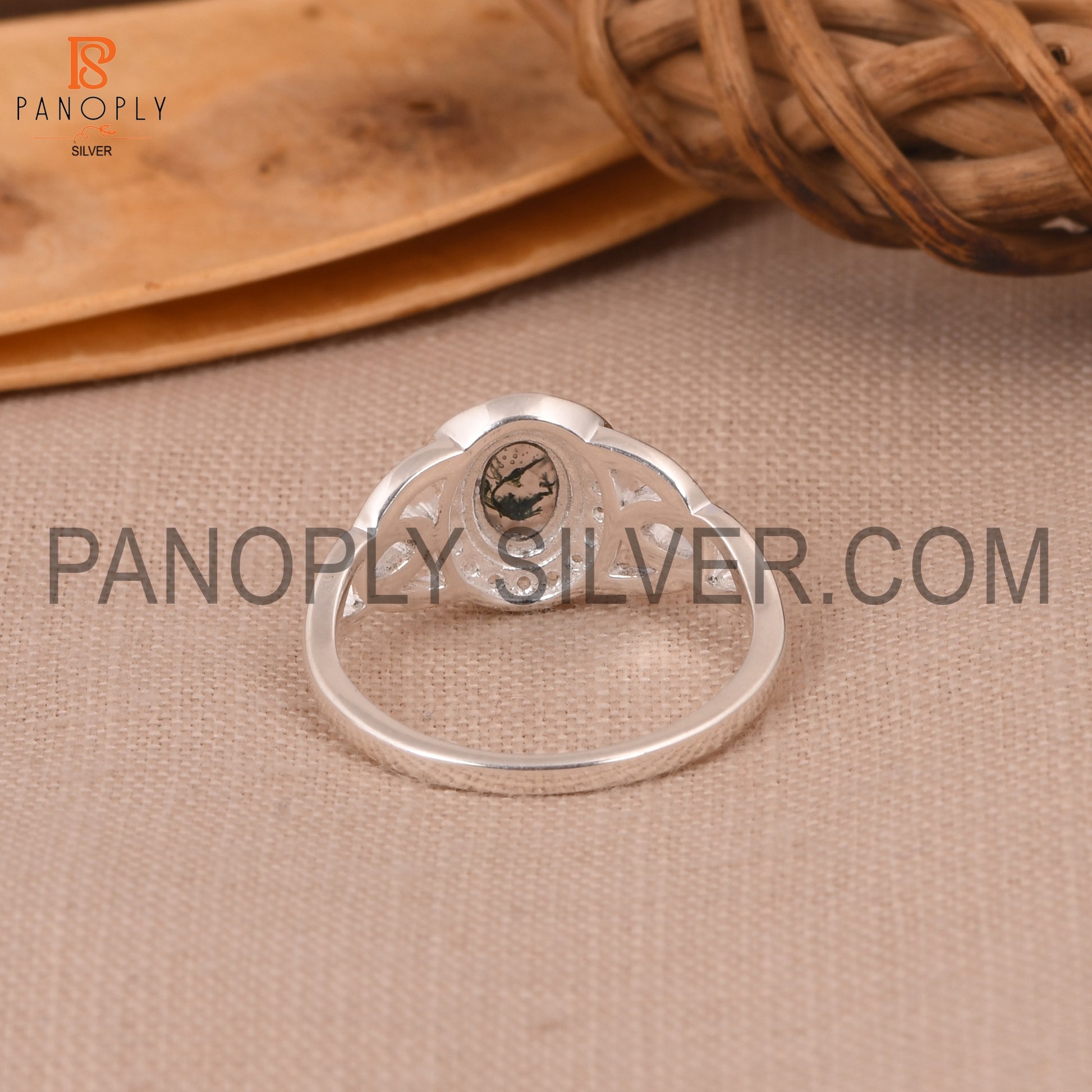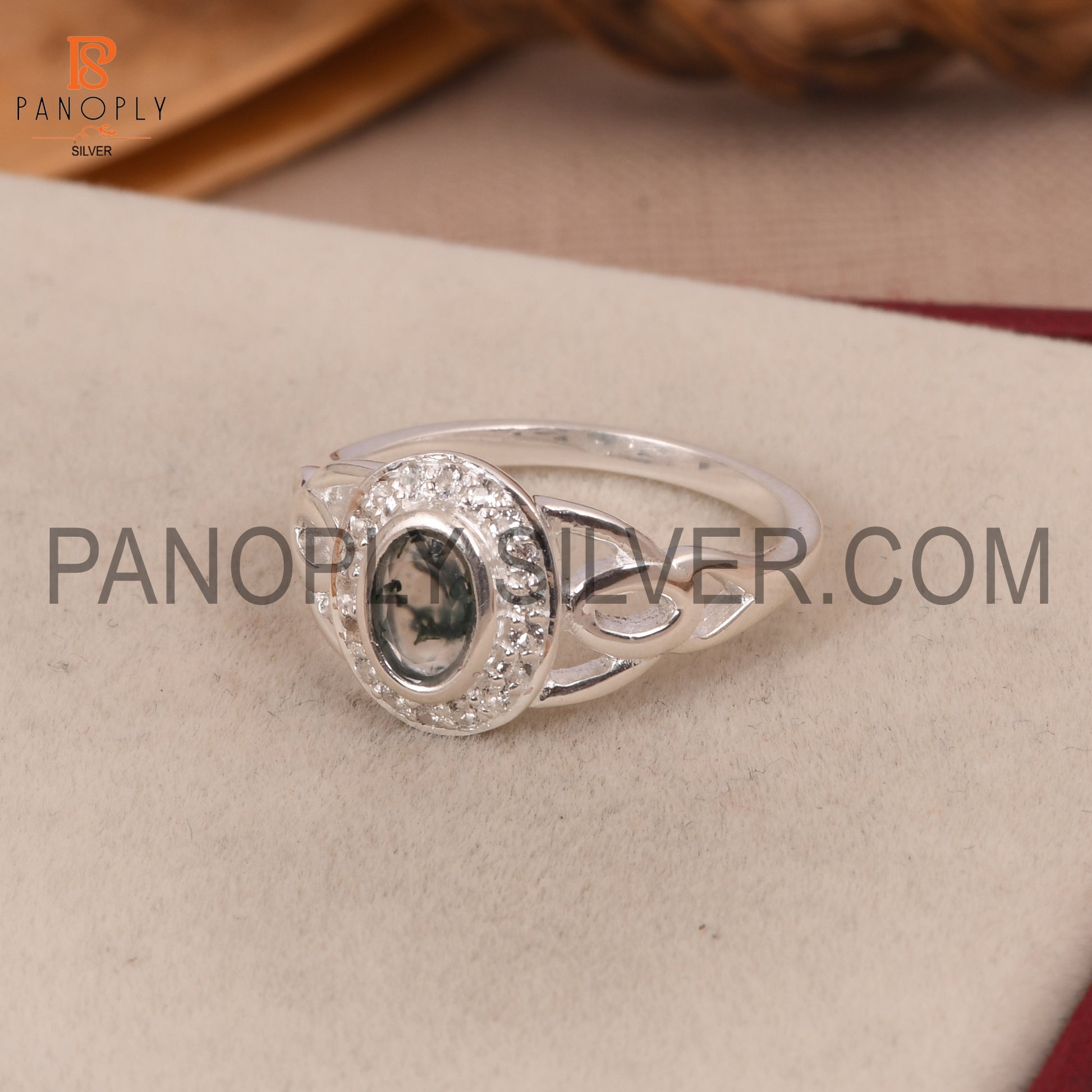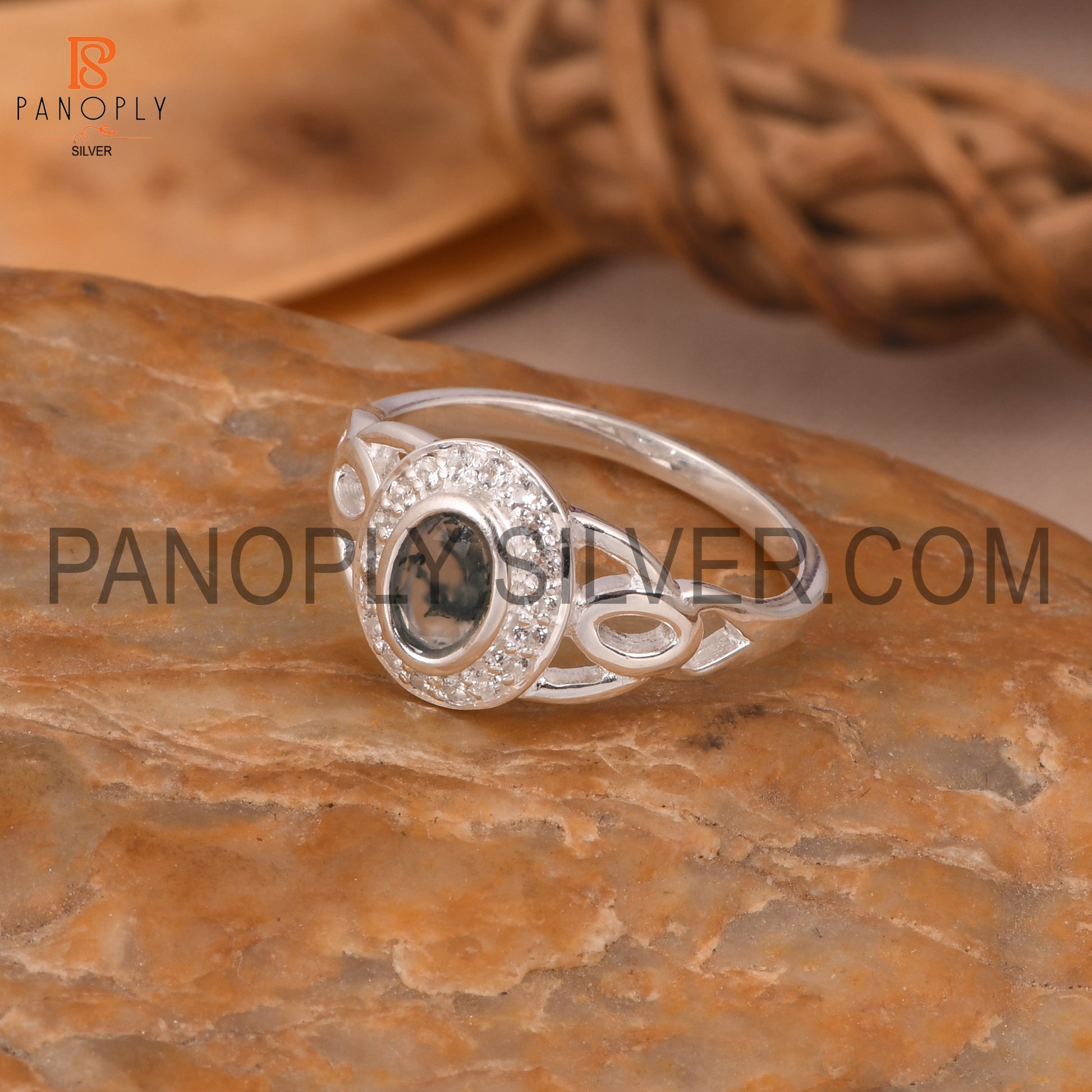 925 Moss Agate And White Topaz Silver Engagement Rings