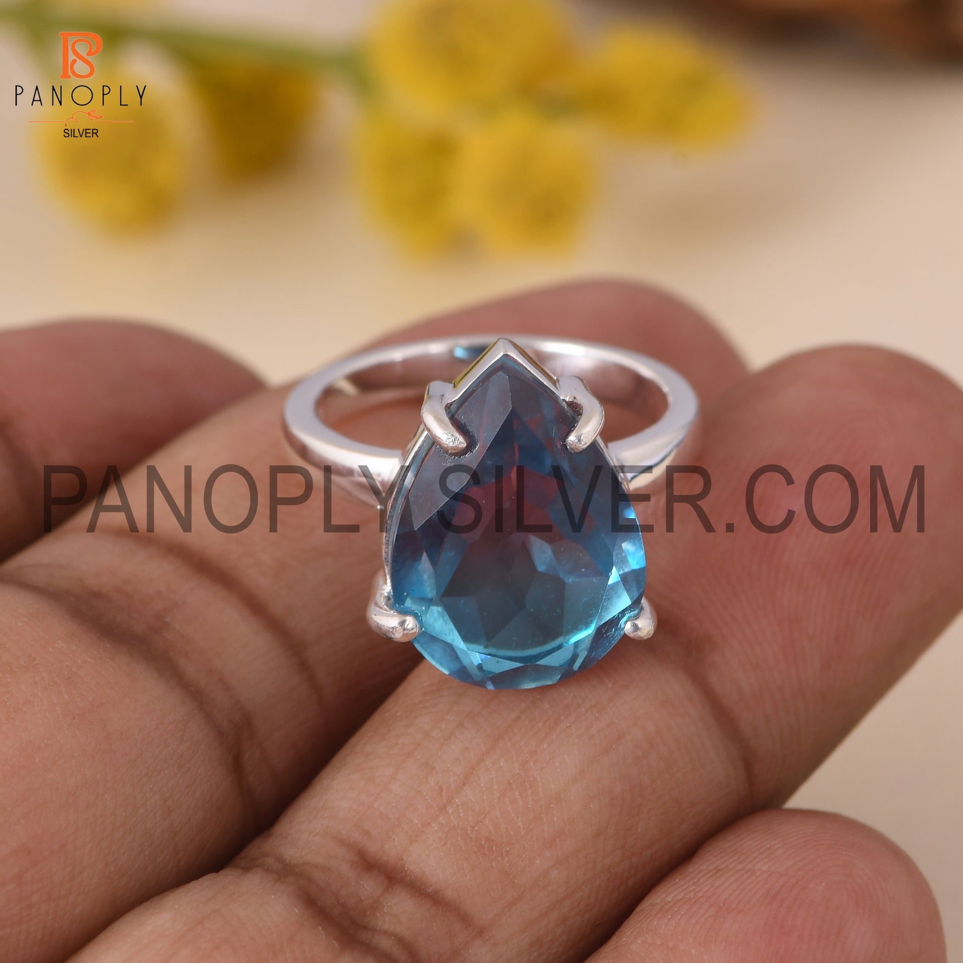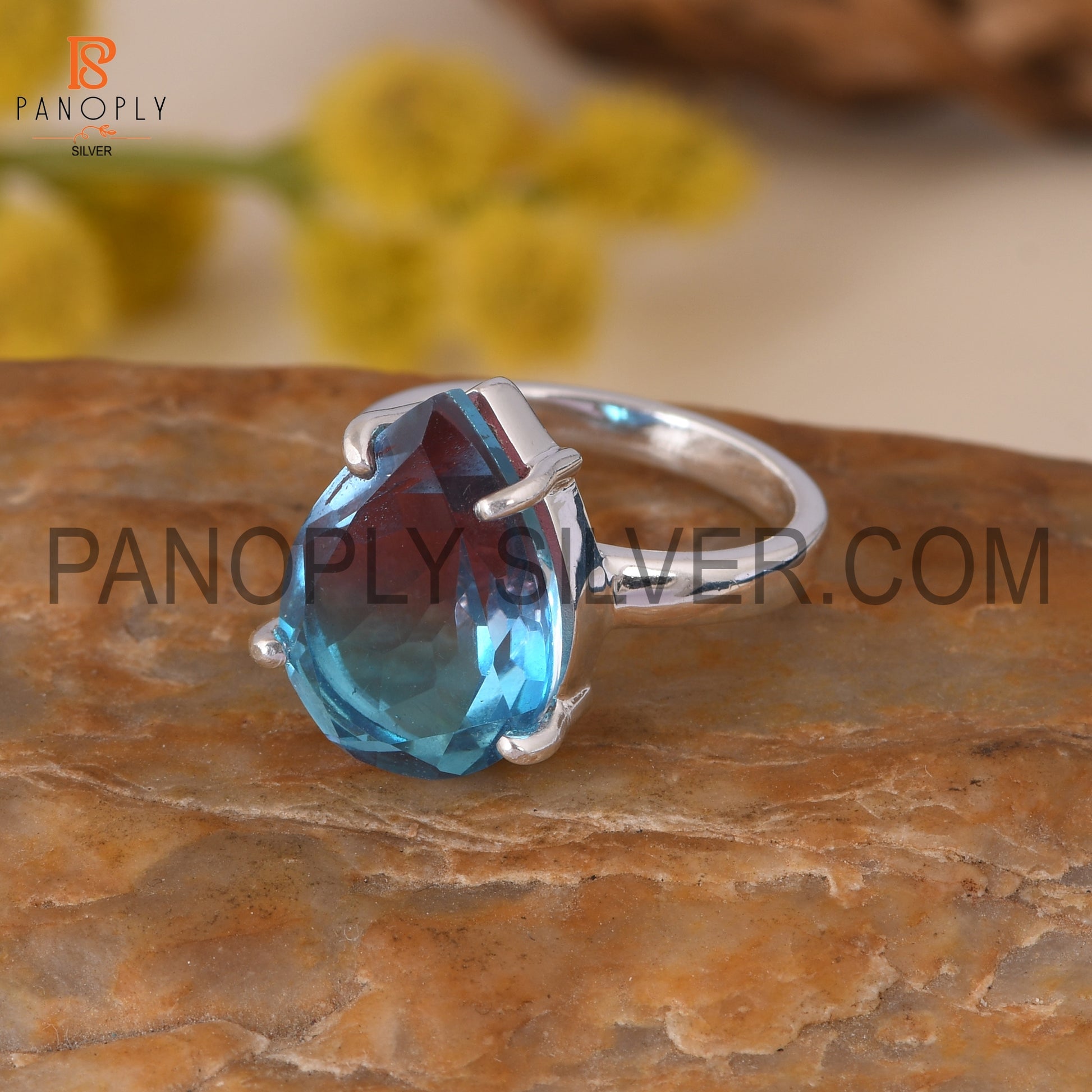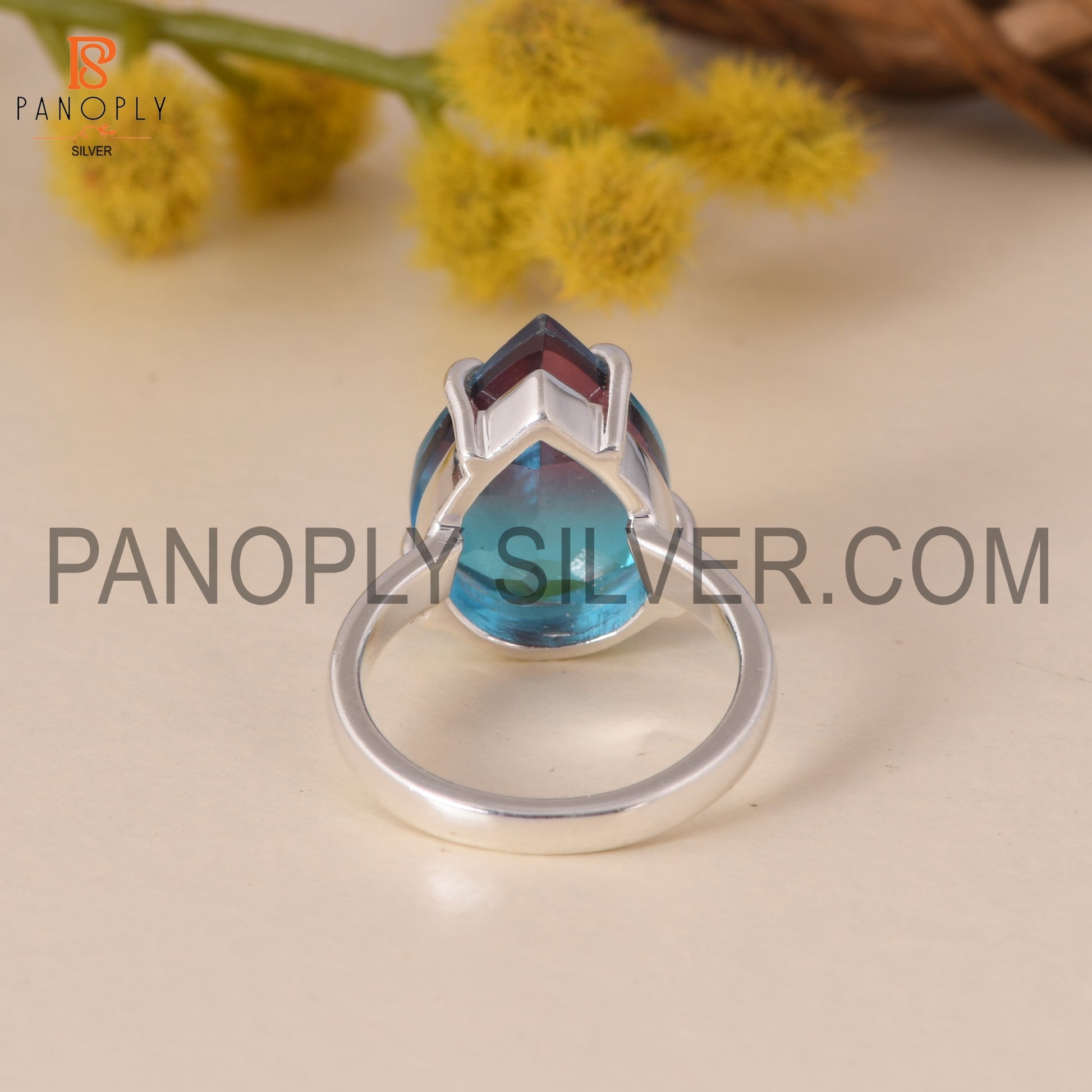 Fine 925 Silver Pear Cut Bio Alexandrite Doublet Quartz Set Ring