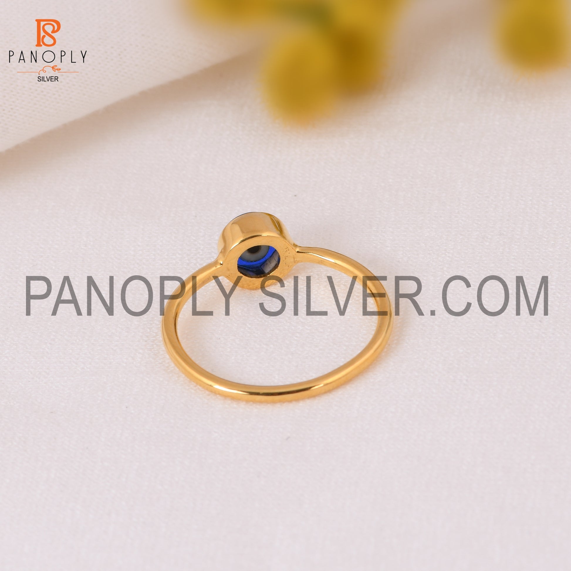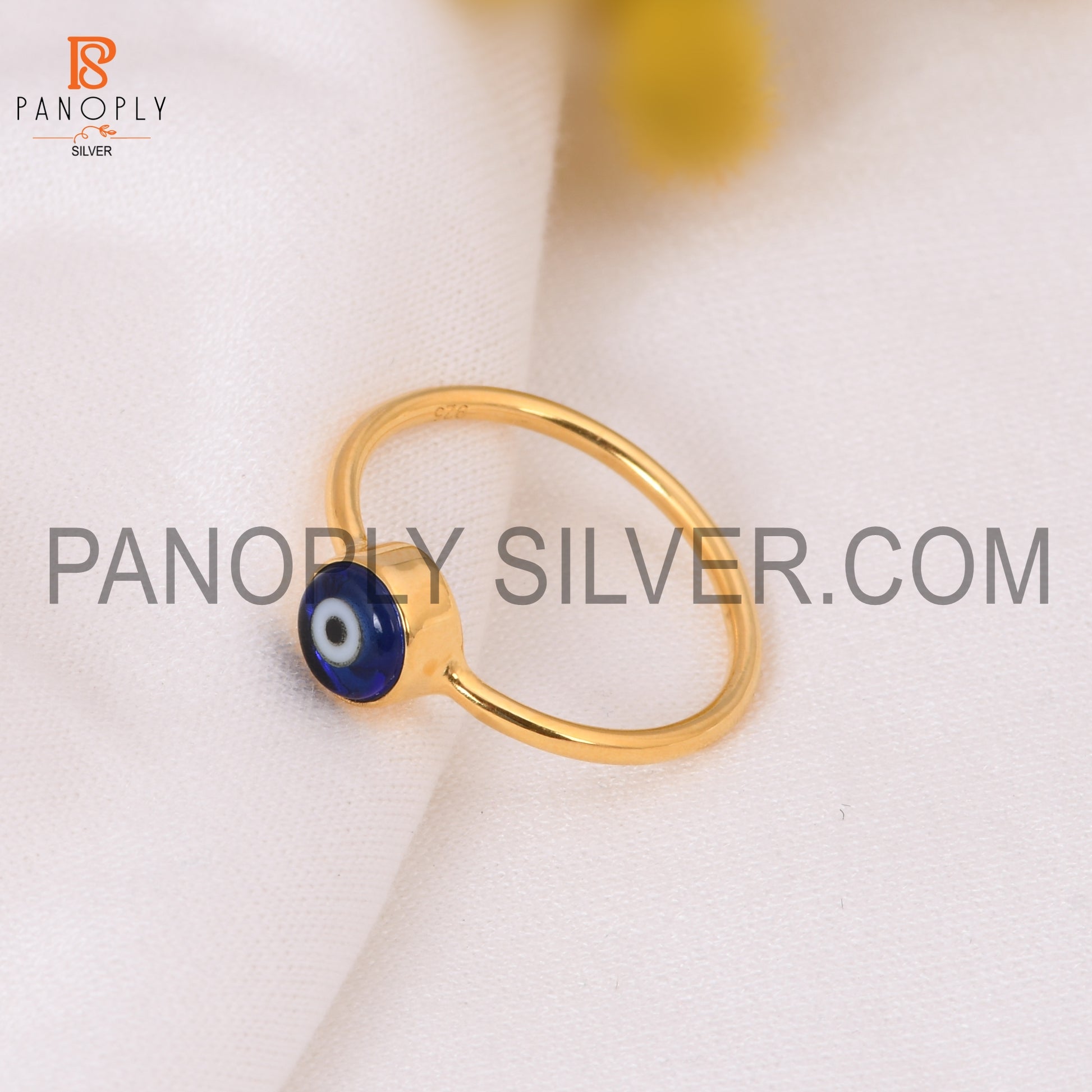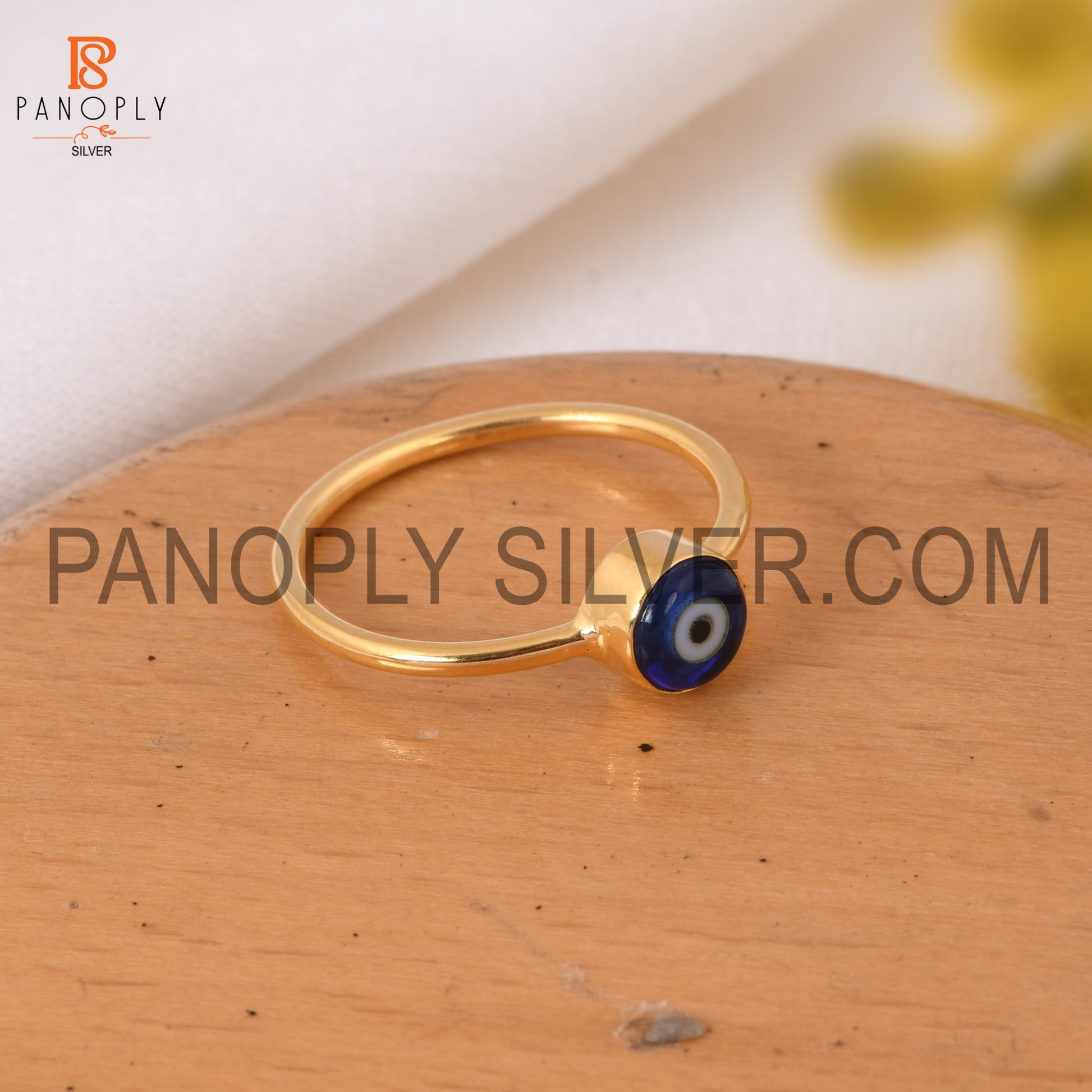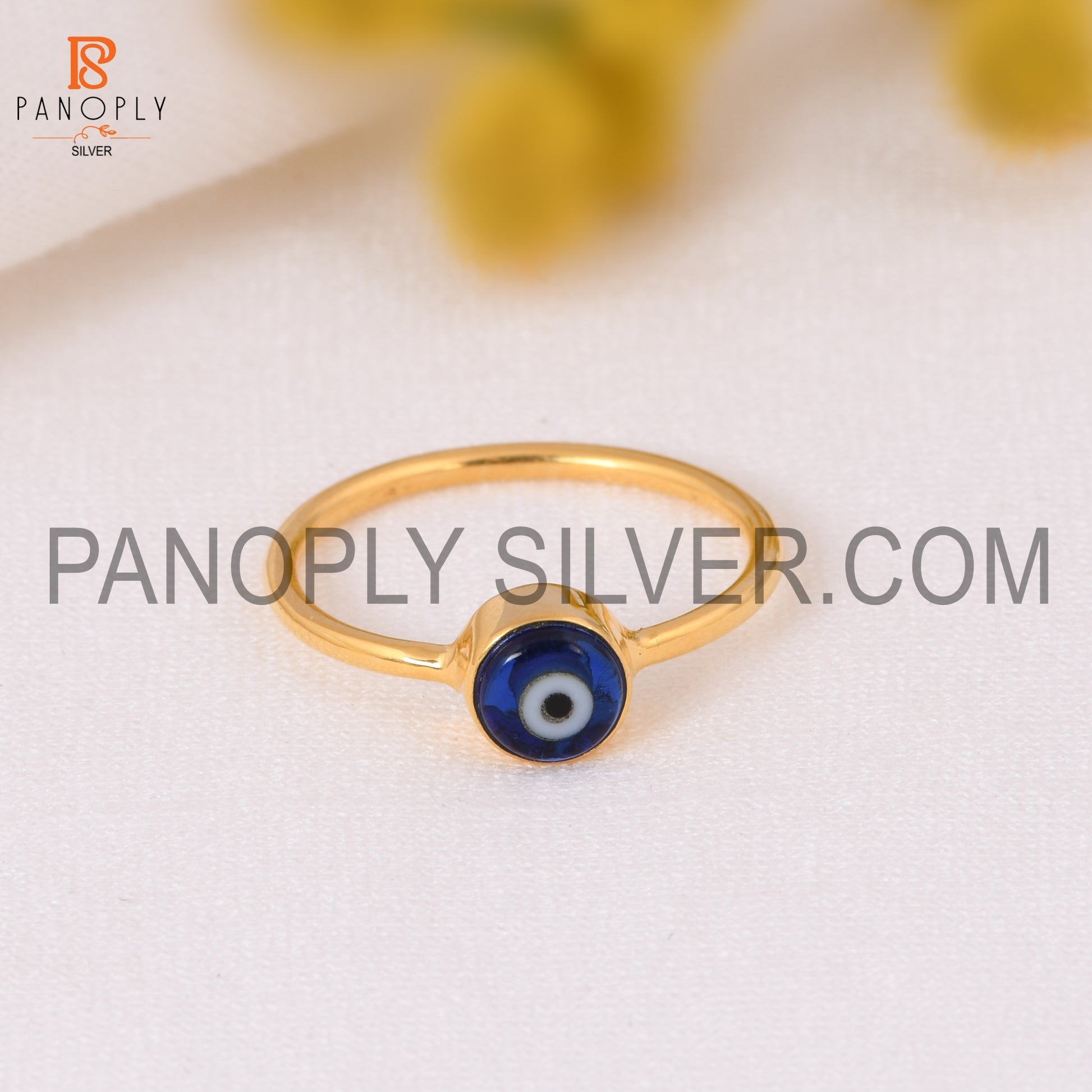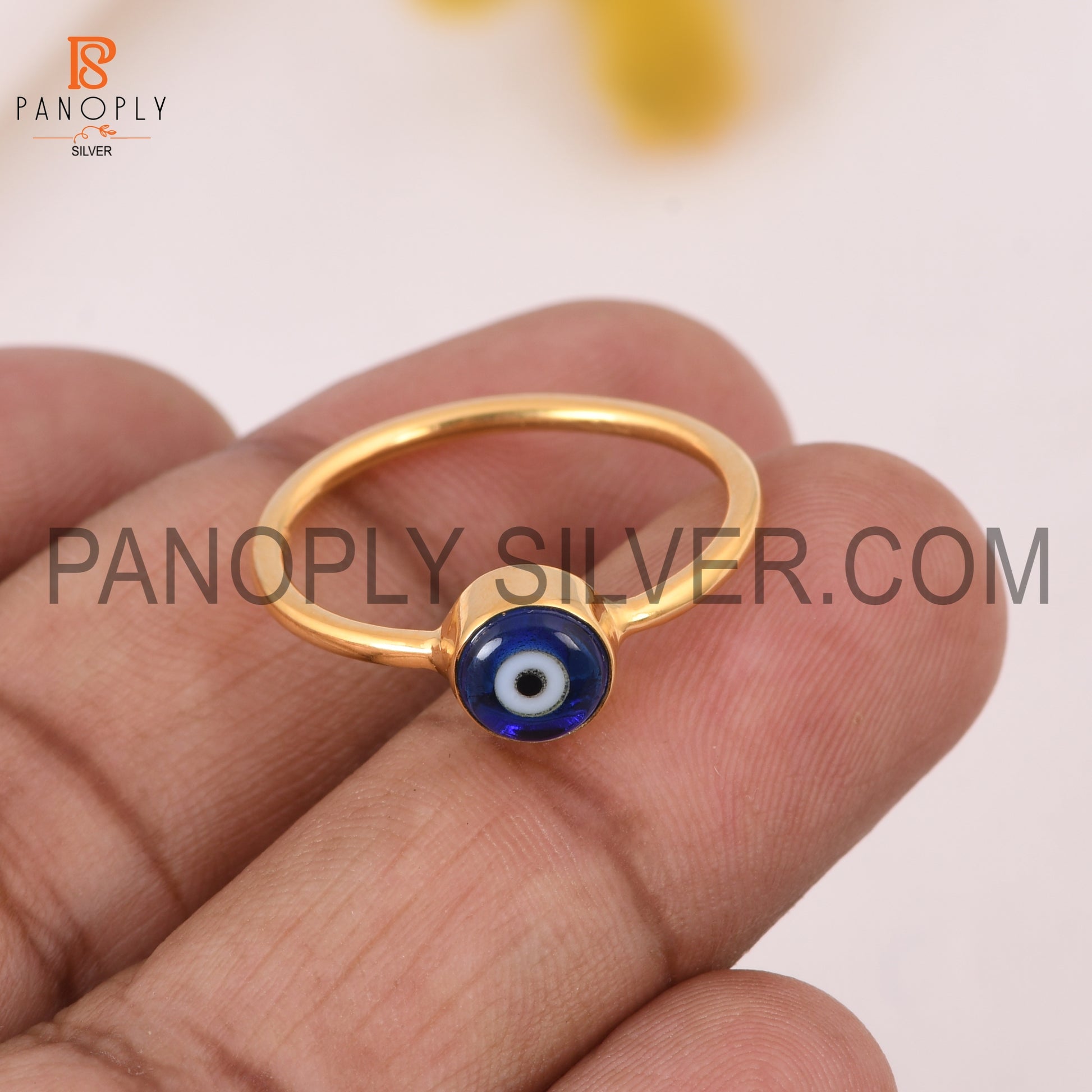 2.5 Micron 18k Gold Plated Blue Resin Gemstone Evil Eye Ring