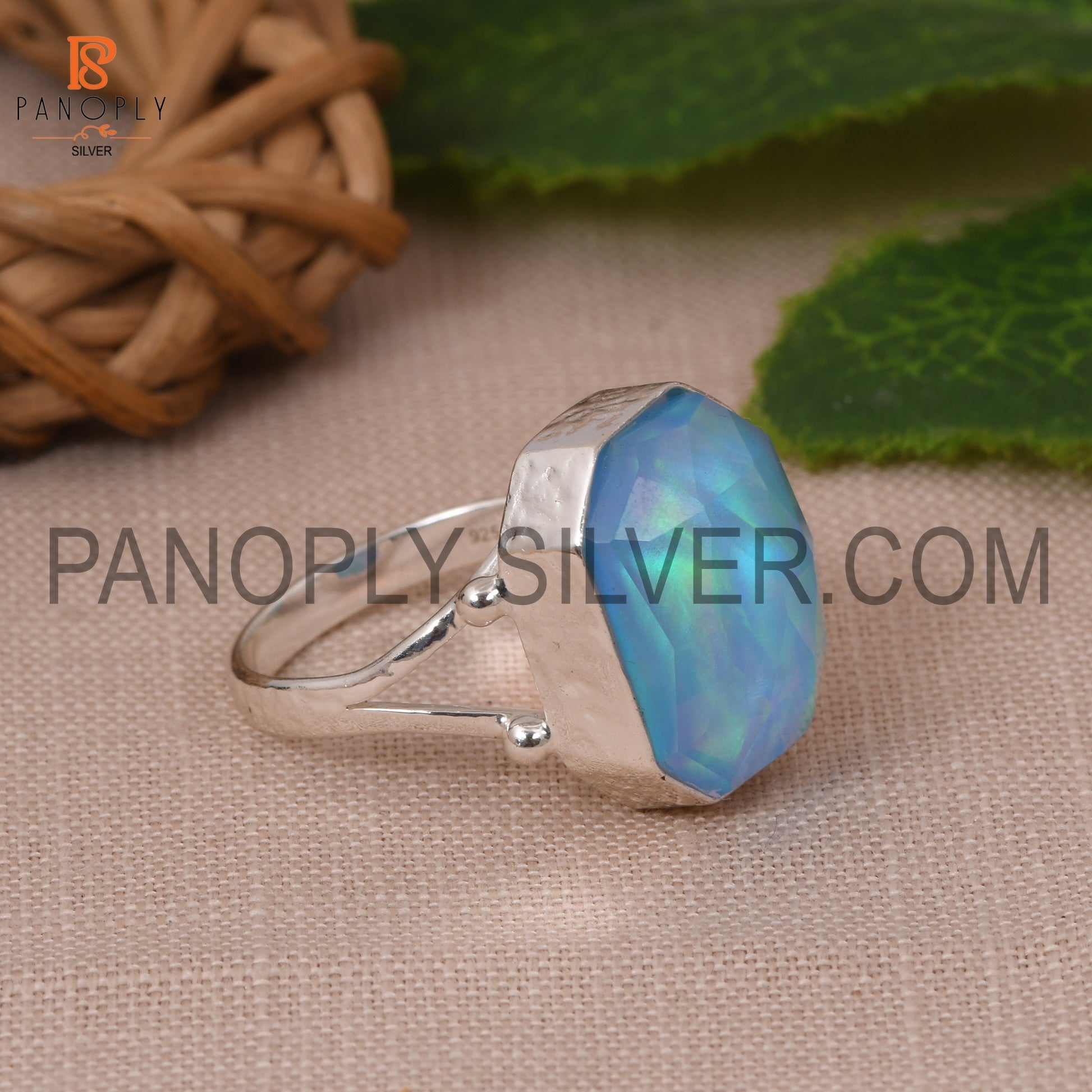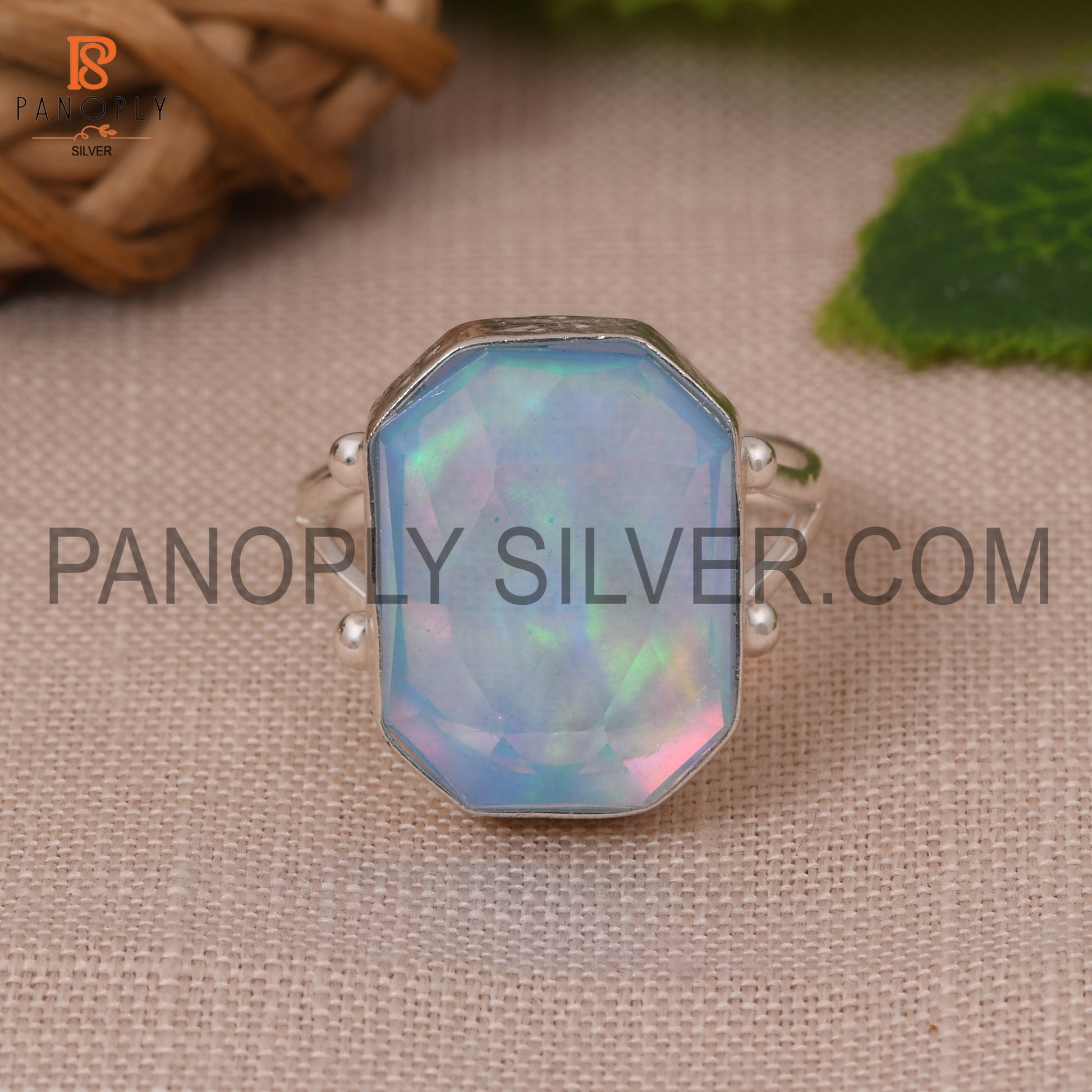 Octagon Shape Split Band Opal Sky Doublet Silver Ring
