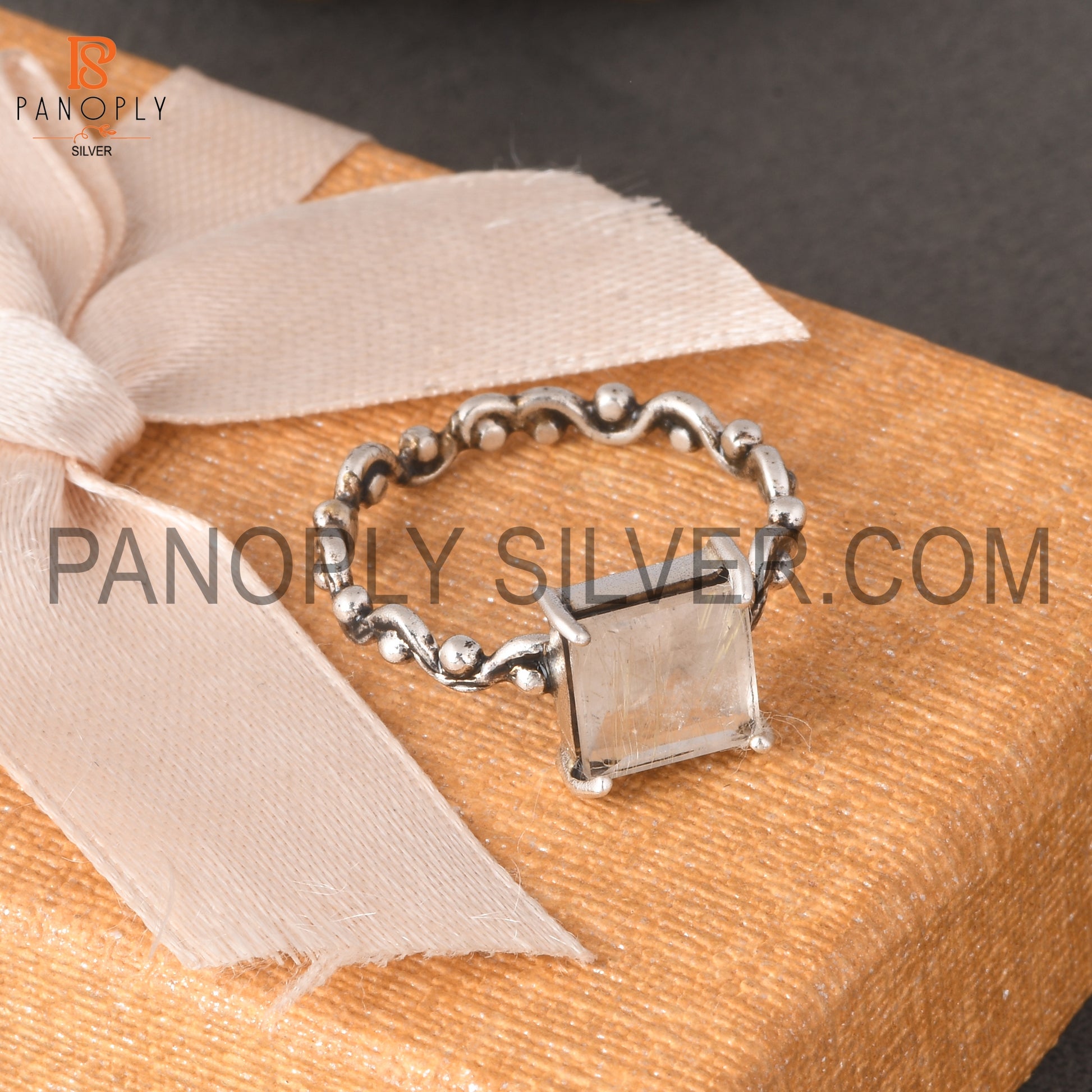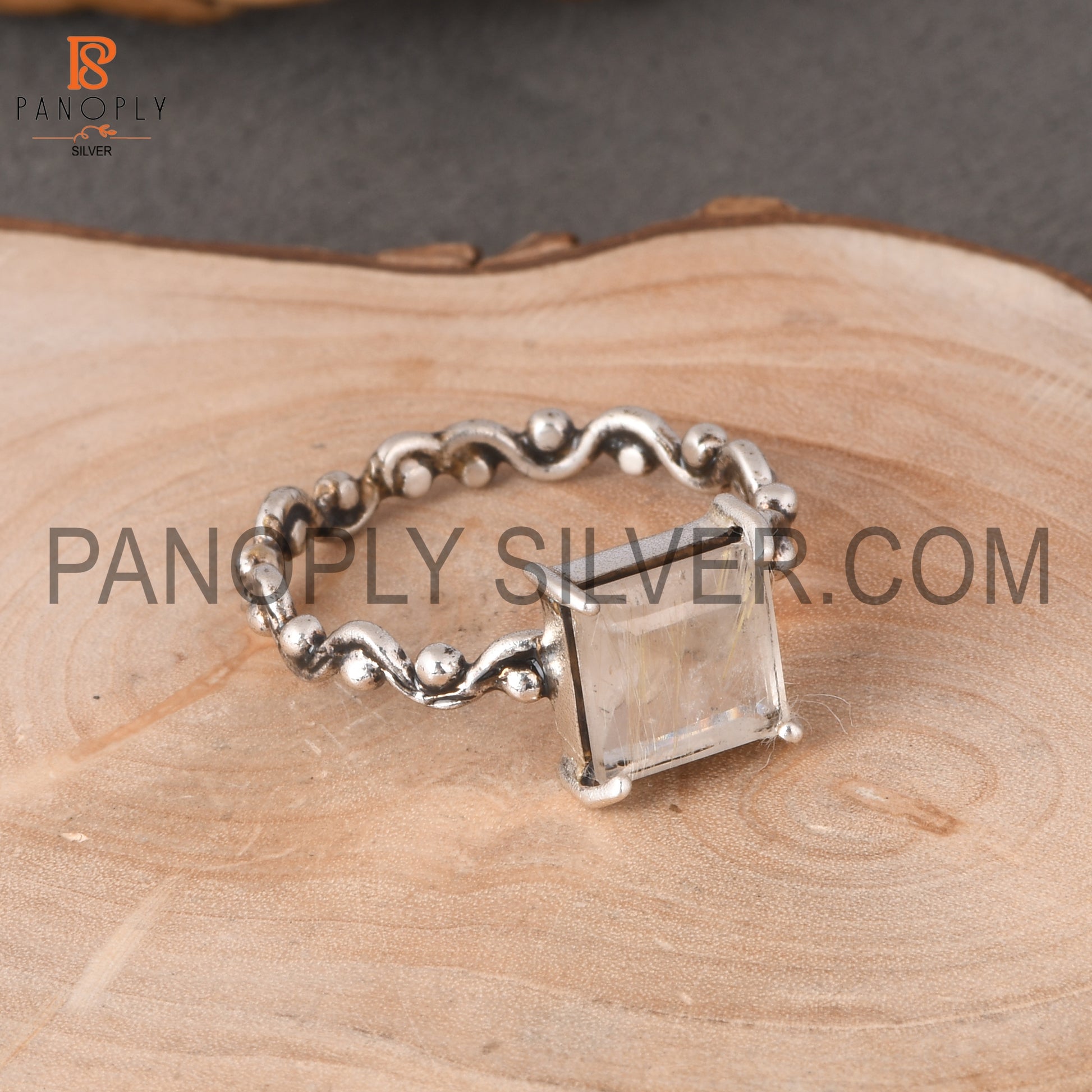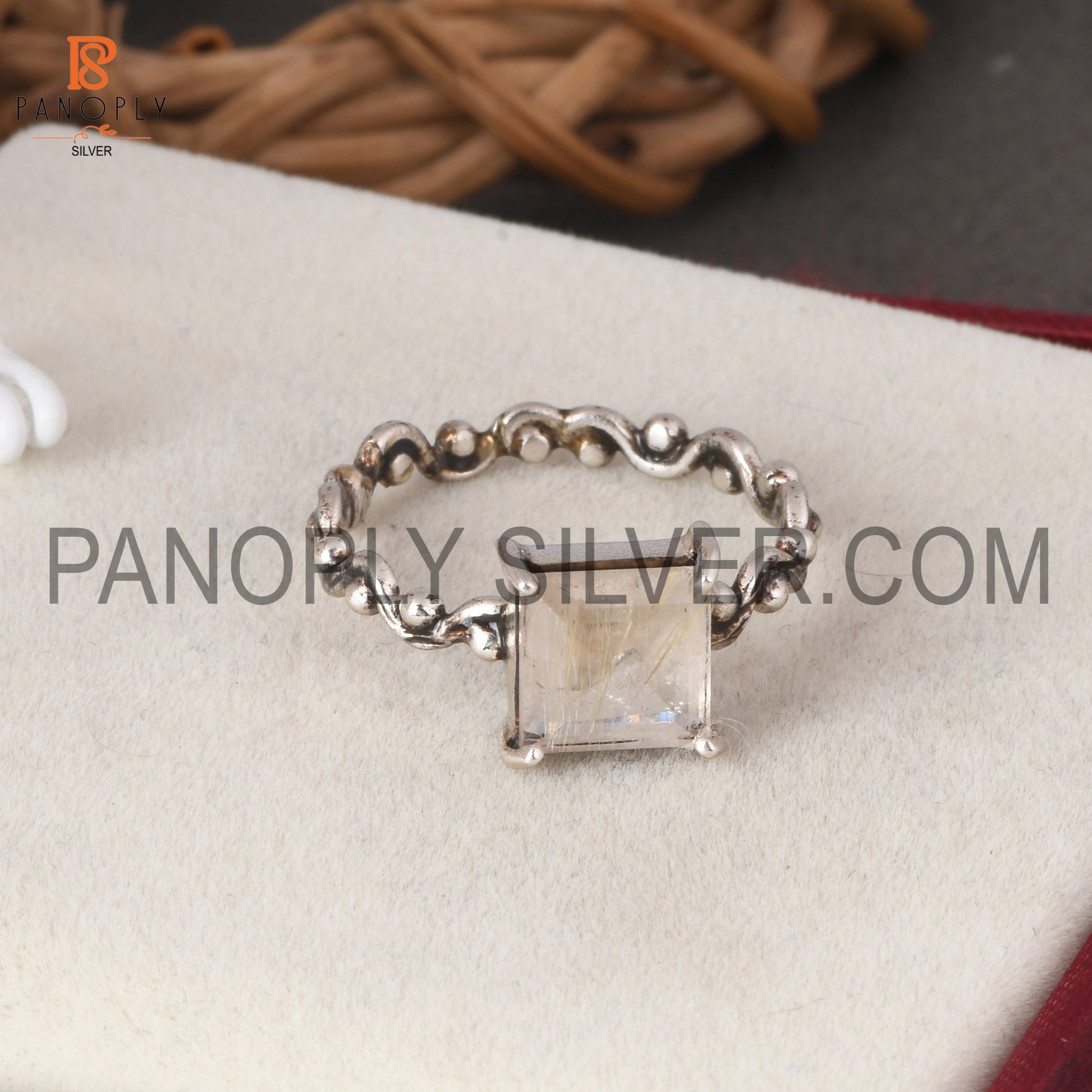 Golden Rutile Cut Square Beautiful Silver Oxidized Ring