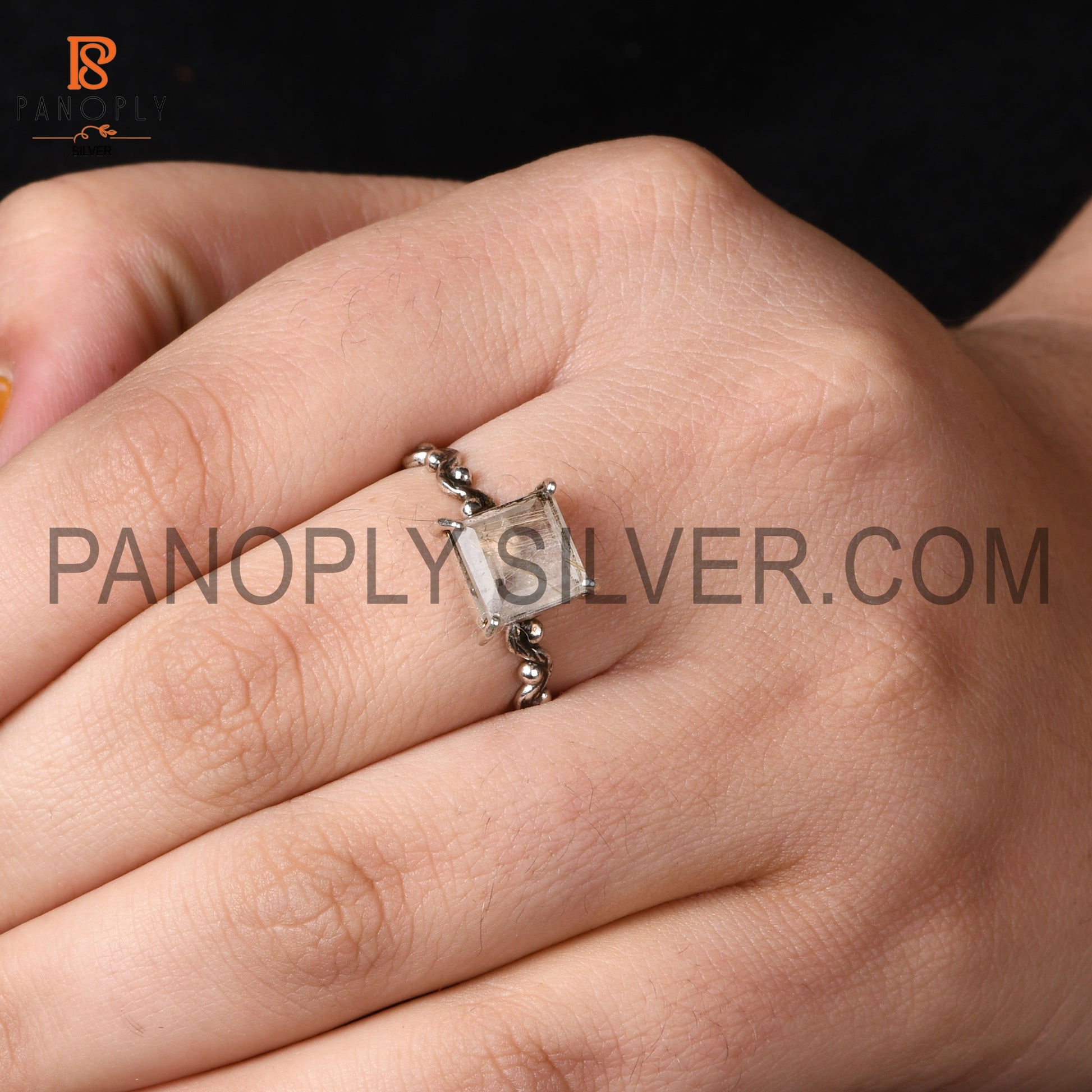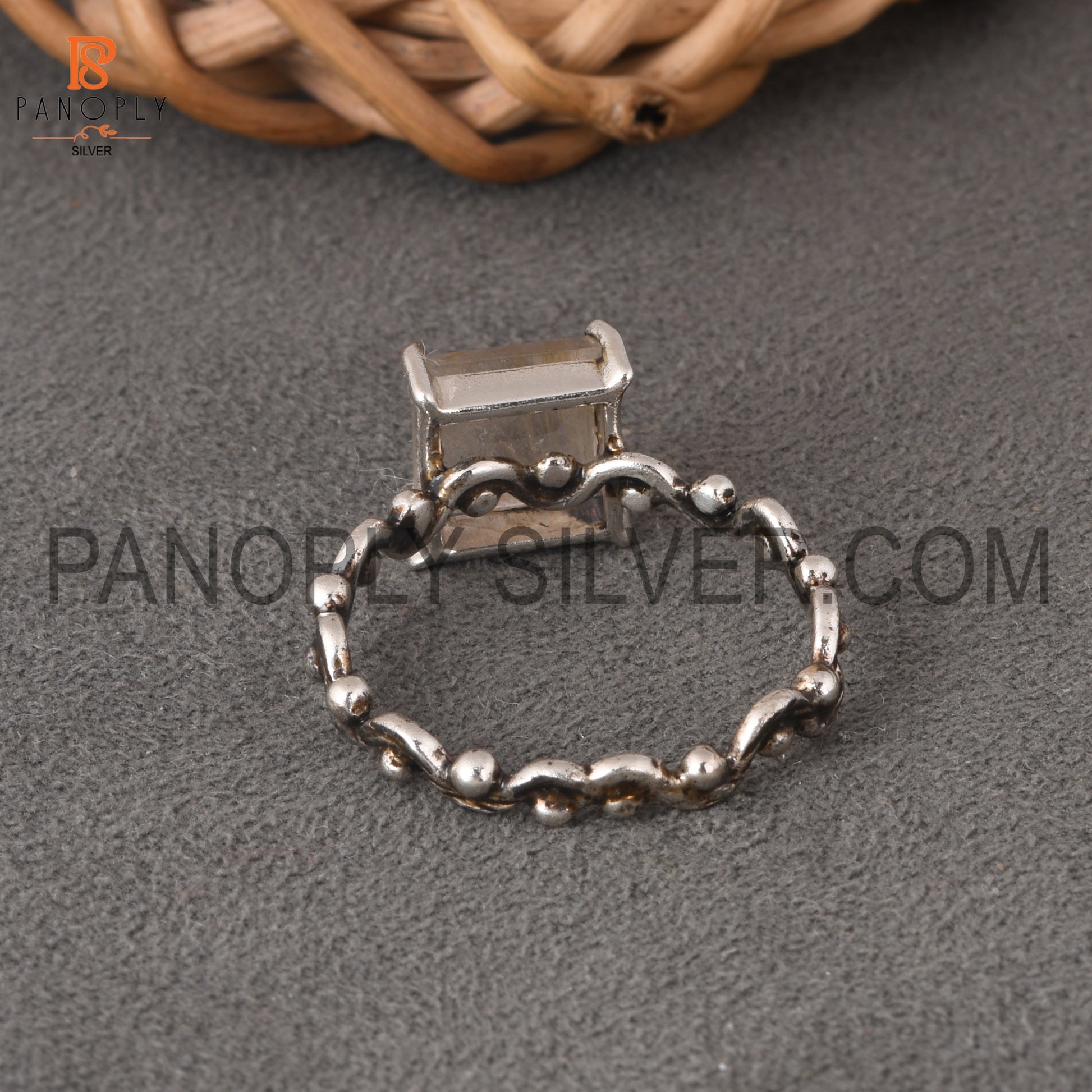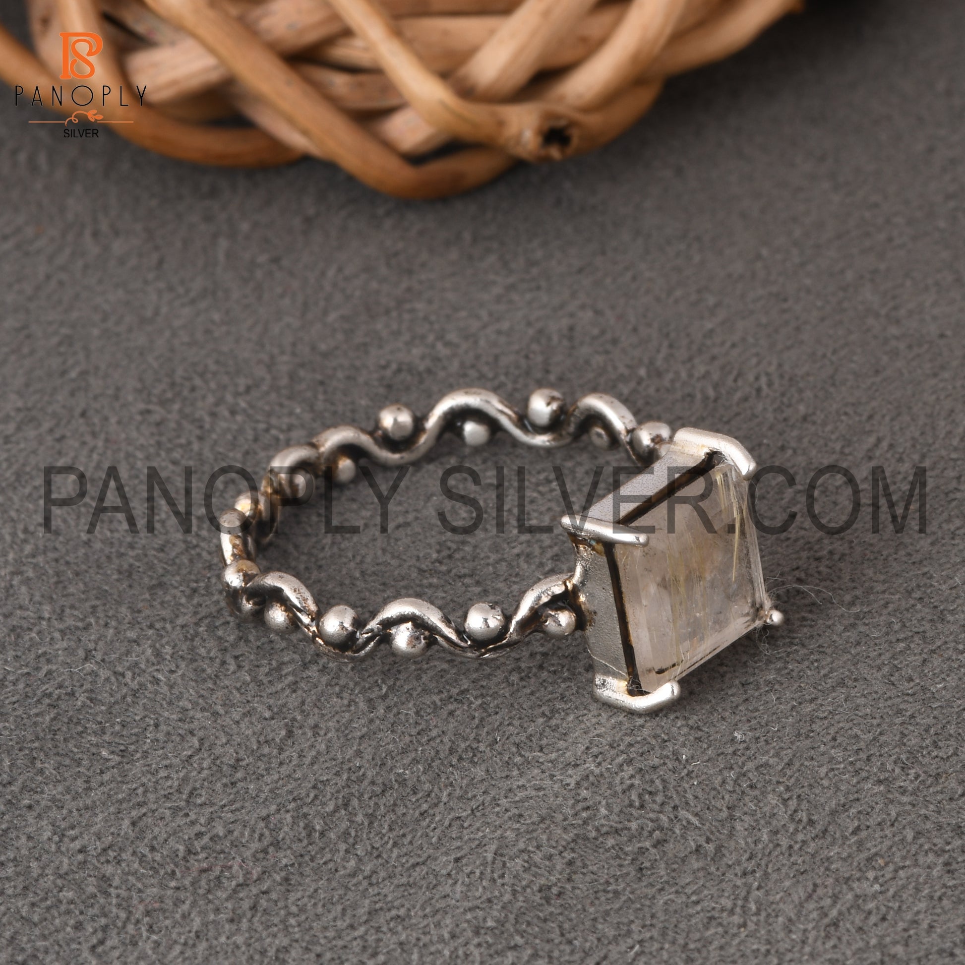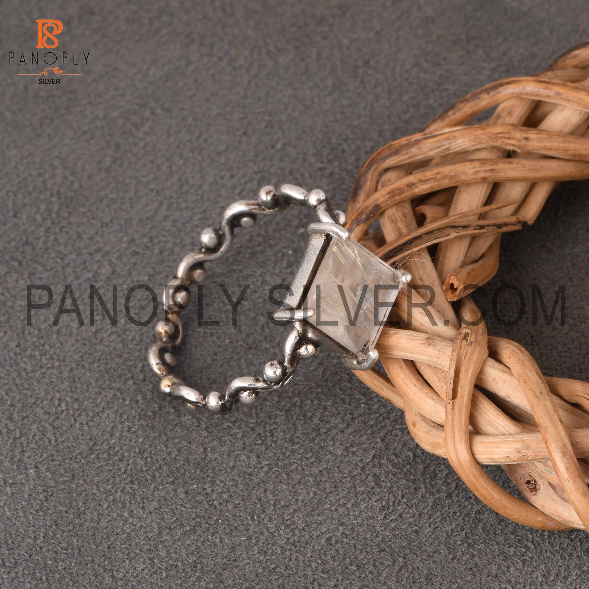 Golden Rutile Cut Square Beautiful Silver Oxidized Ring
