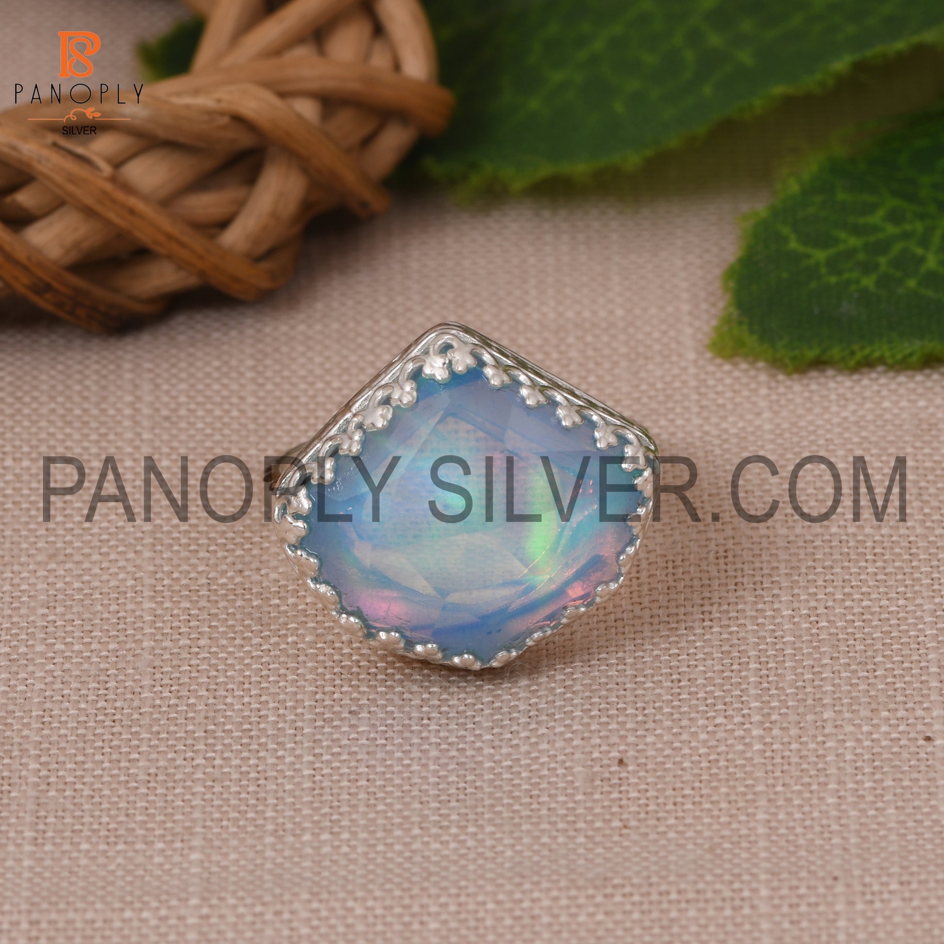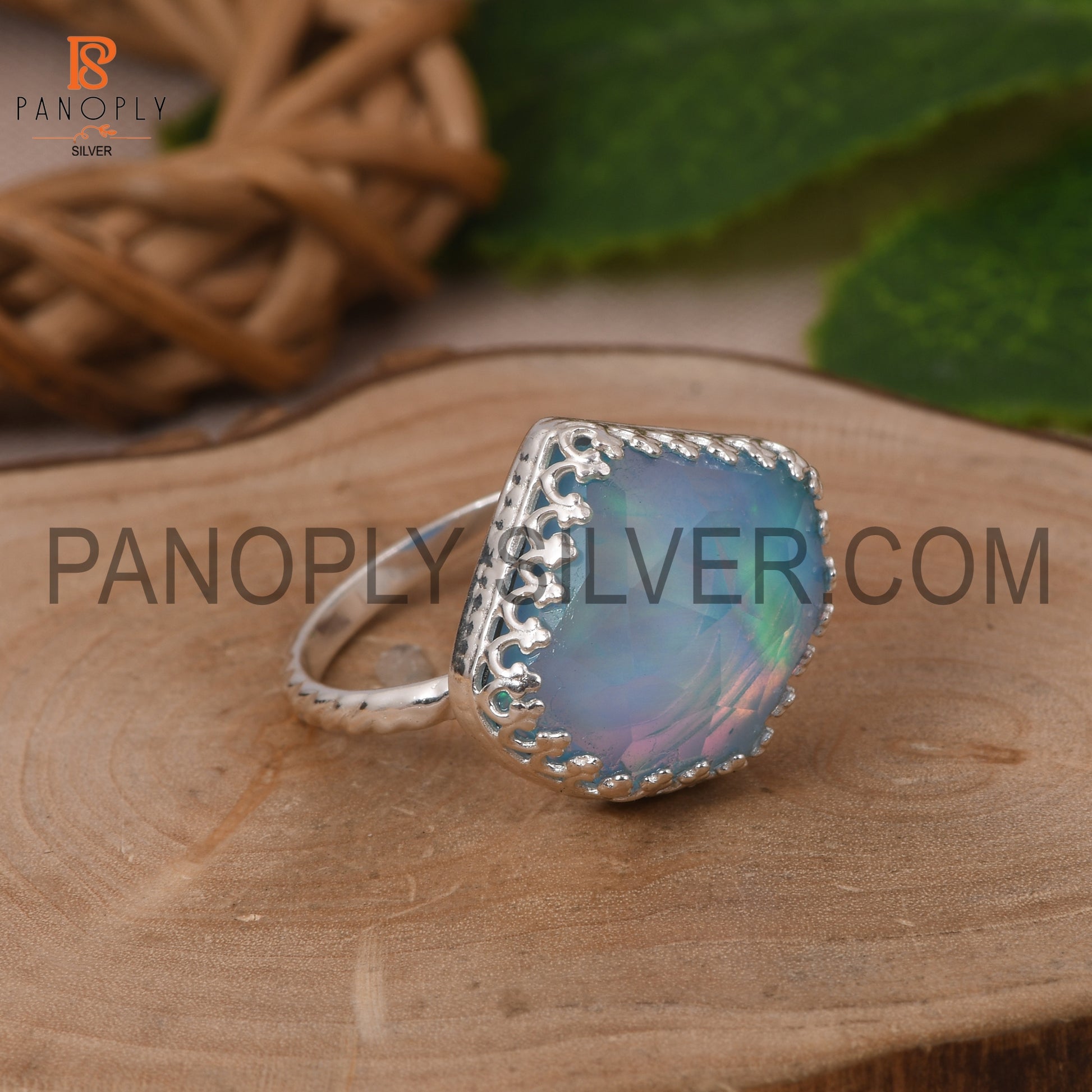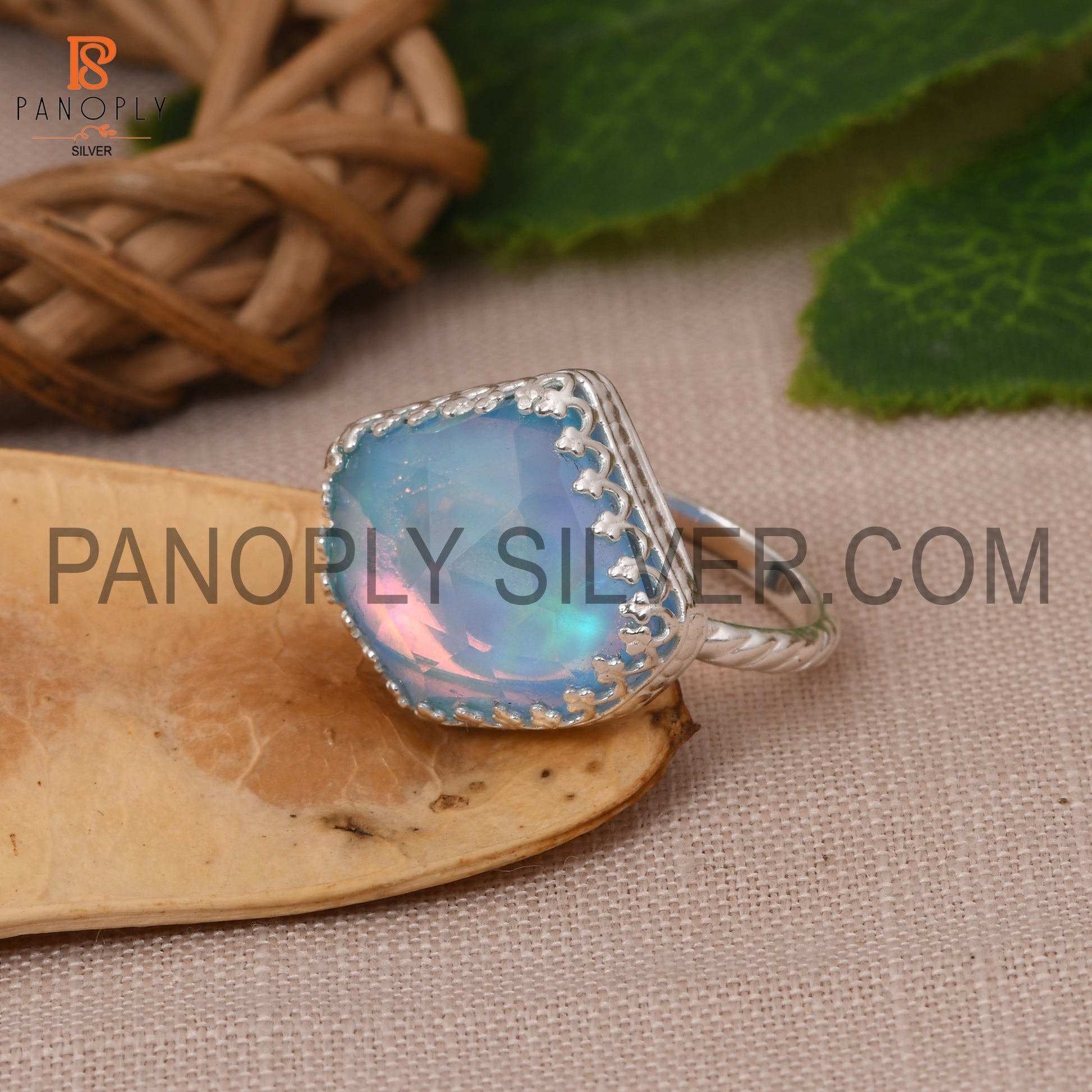 Rope Band Aurora Opal Sky Gemstone 925 Silver Ring