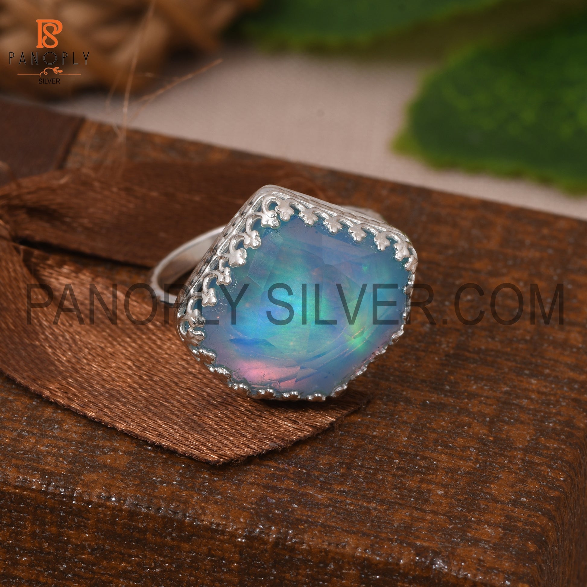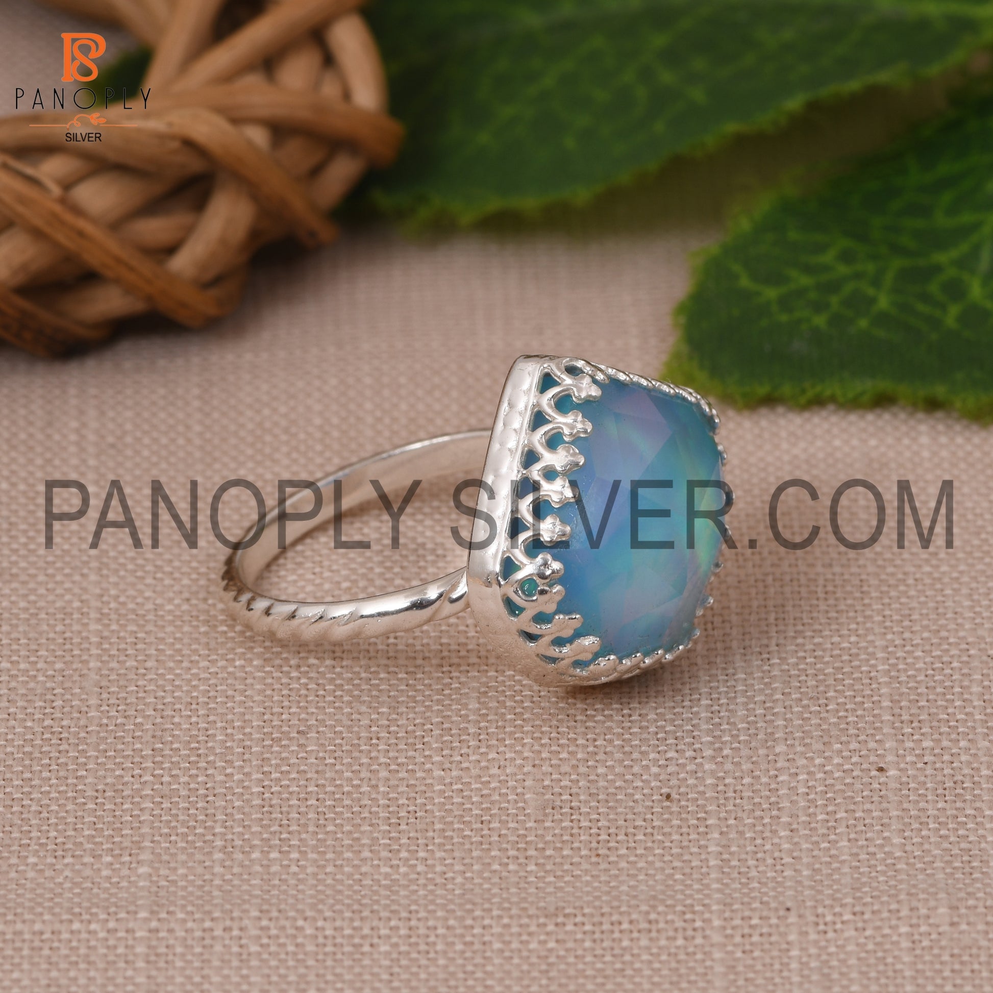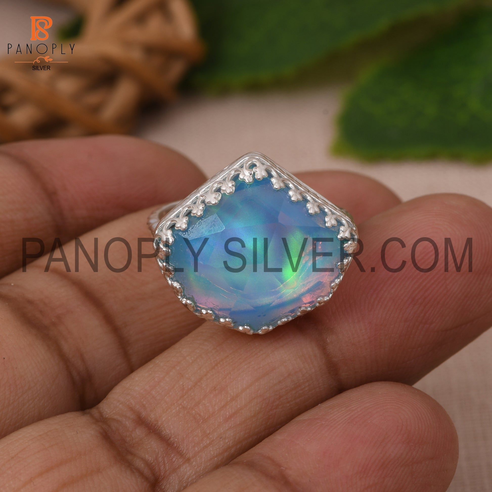 Rope Band Aurora Opal Sky Gemstone 925 Silver Ring