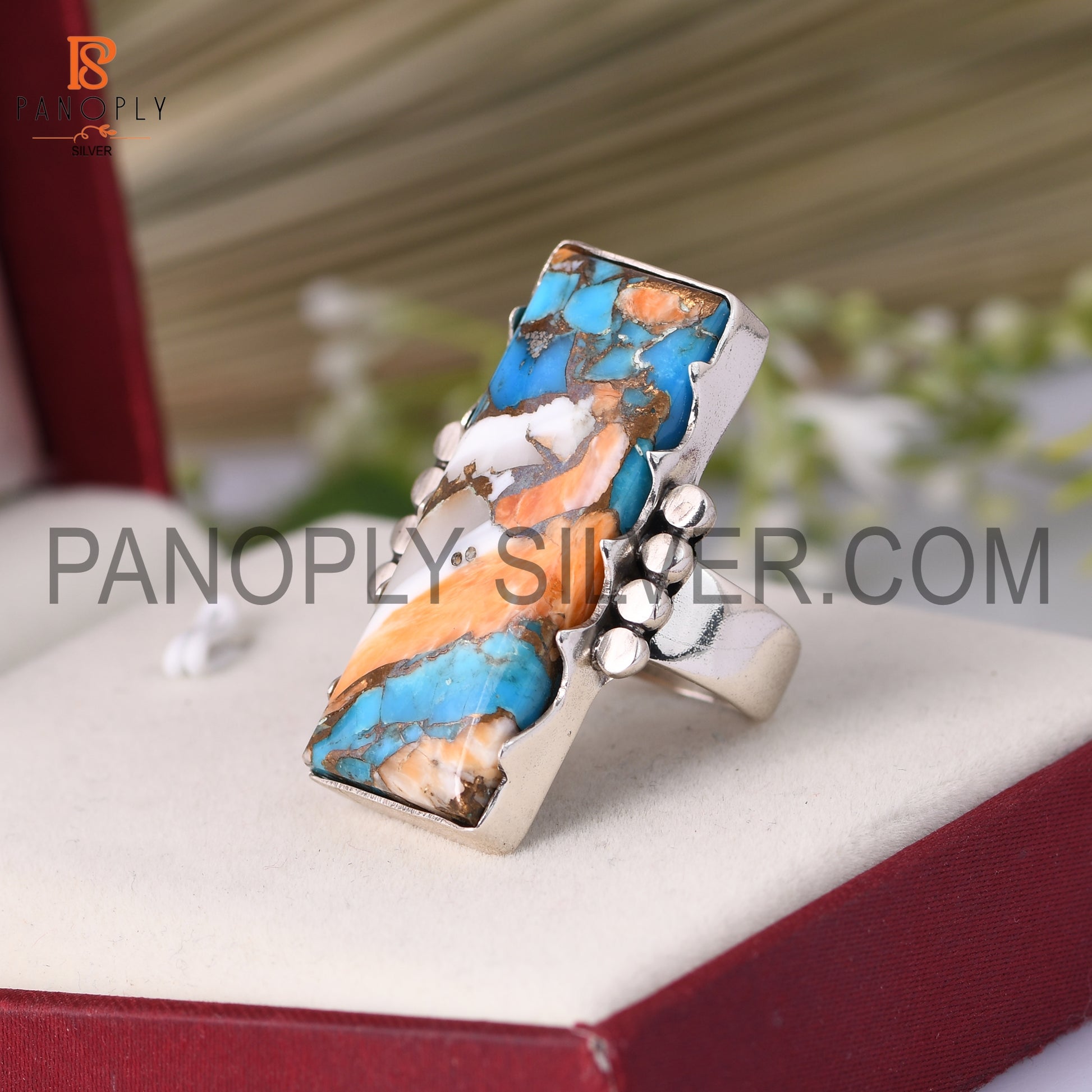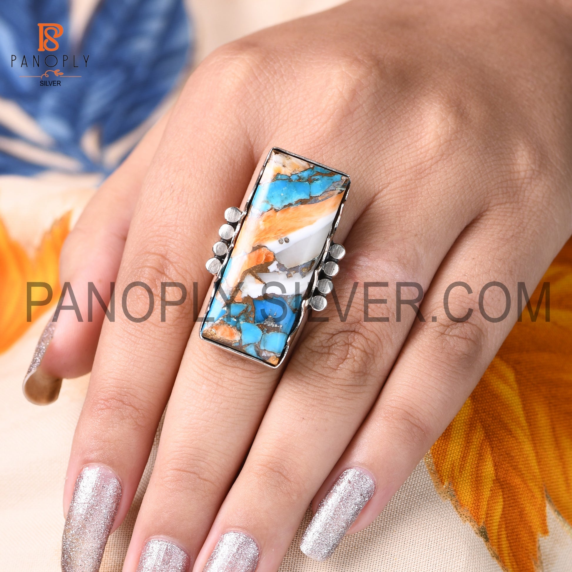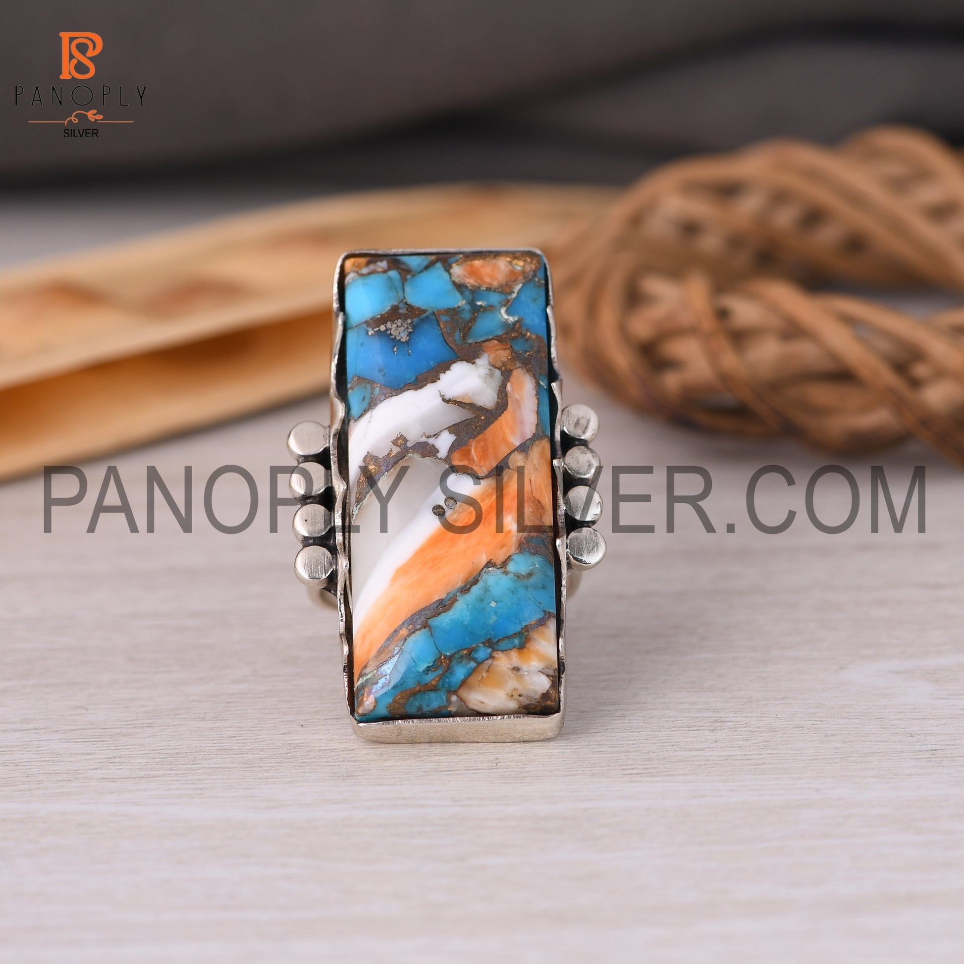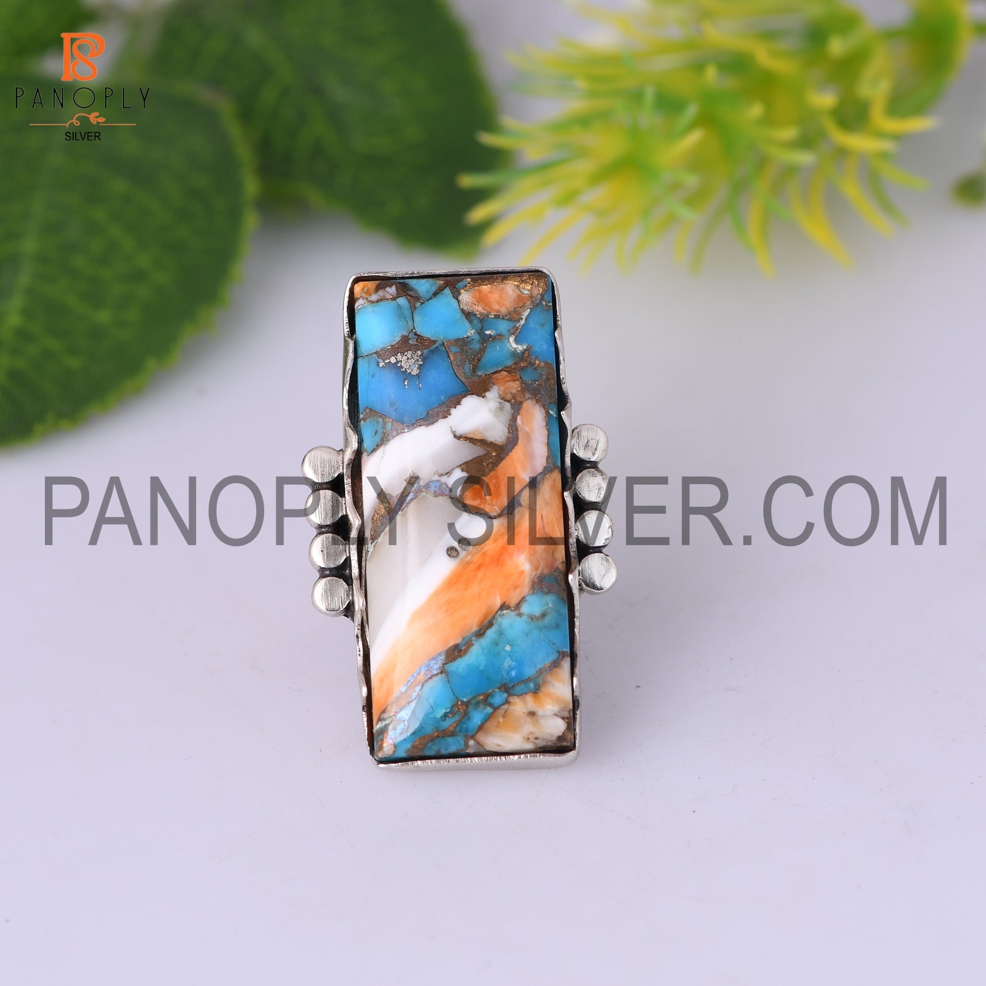 Mojave Spinner Oyster Turquoise Baguette Shape Larger Stone Rings