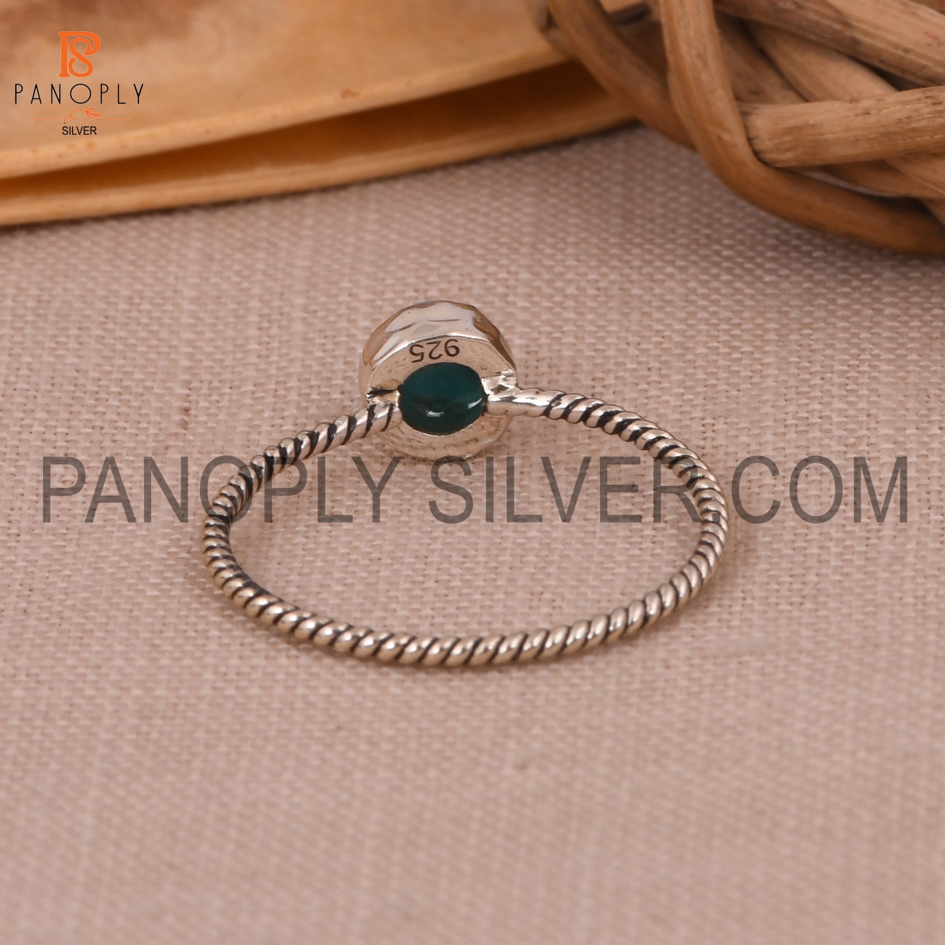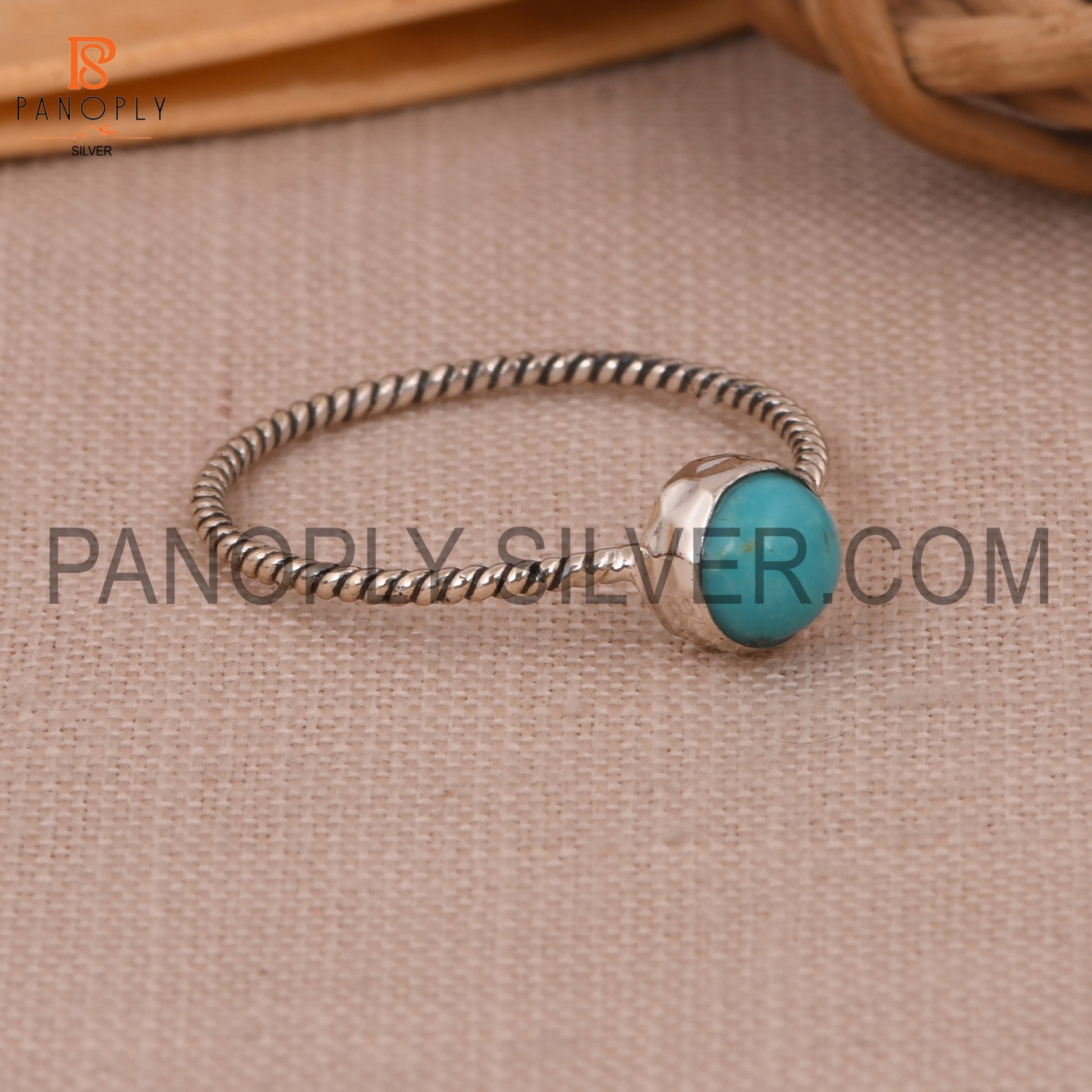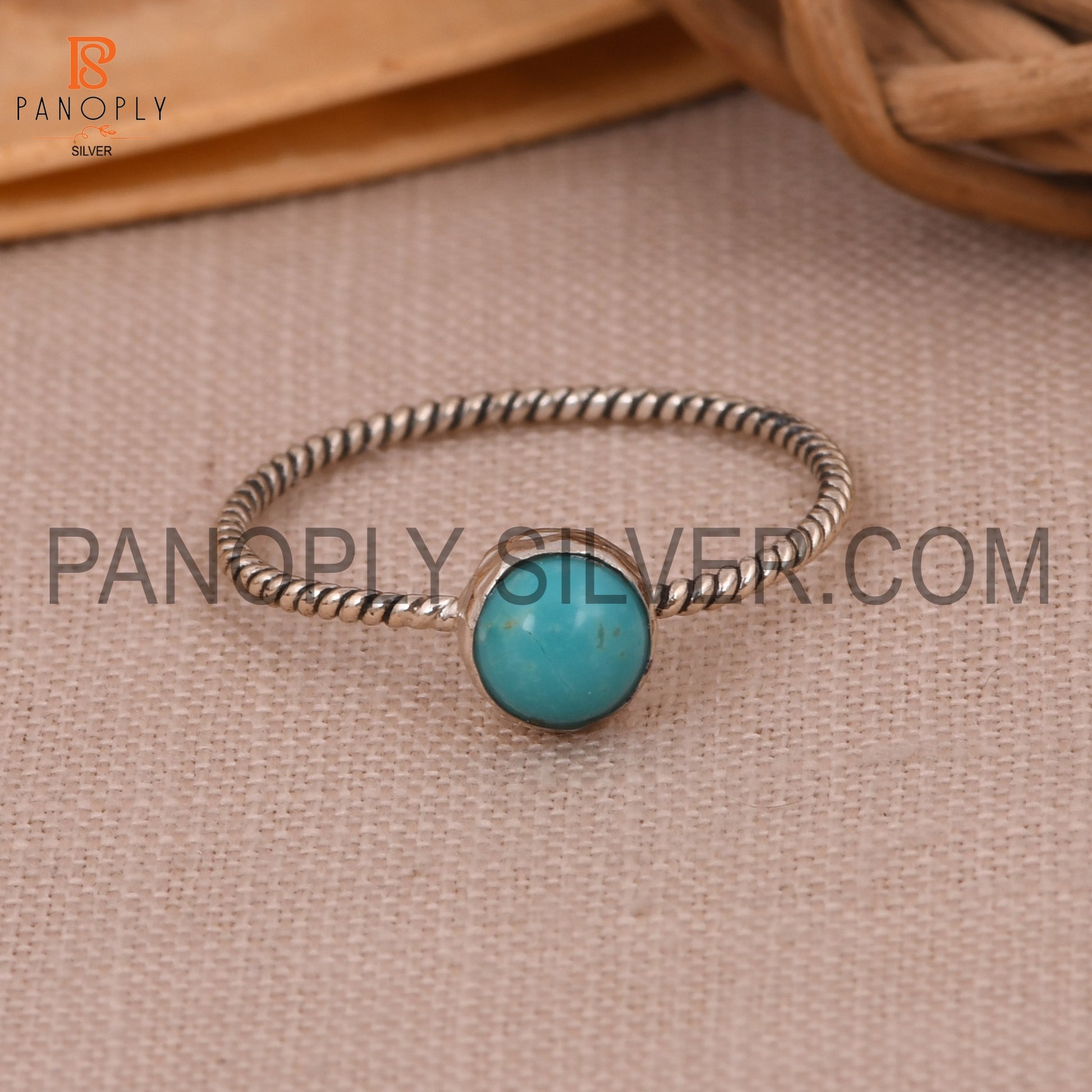 Round Kingman Turquoise Oxidized Silver Twist Band Ring