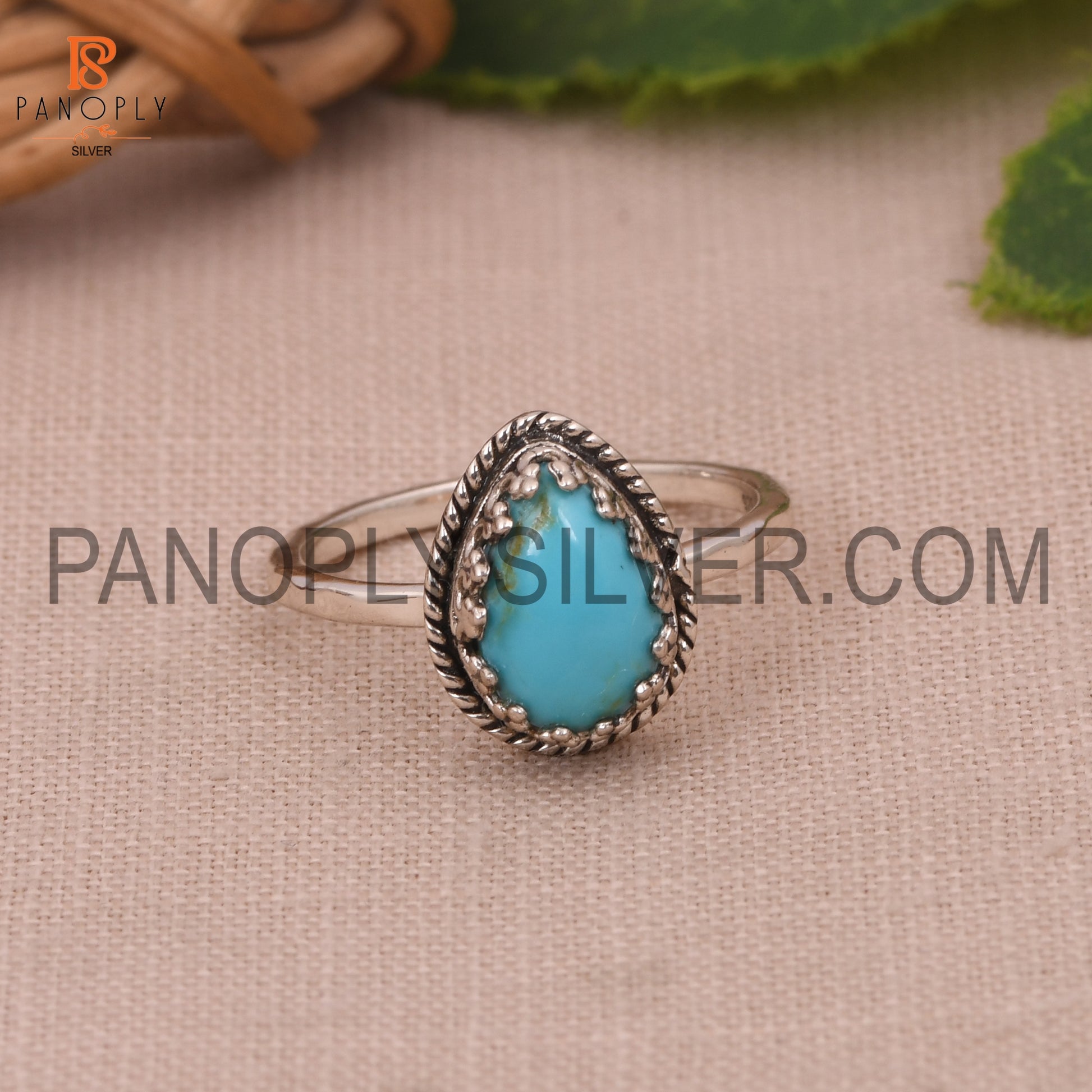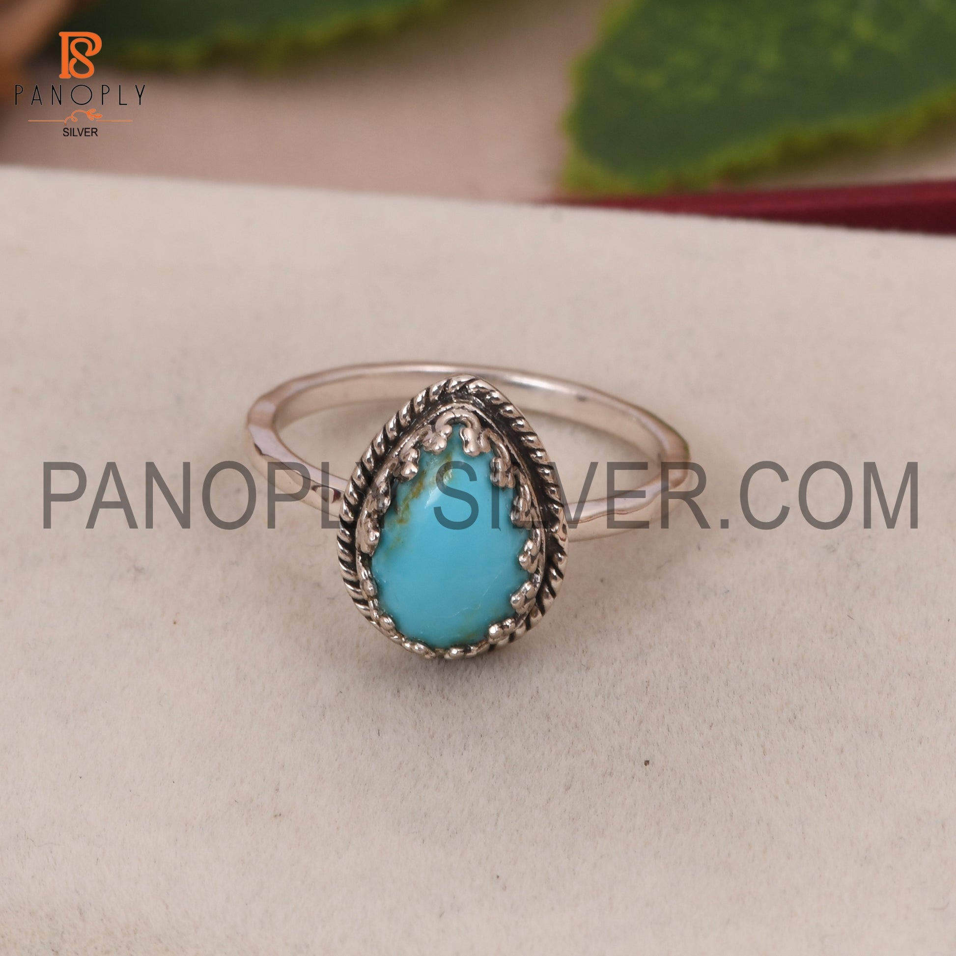 Pear Cut Natural Turquoise Gem Prong Set Rings
