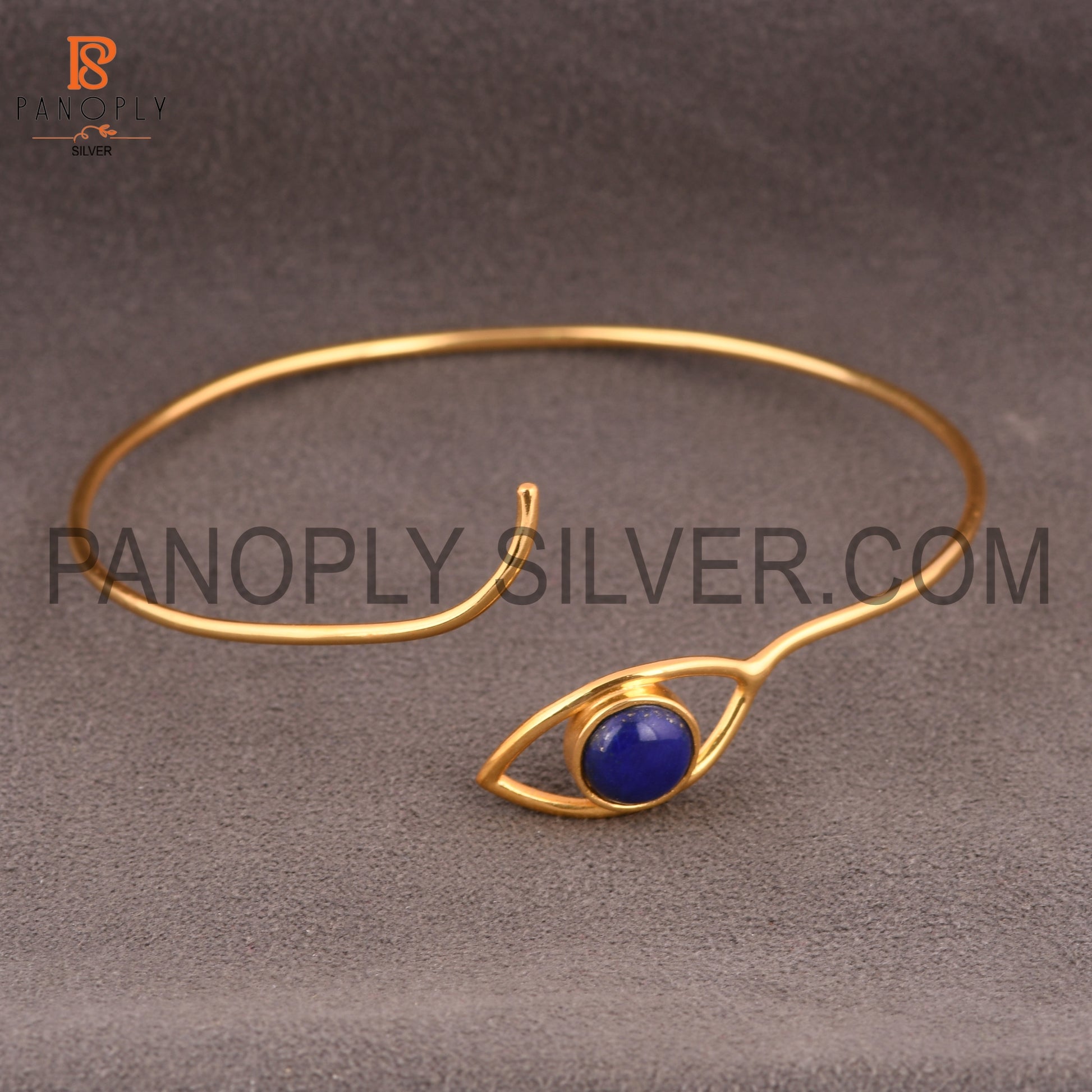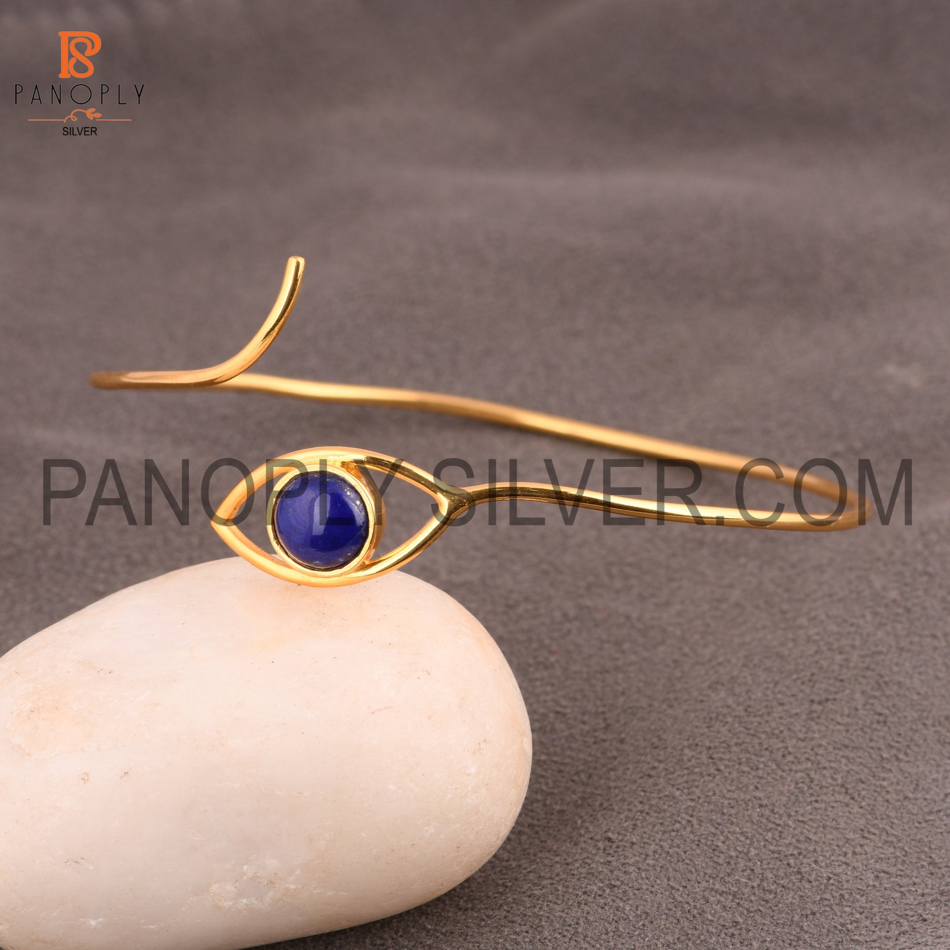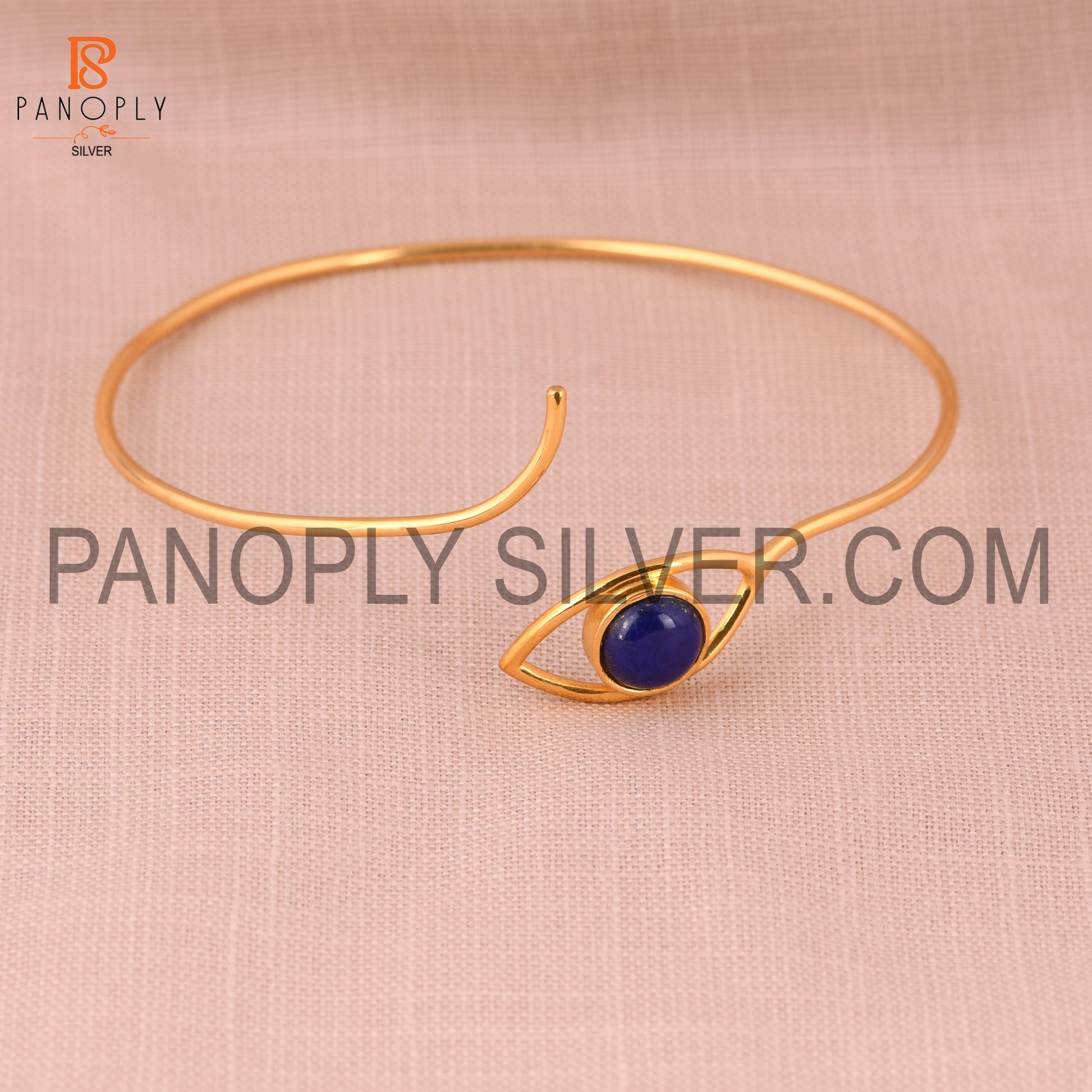 18K Gold Plated 925 Silver Lapis Gemstone Evil Eye Cuff Bangle