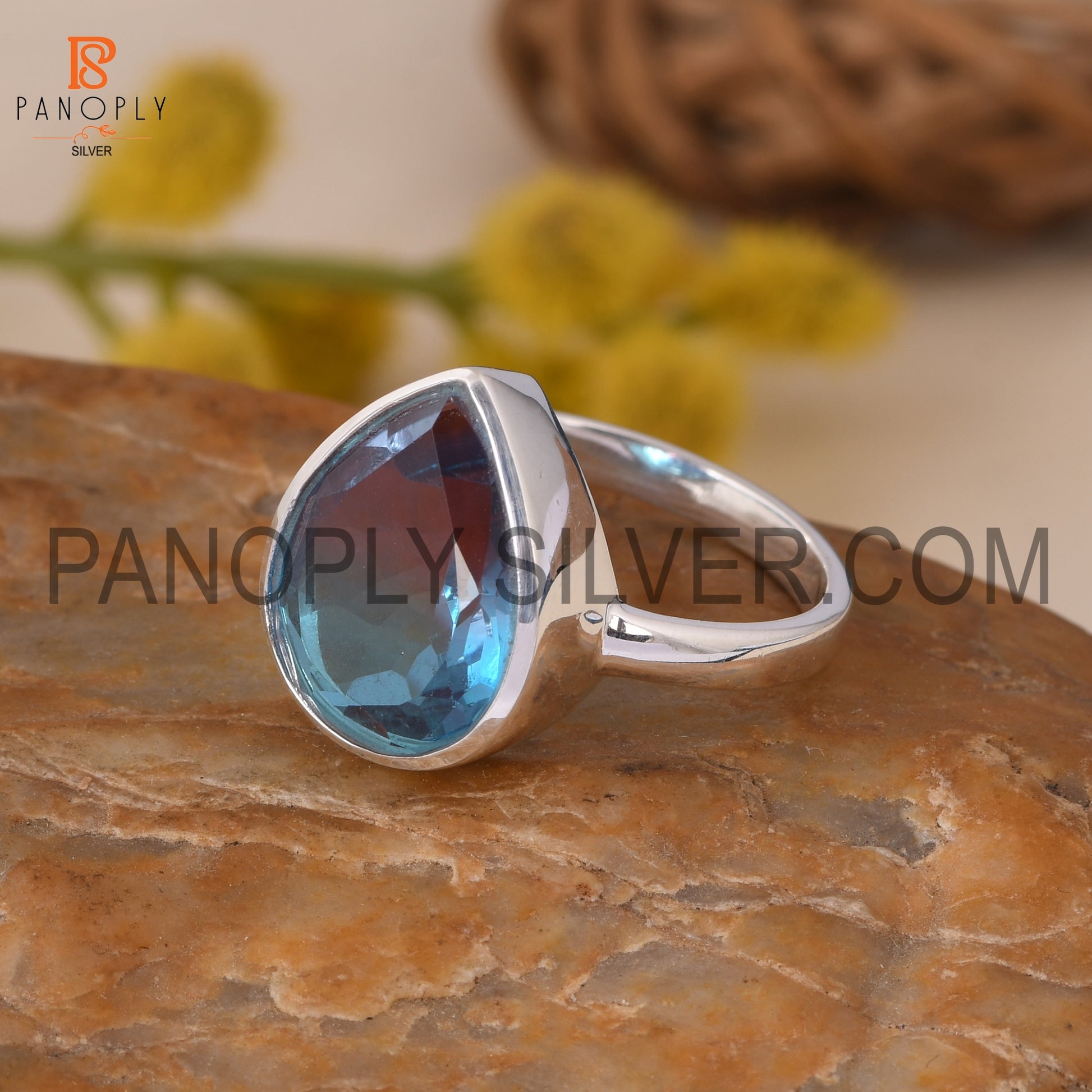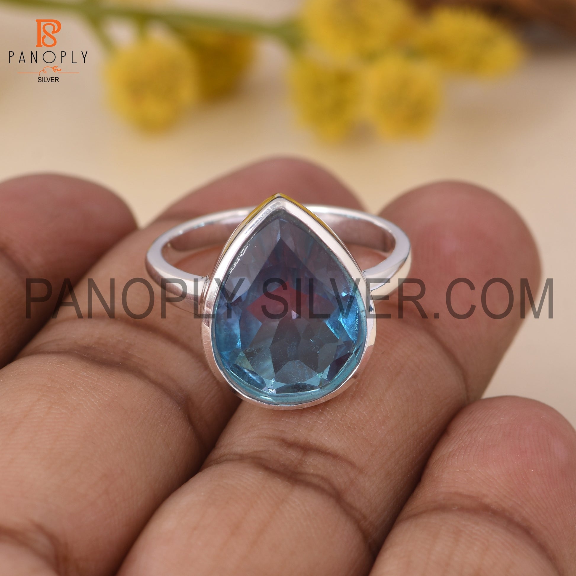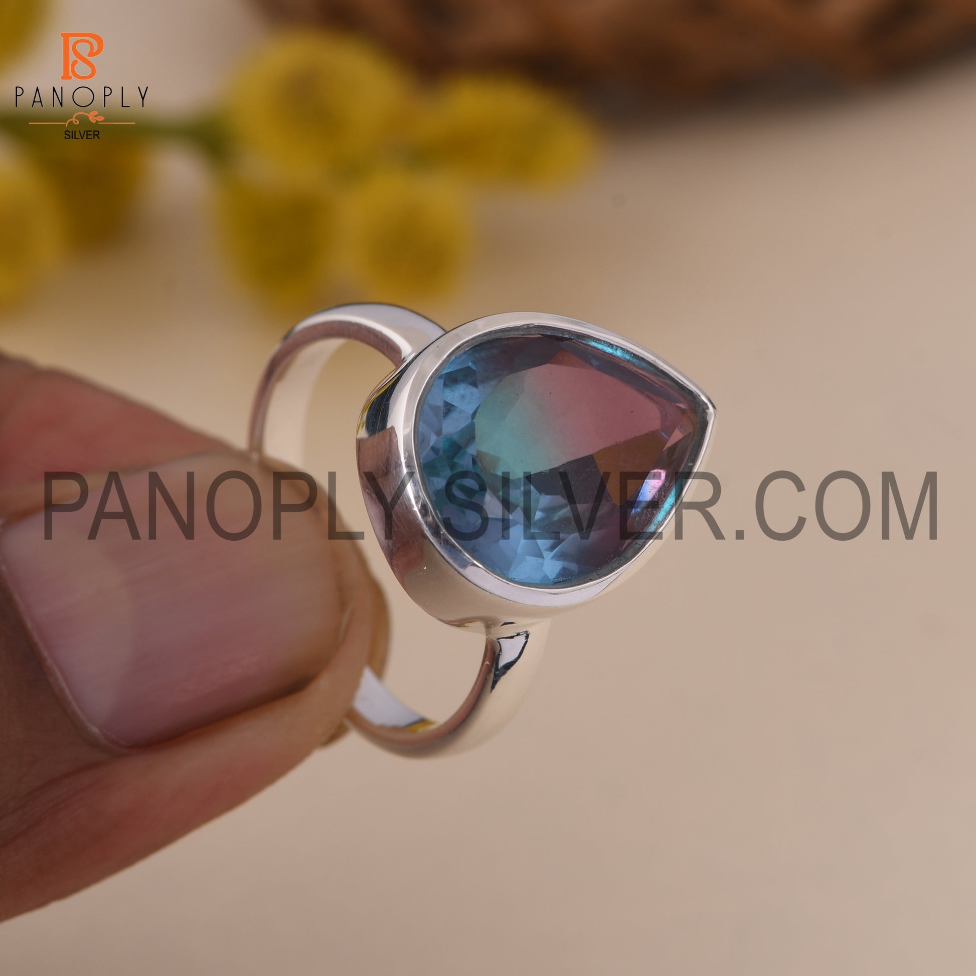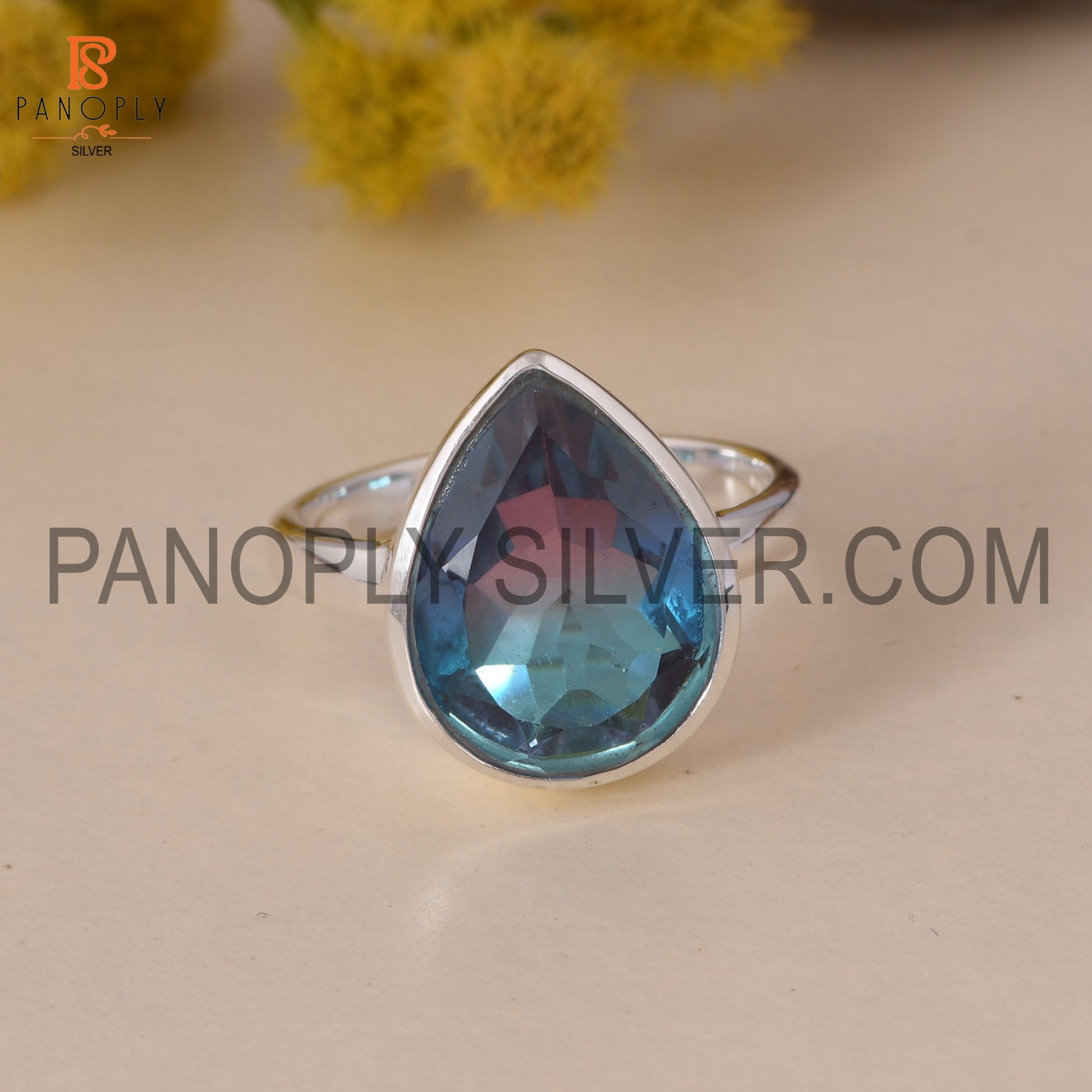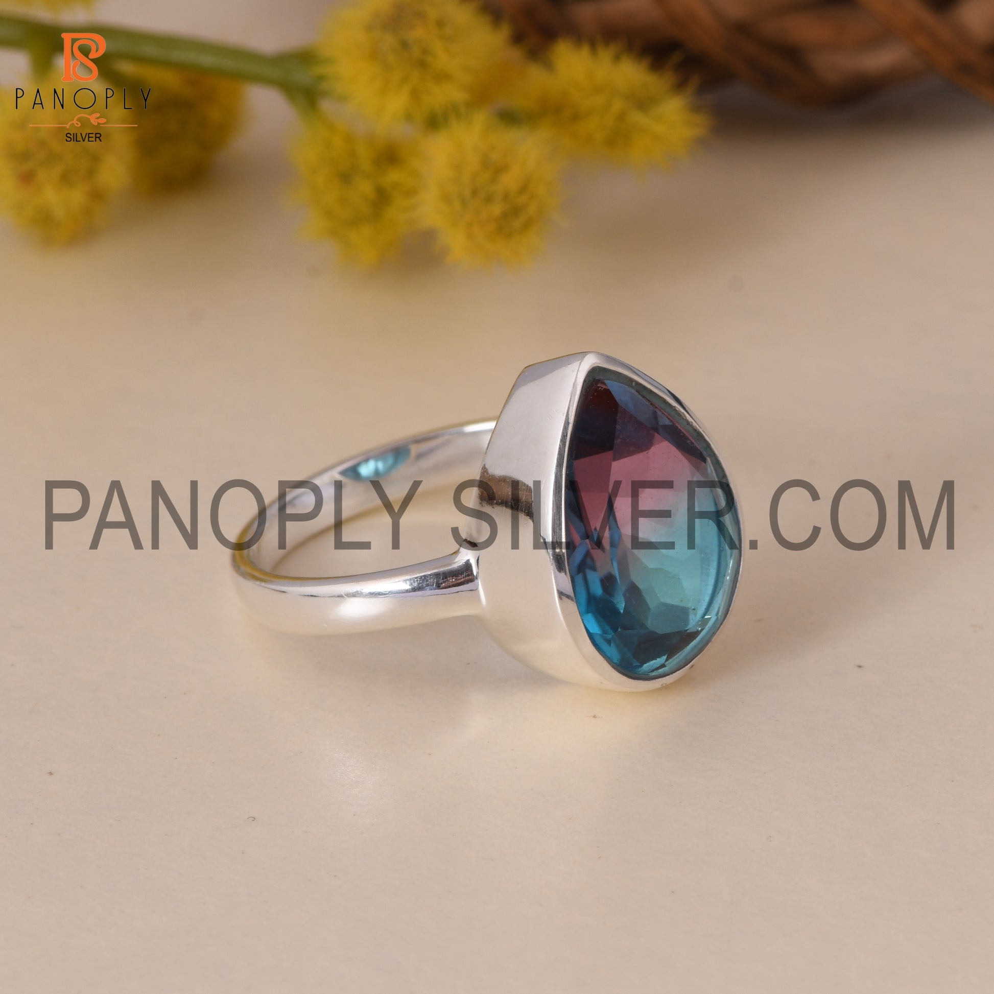 Alexandrite Doublet Quartz Bezel 925 Silver Rings