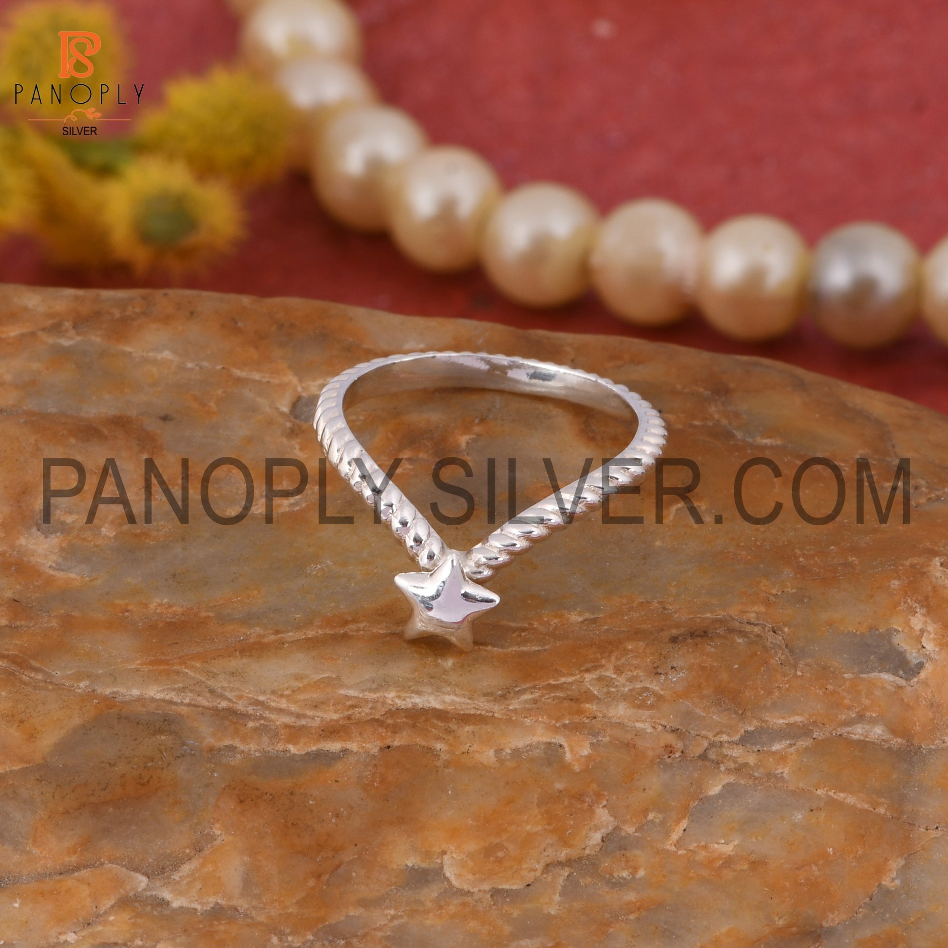 925 Stamp Rope Chevron Star Silver Rings