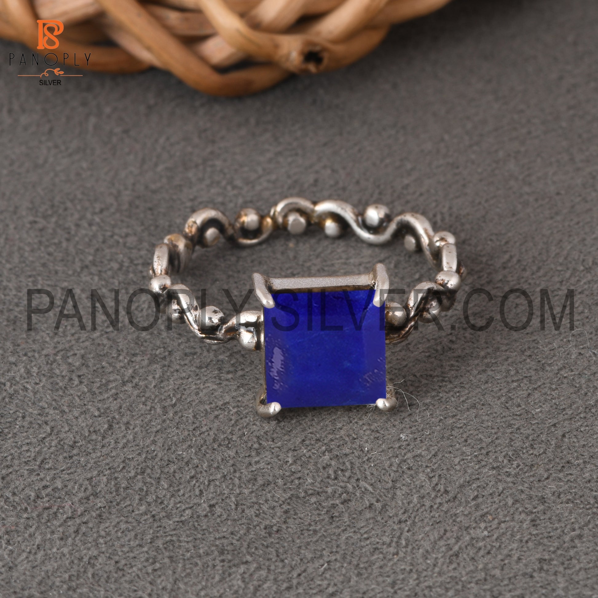 Dec. Birthstone Lapis 925 Quality Prong Set Filigree Band Rings