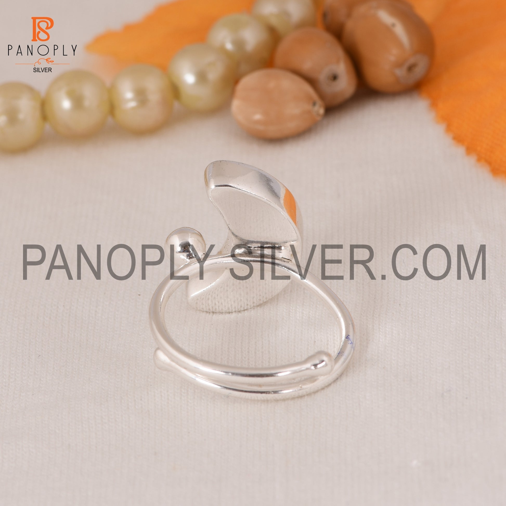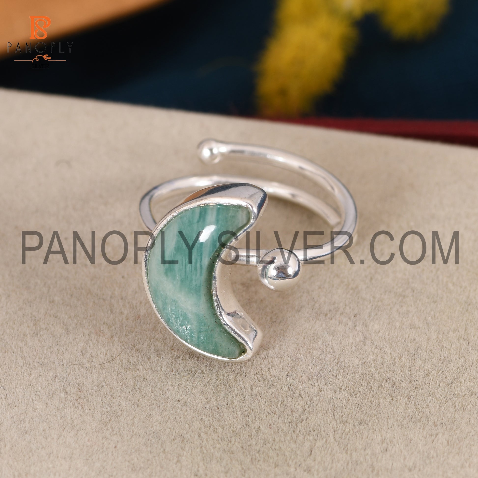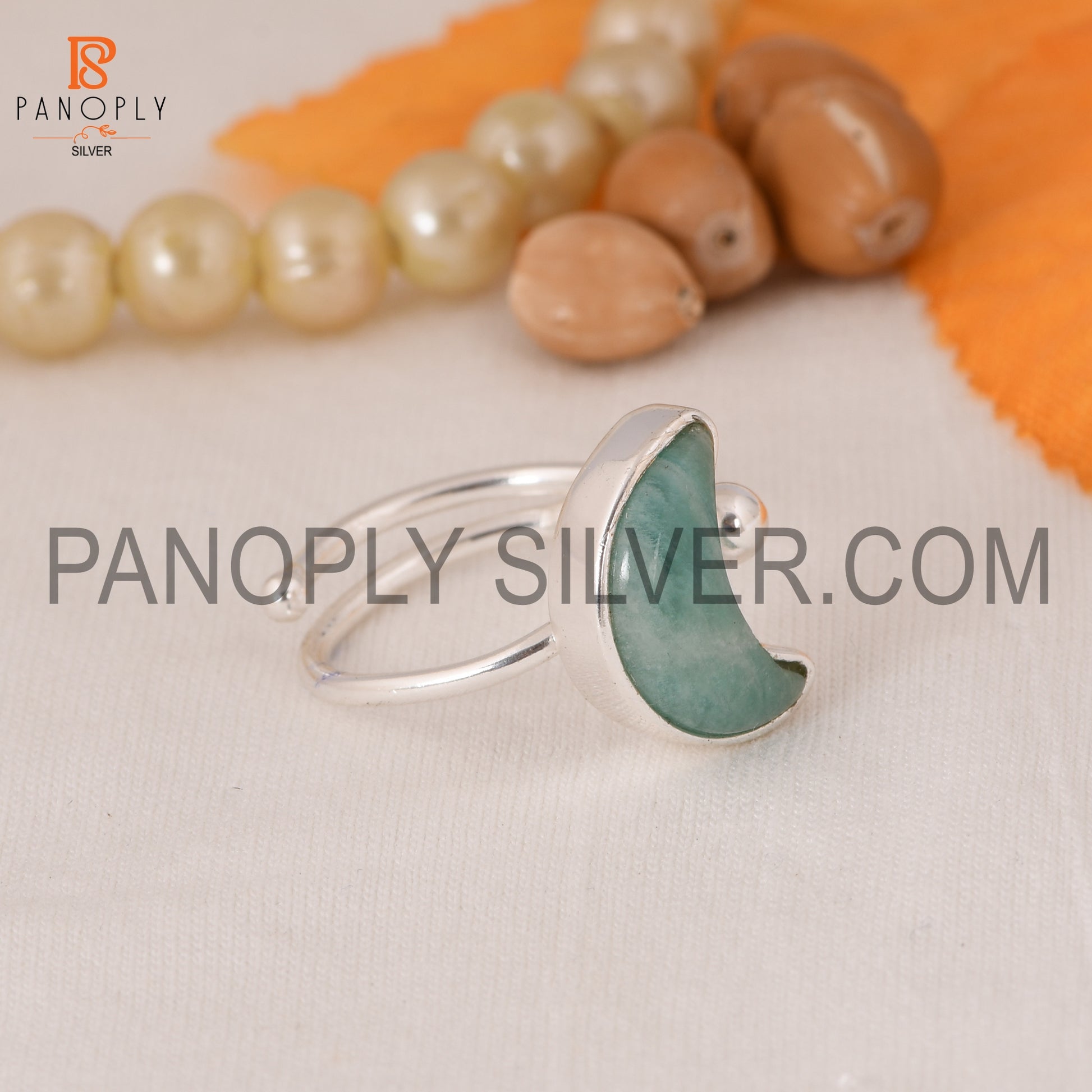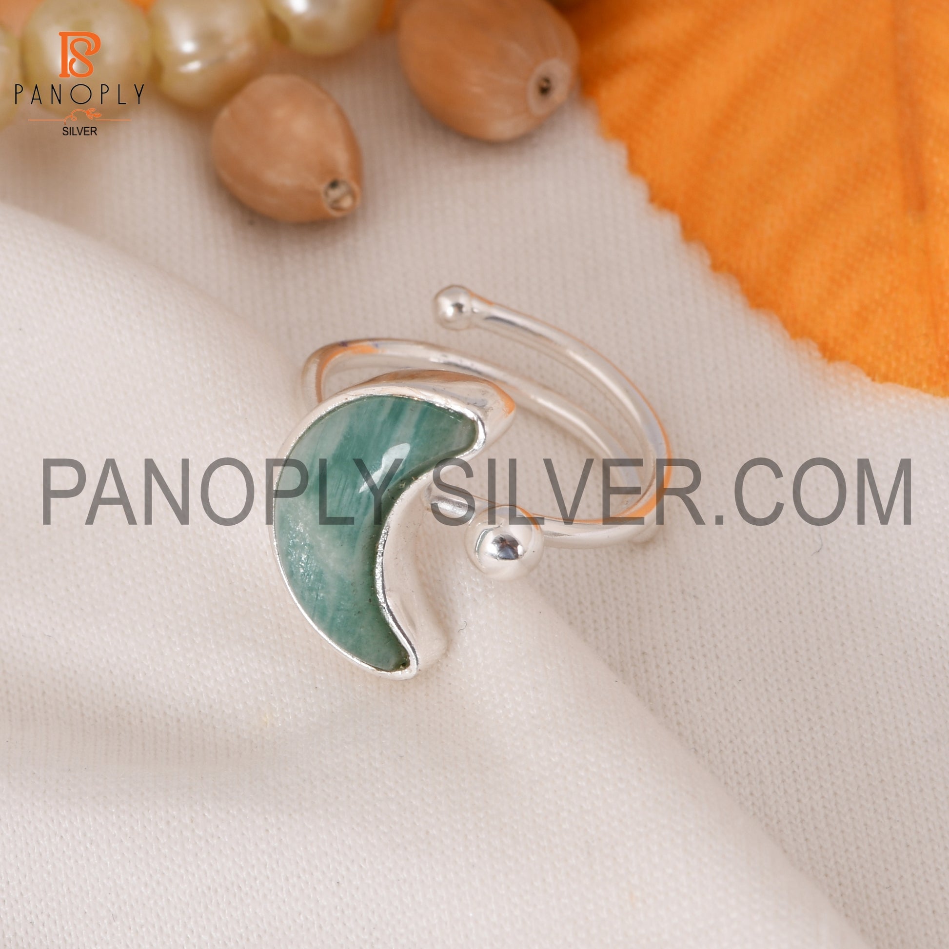 925 Silver Amazonite Moon Shape Adjustable Rings