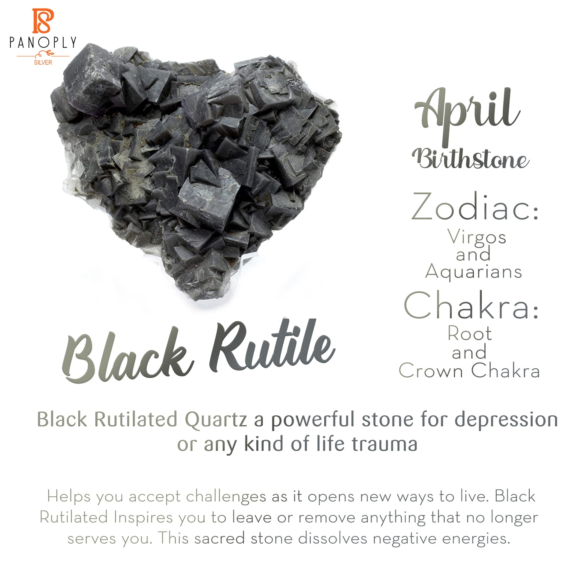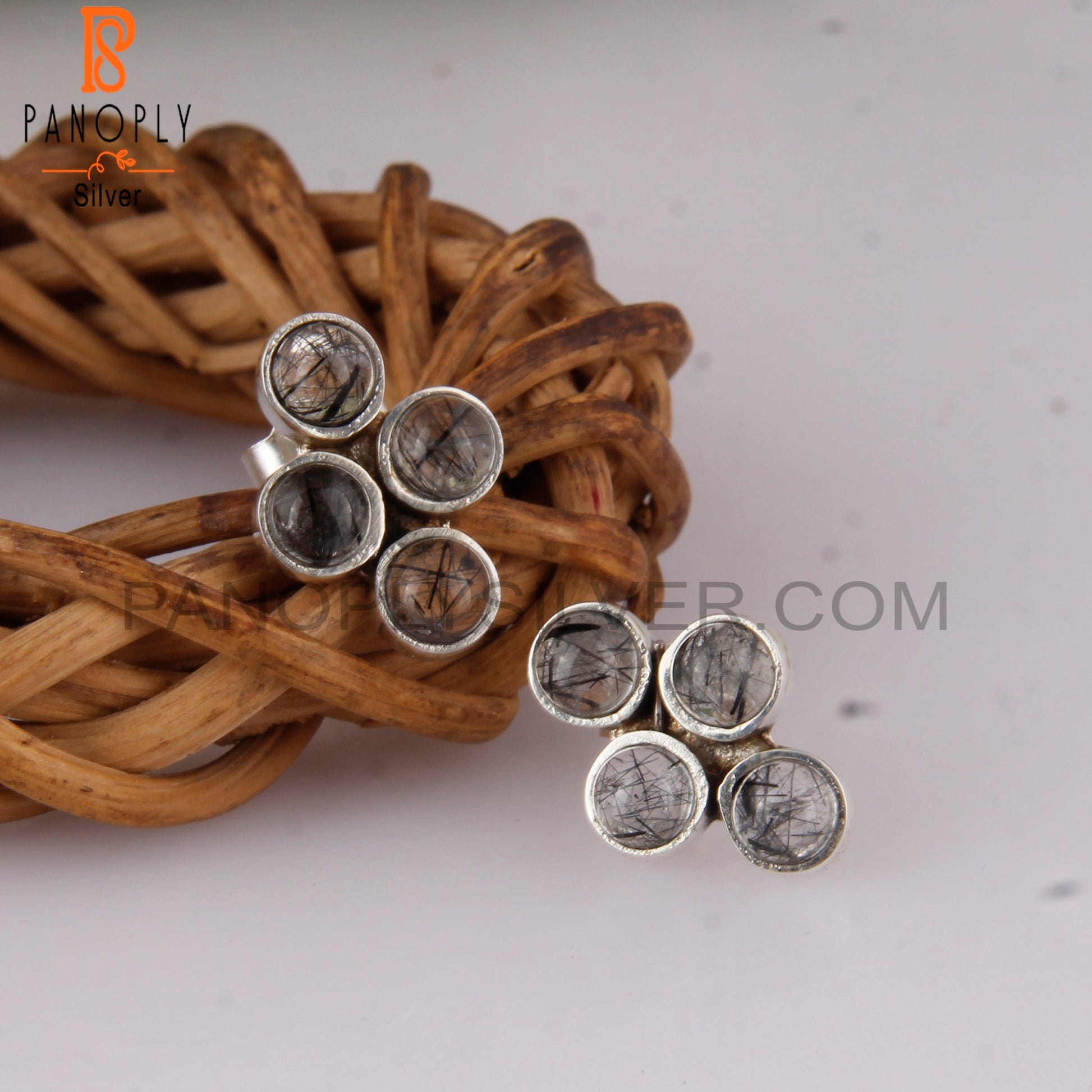 Black Rutile Round Shape 925 Sterling Silver Earrings Studs