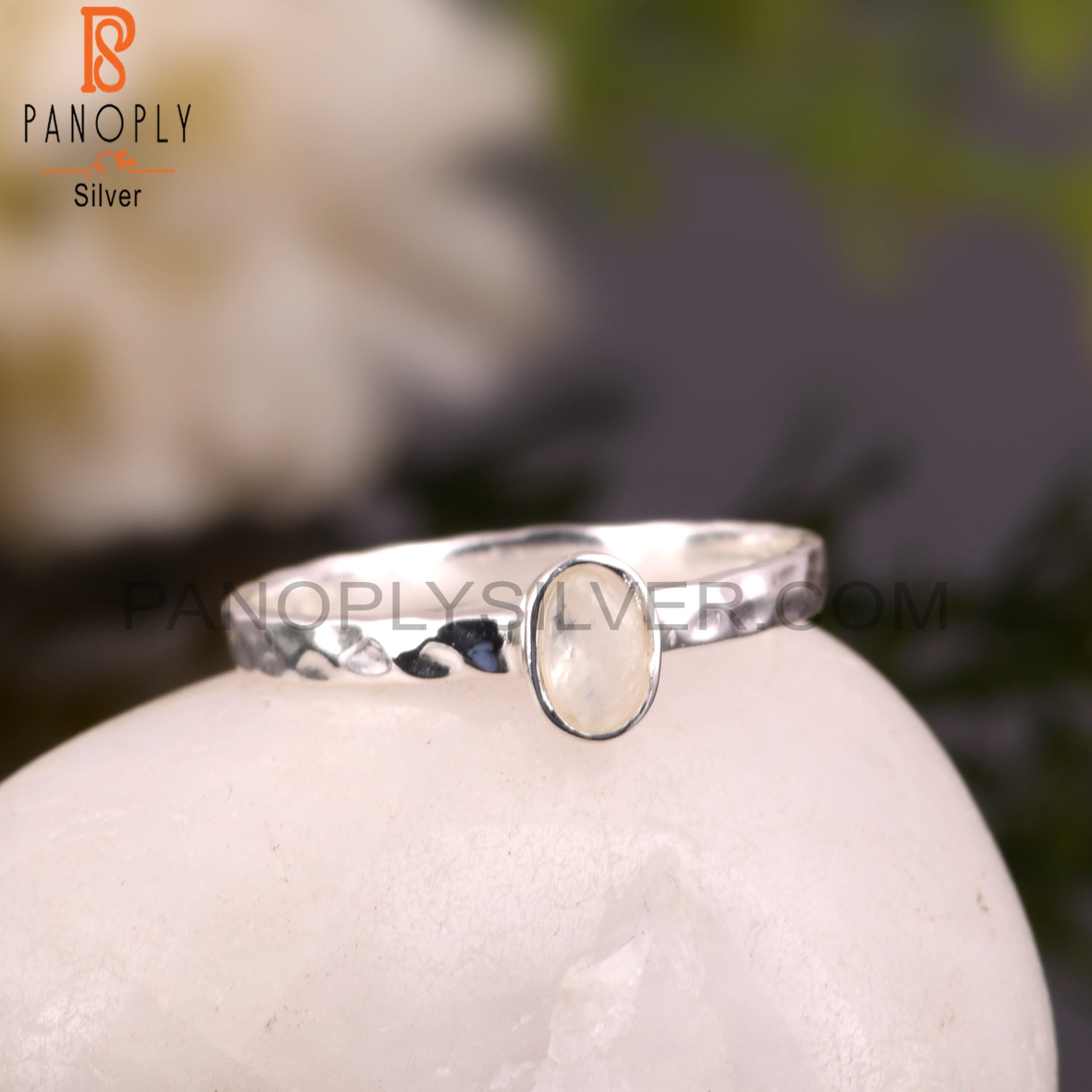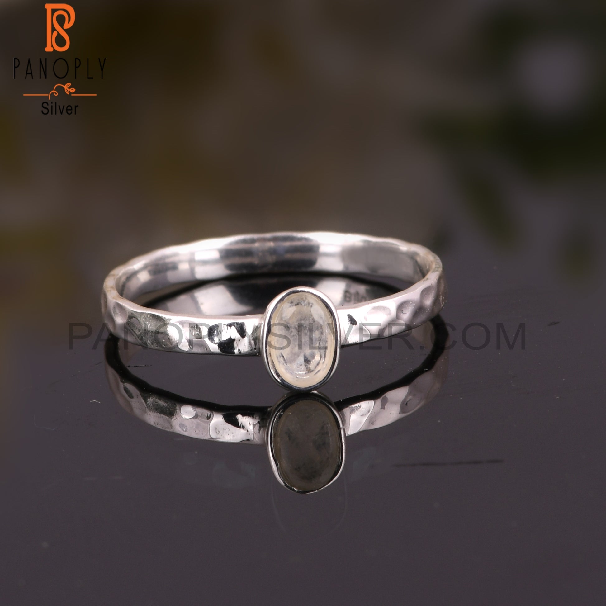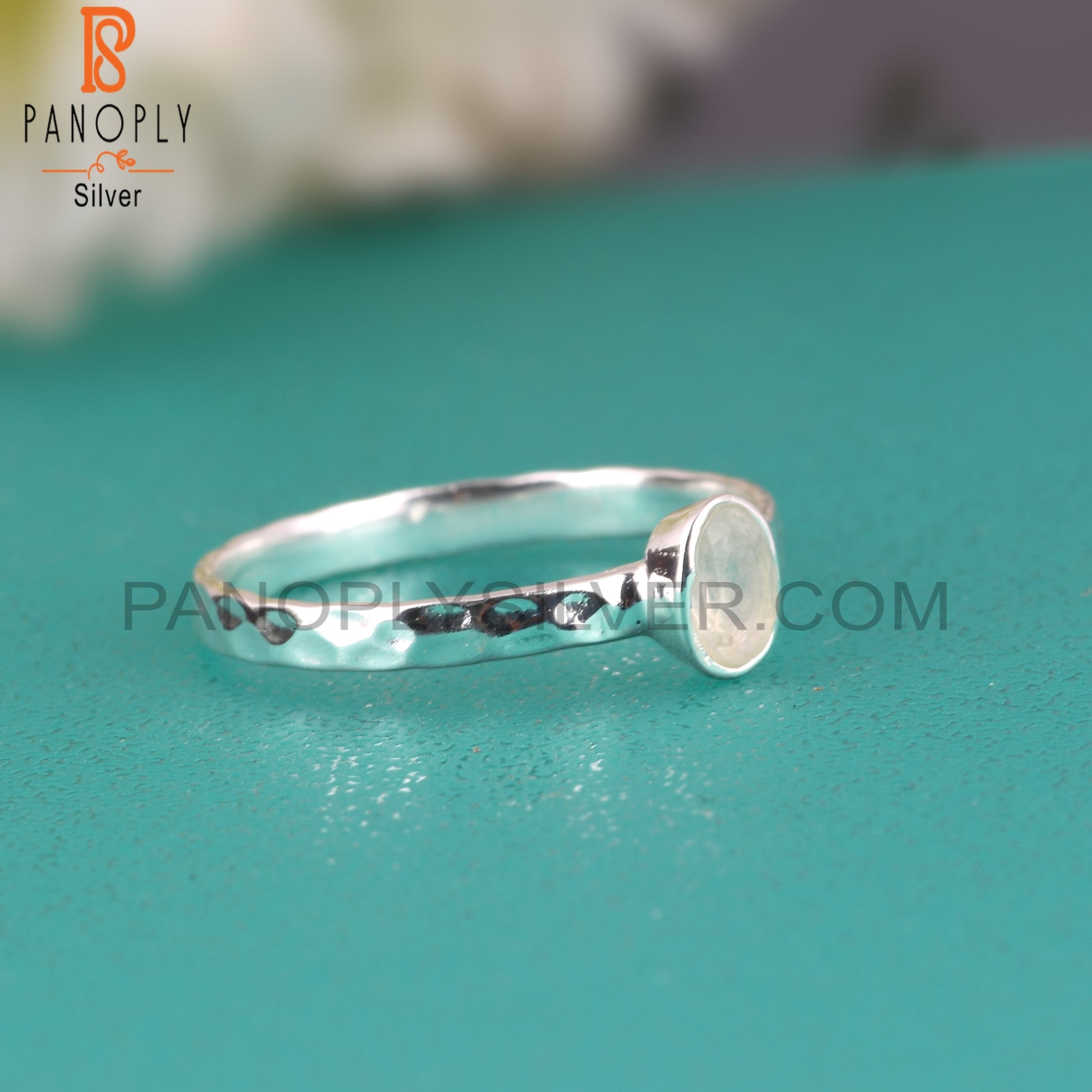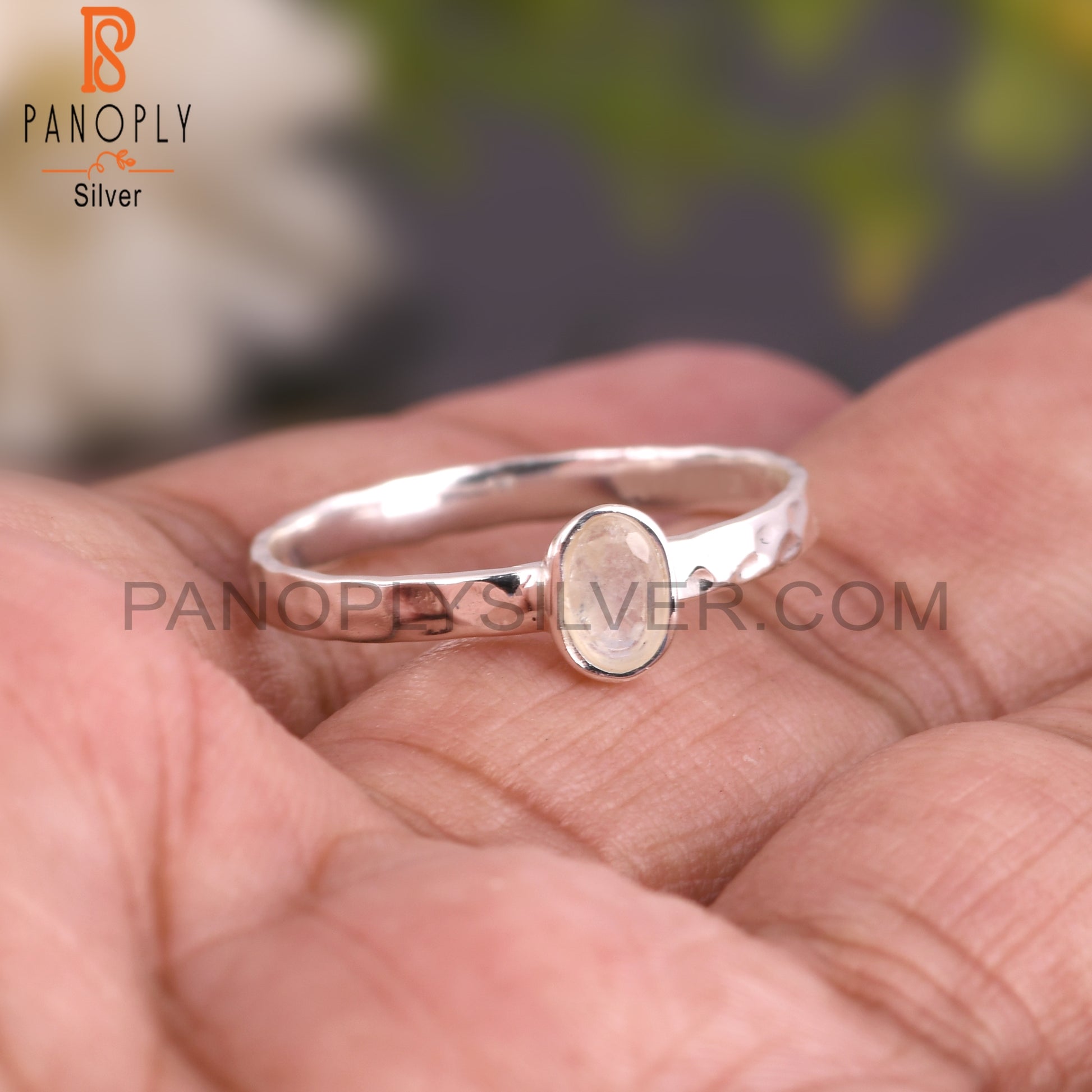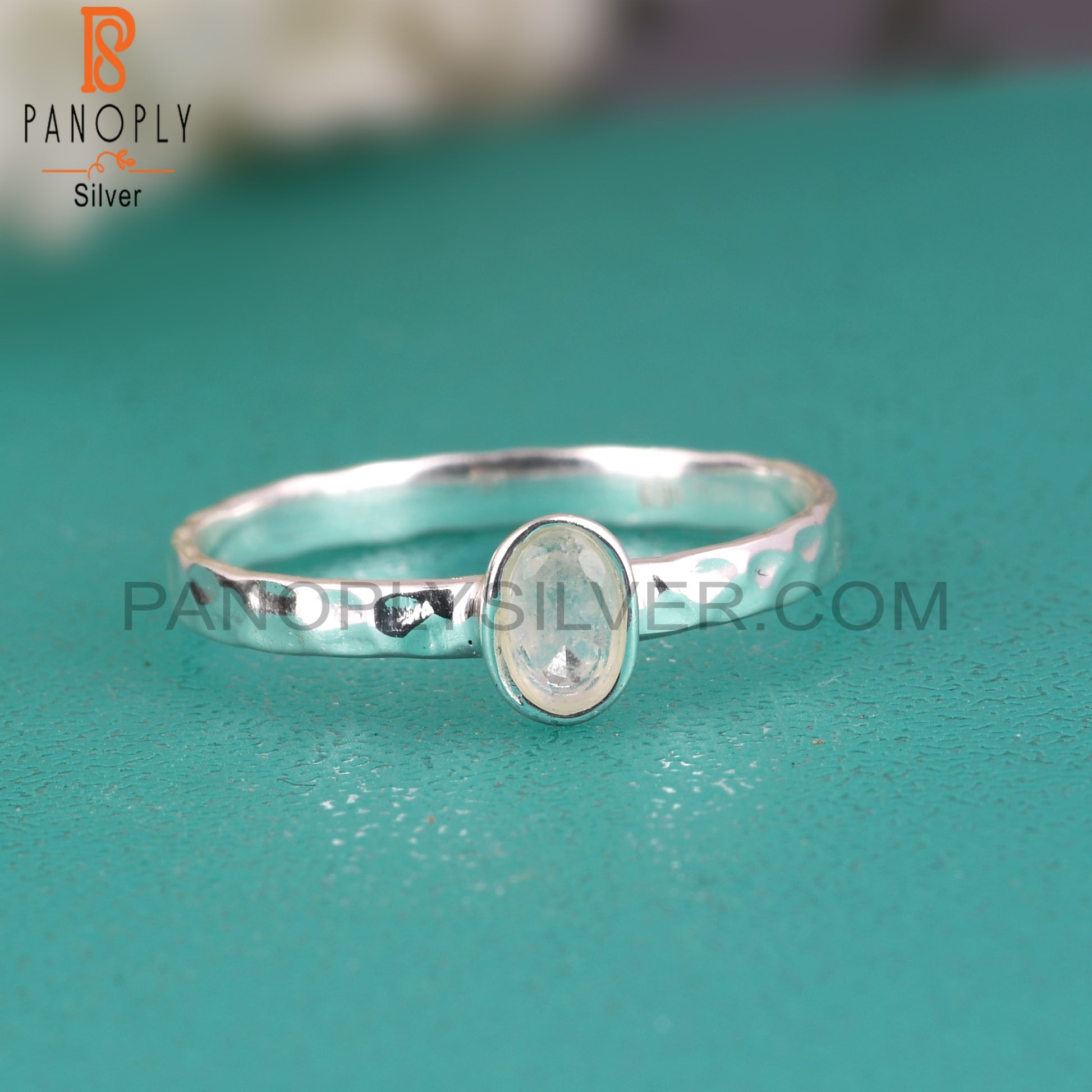 Lightweight Rainbow Moon Stone 925 Silver Ring