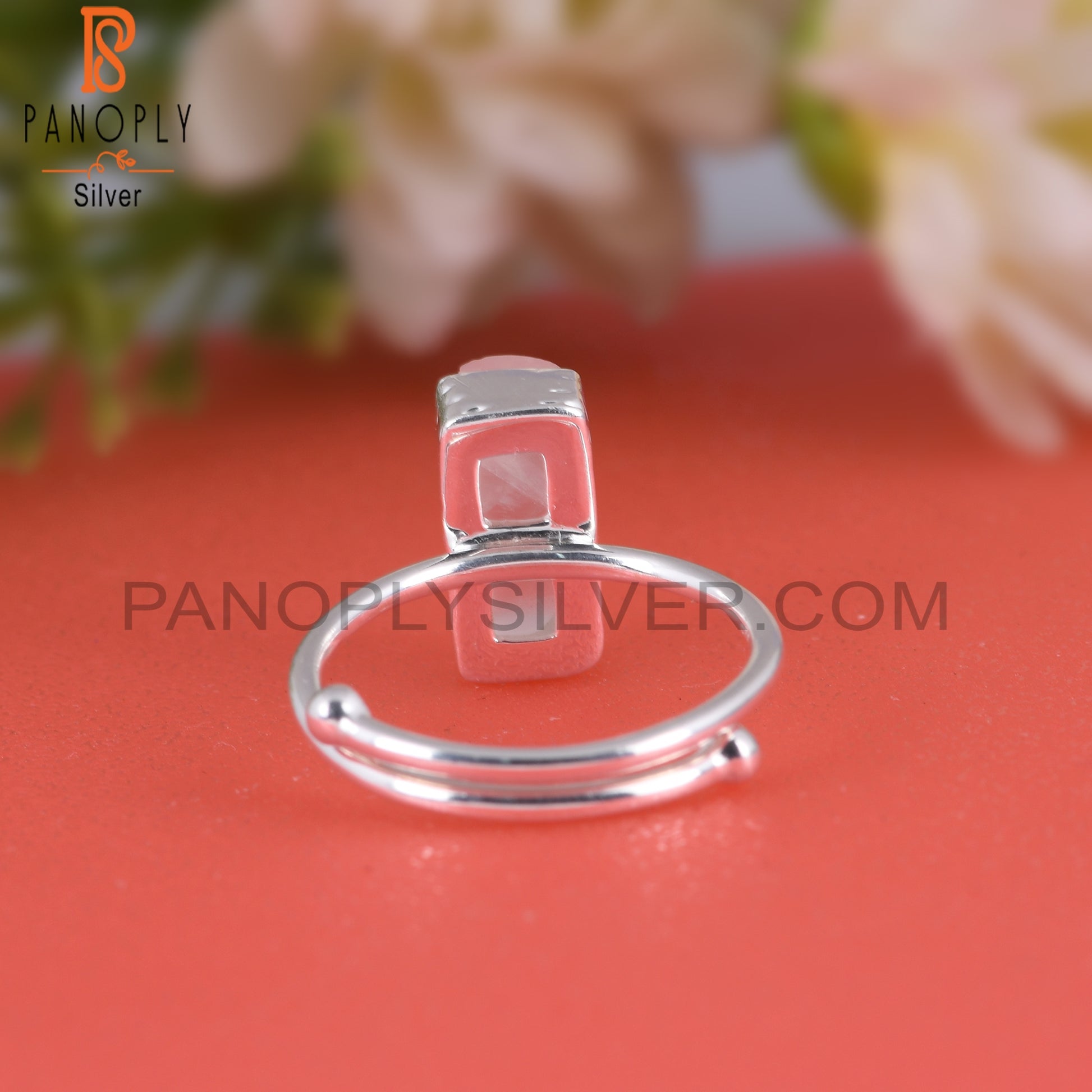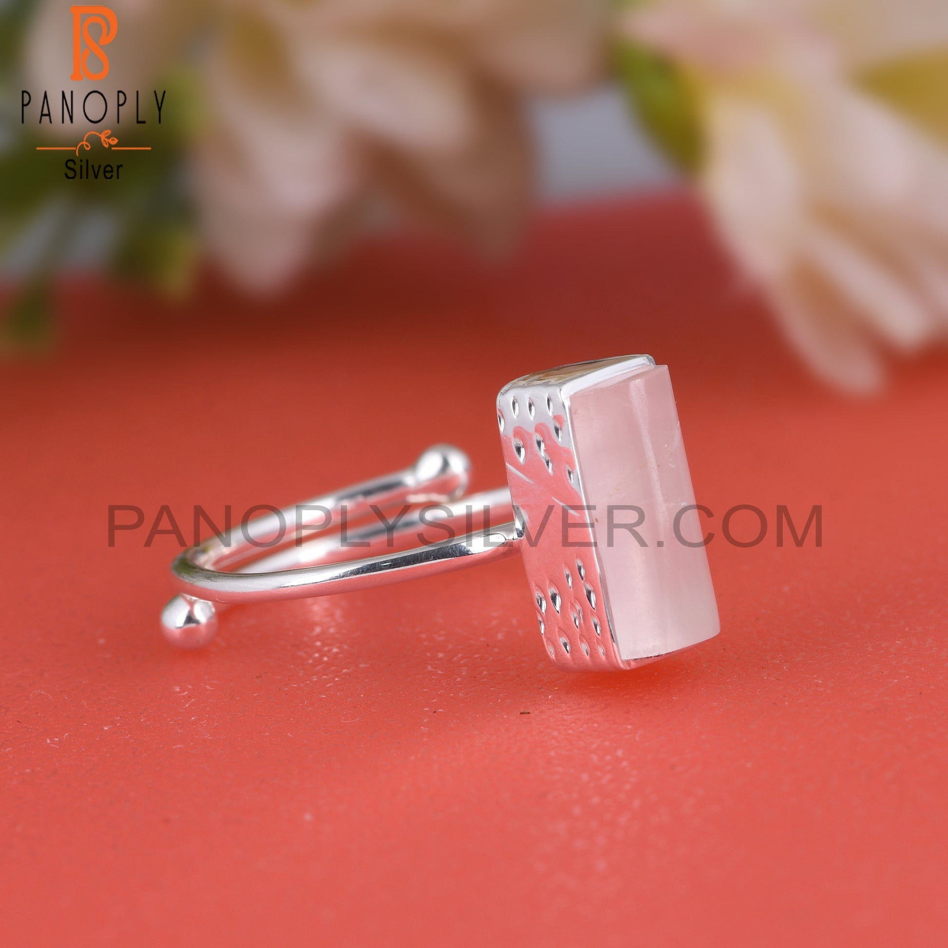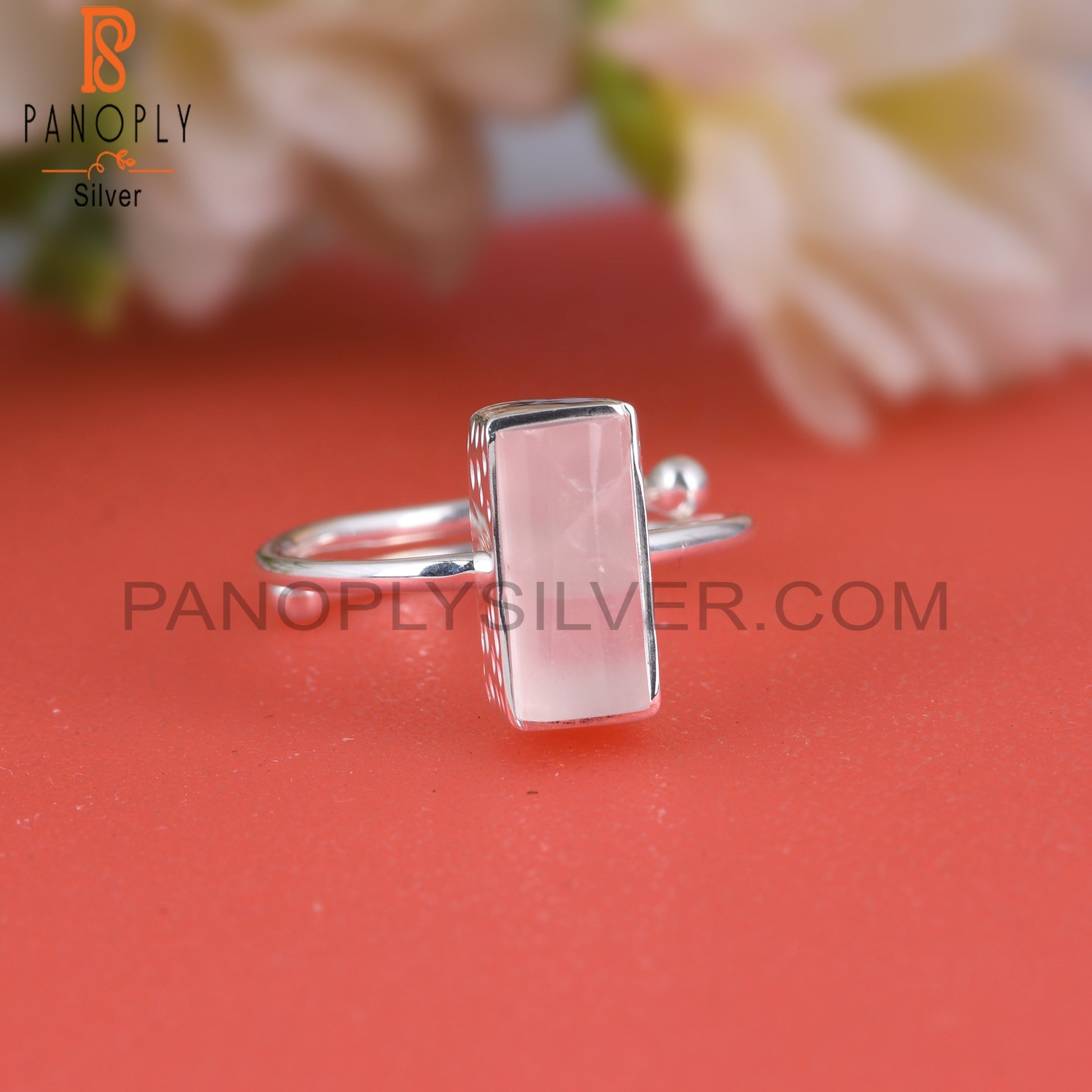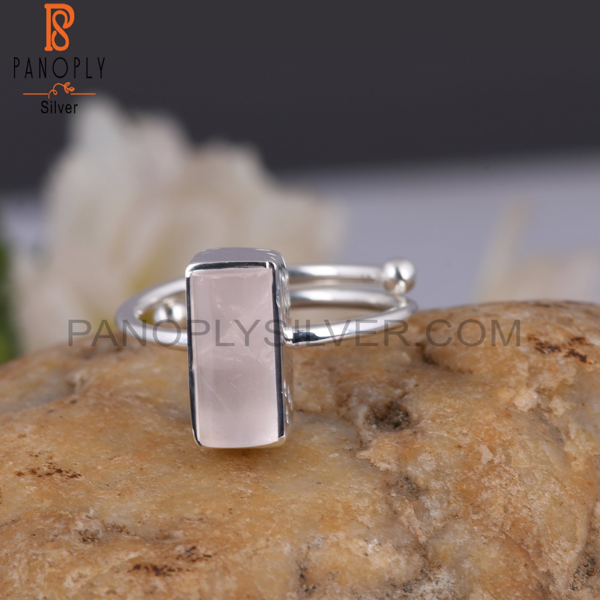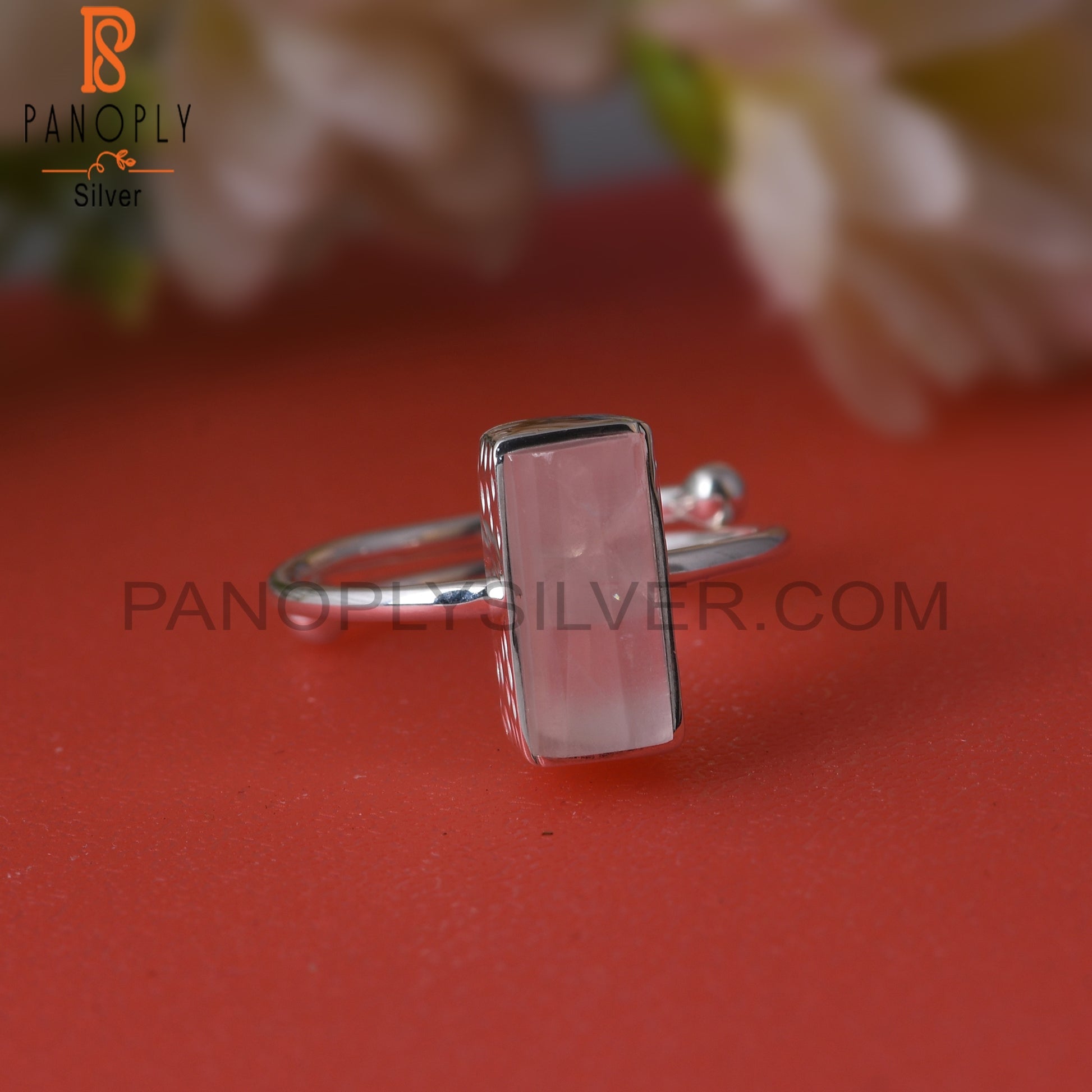 Rose Quartz Half Barrel 925 Sterling Silver Adjustable Ring