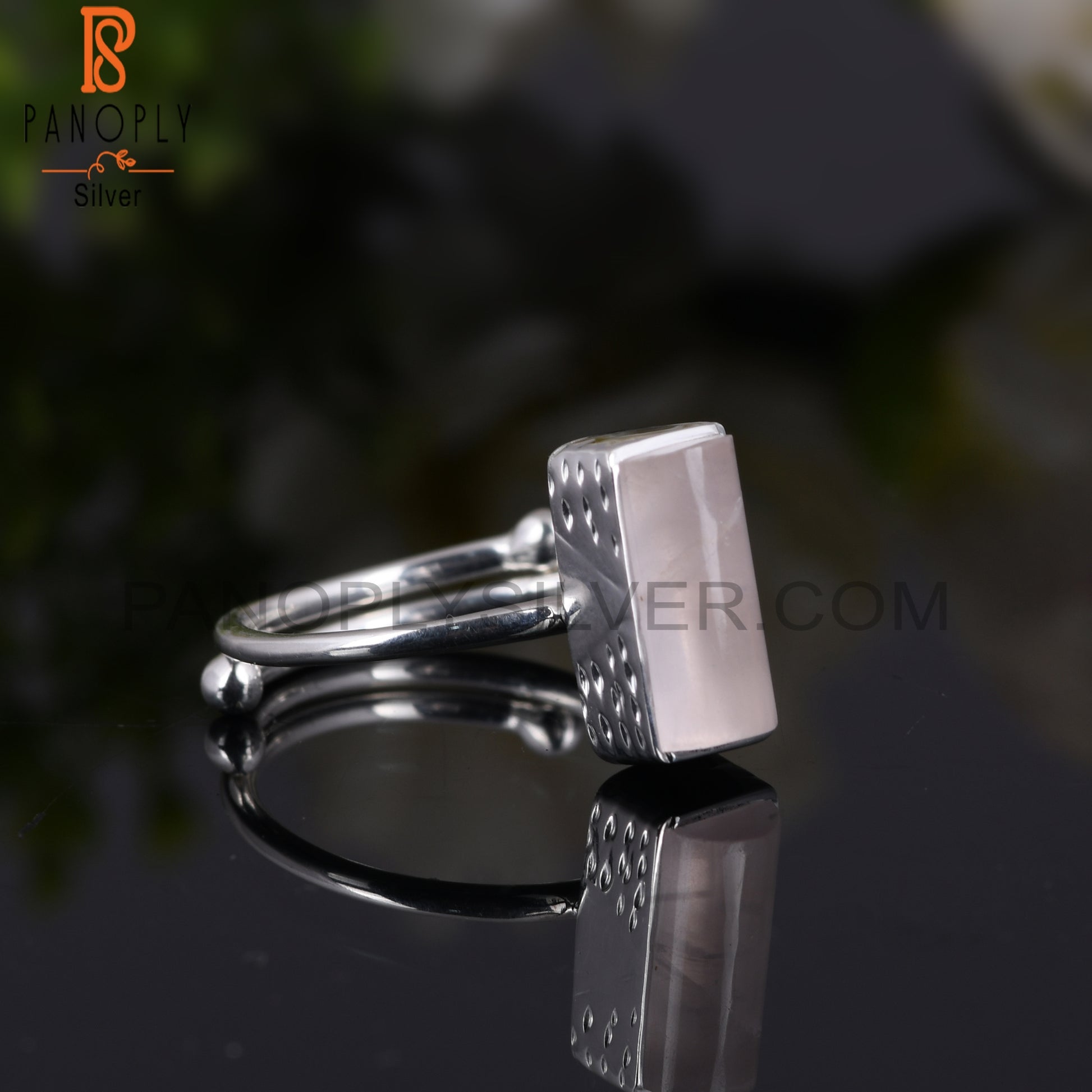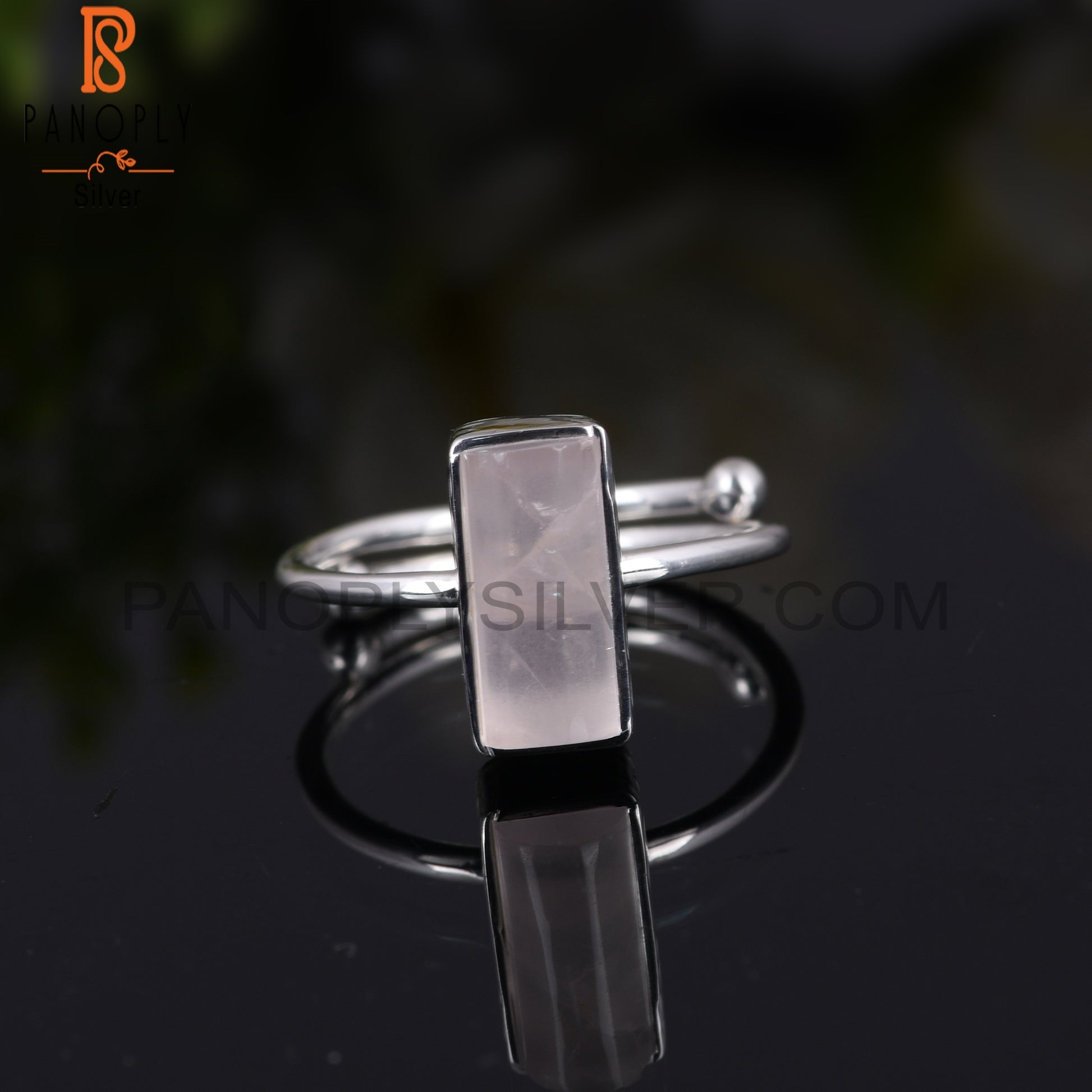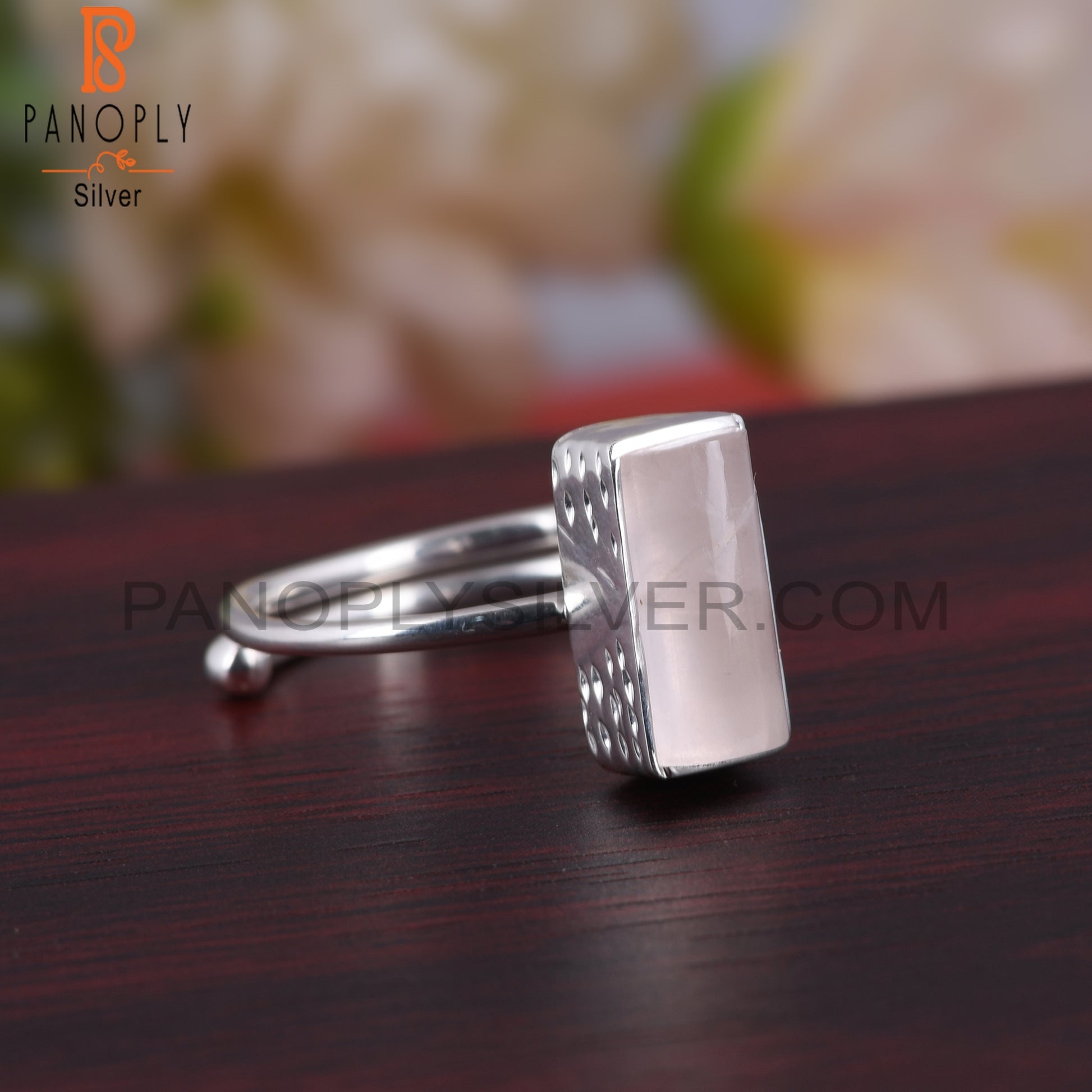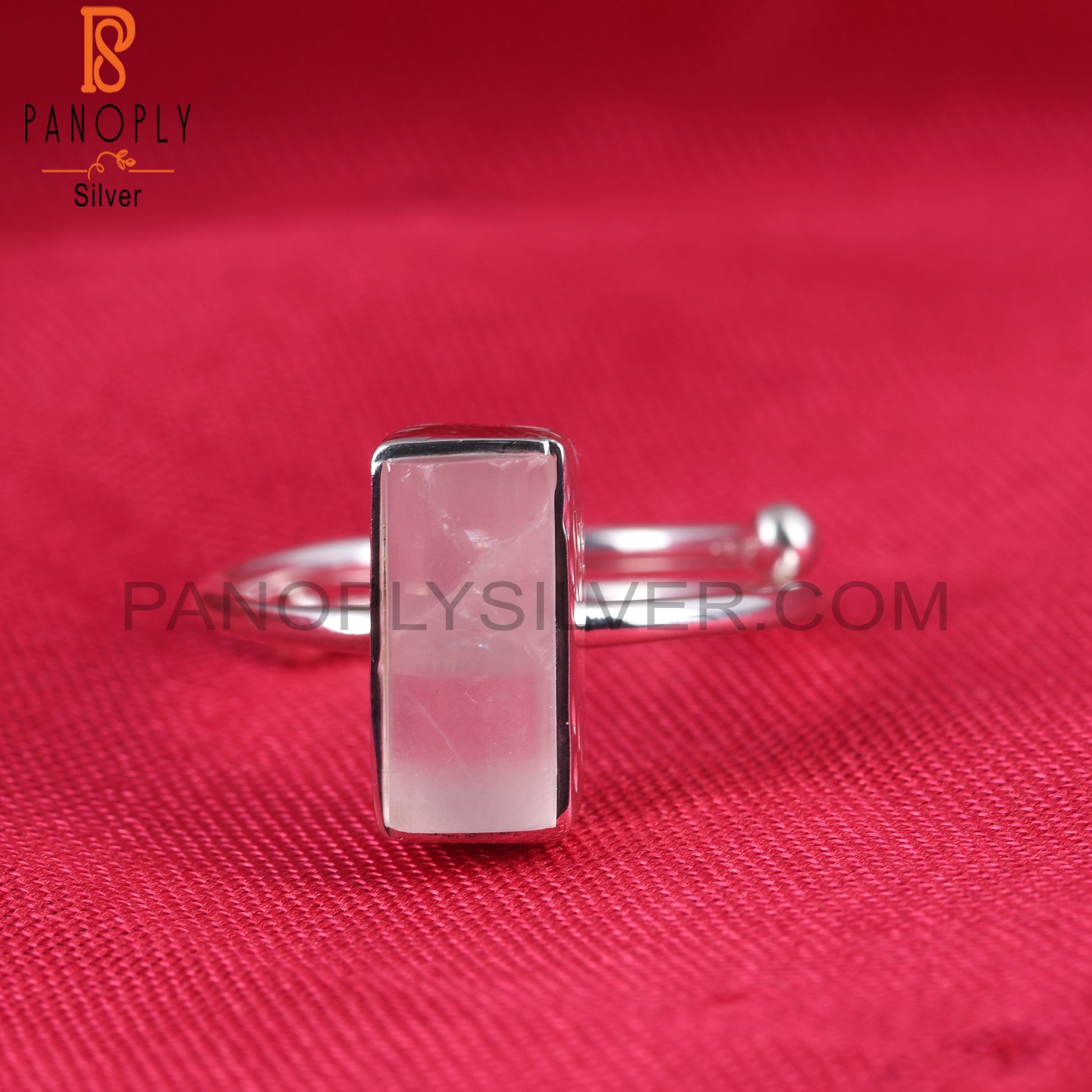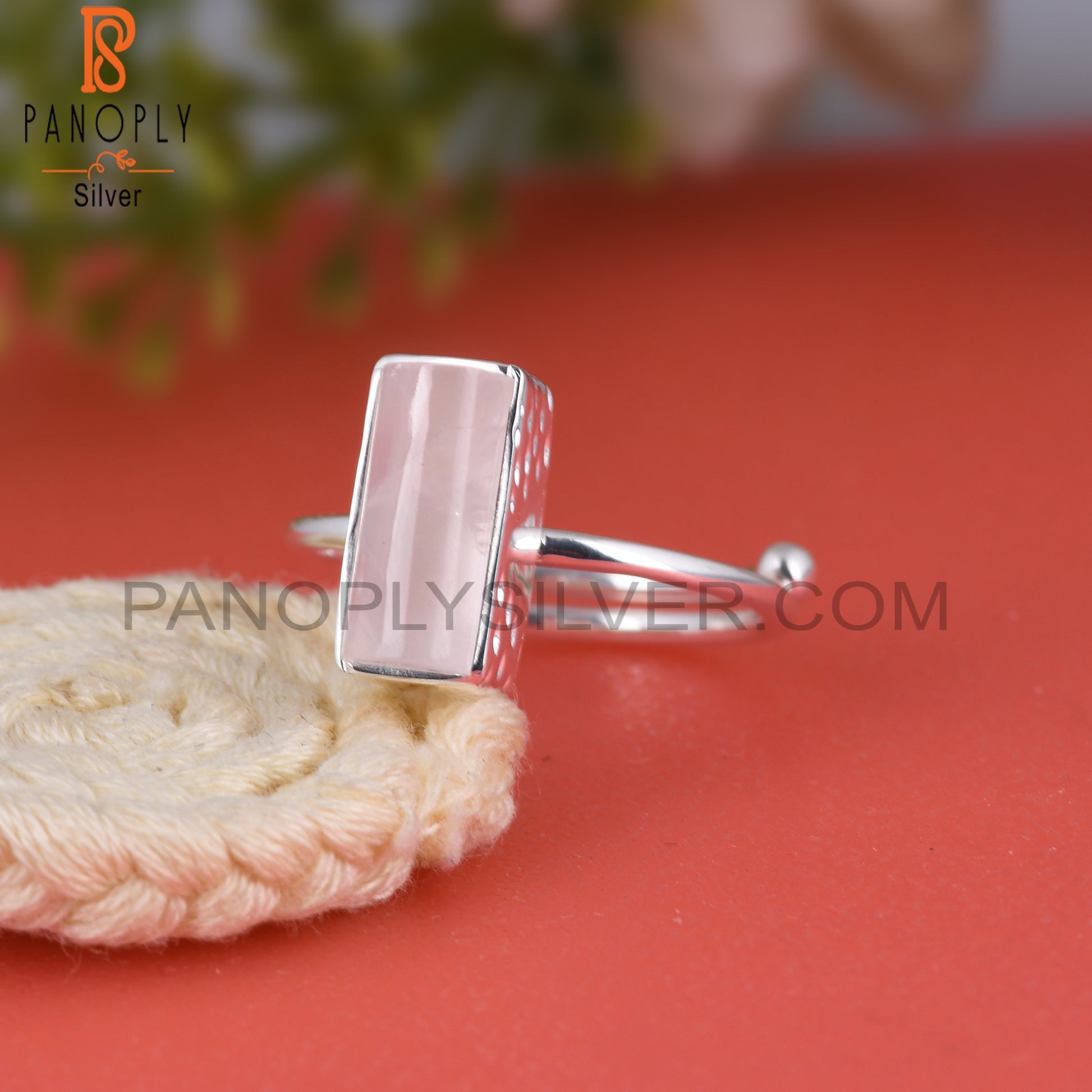 Rose Quartz Half Barrel 925 Sterling Silver Adjustable Ring