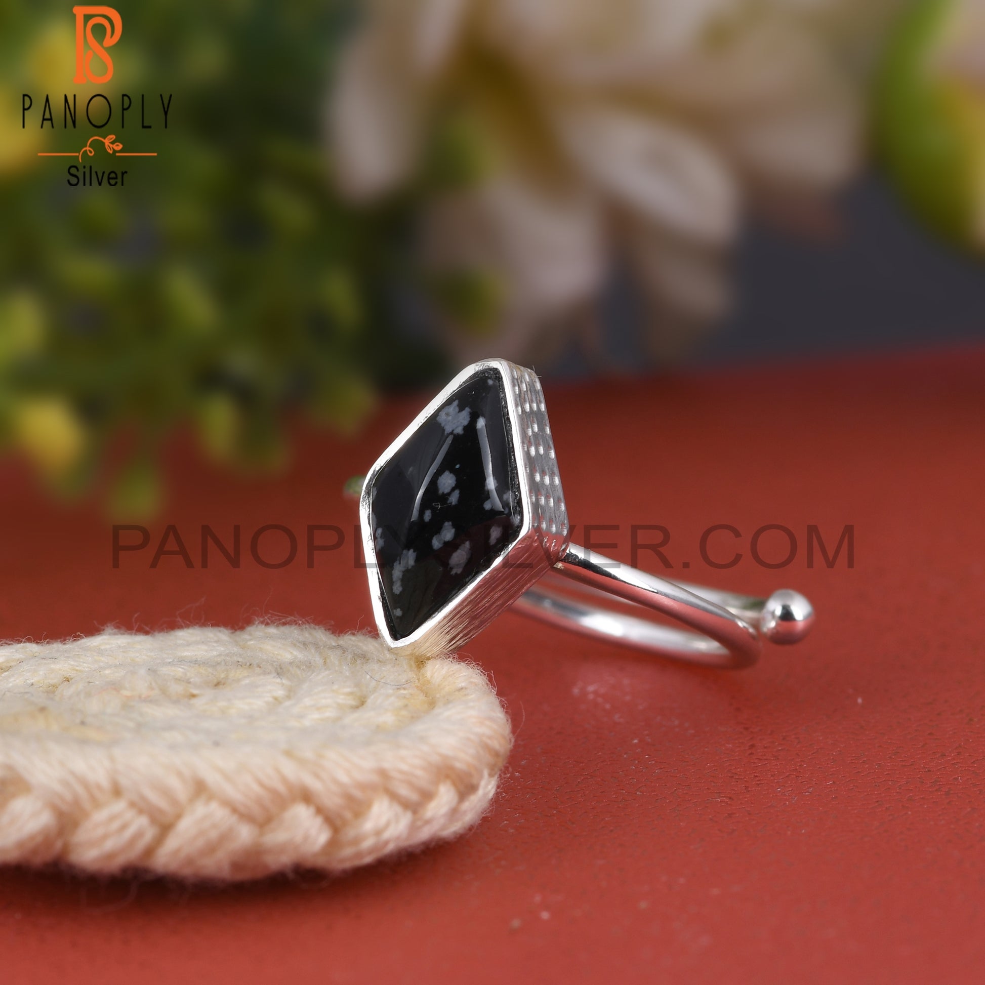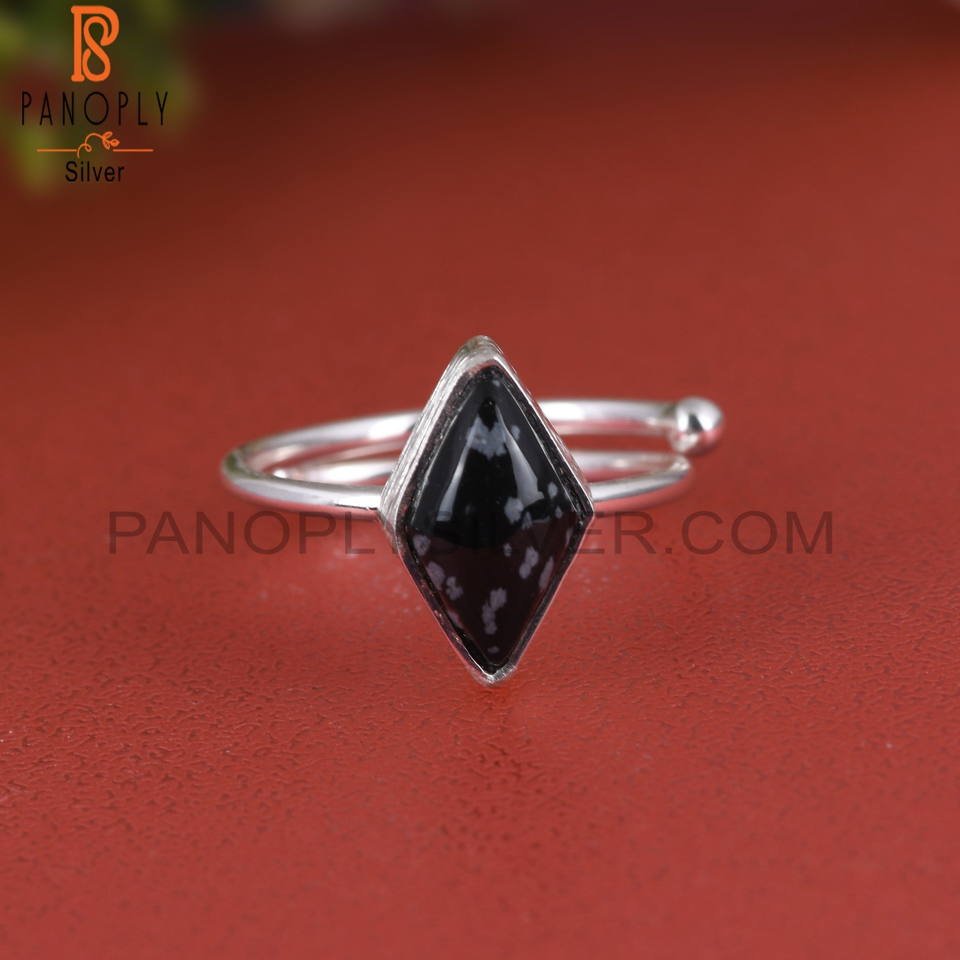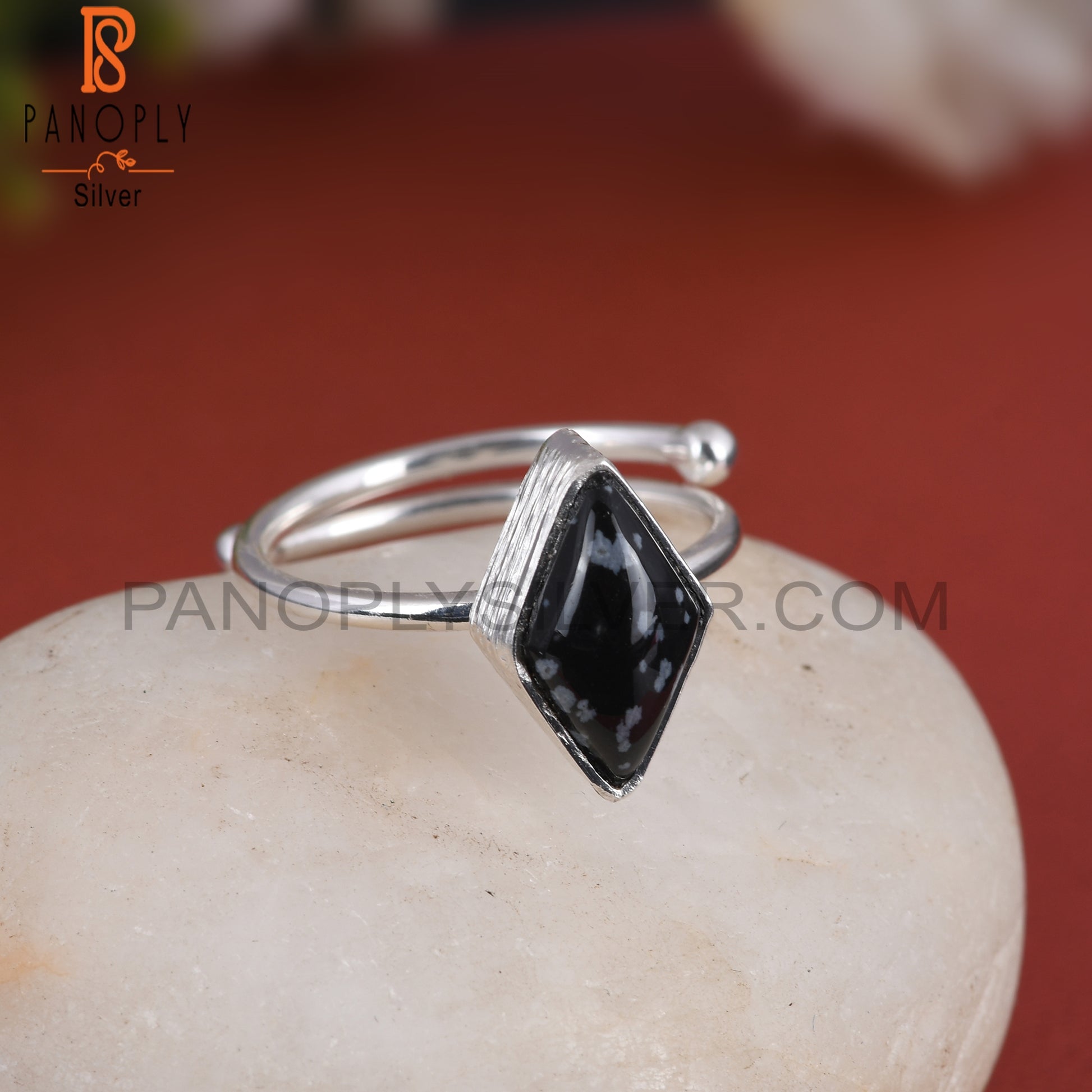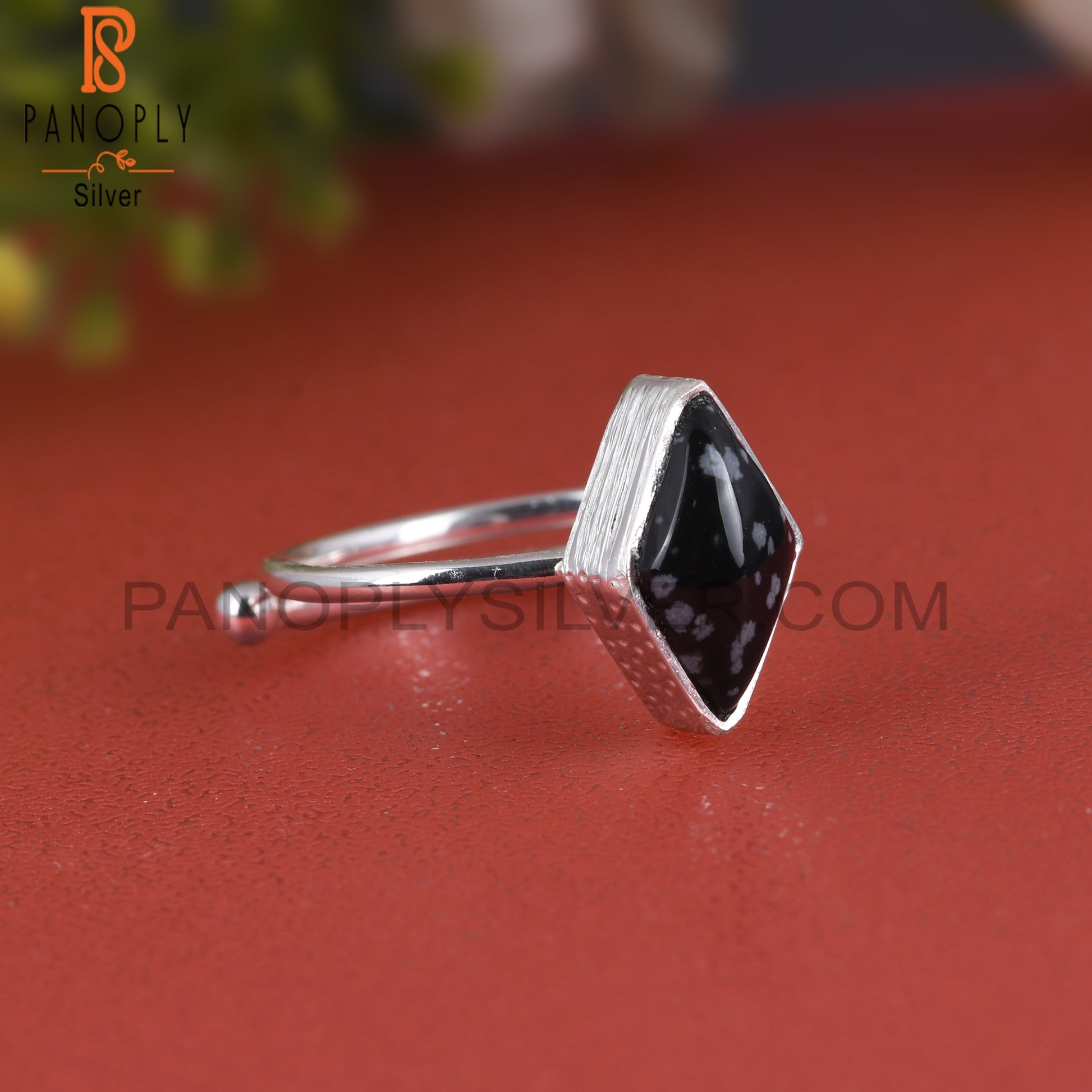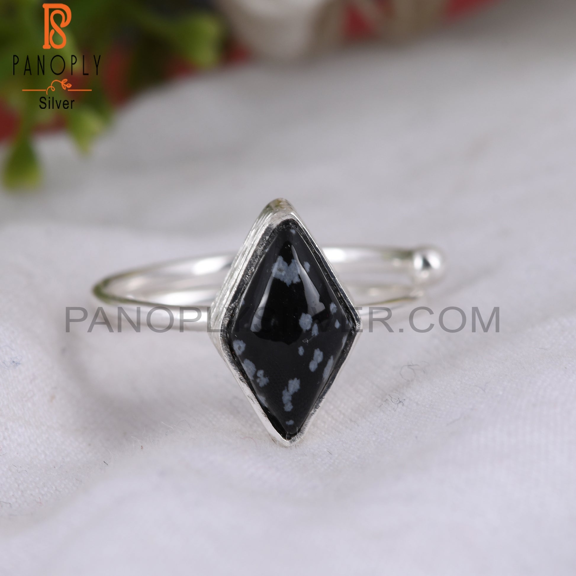 Snowflake Obsidian Diamond 925 Sterling Silver Ring