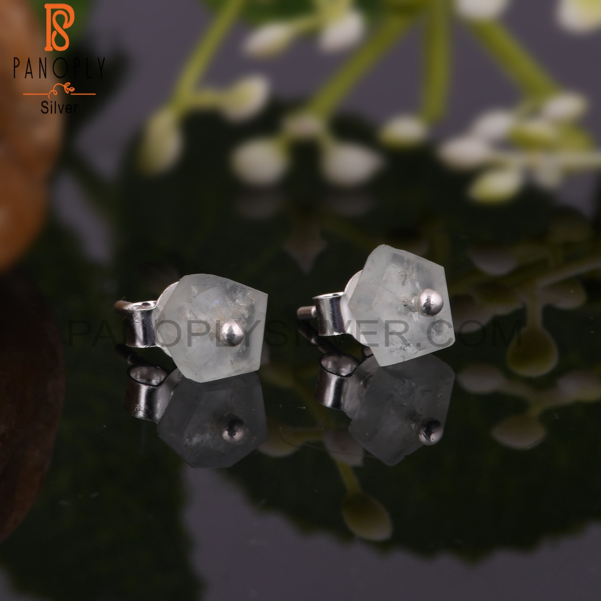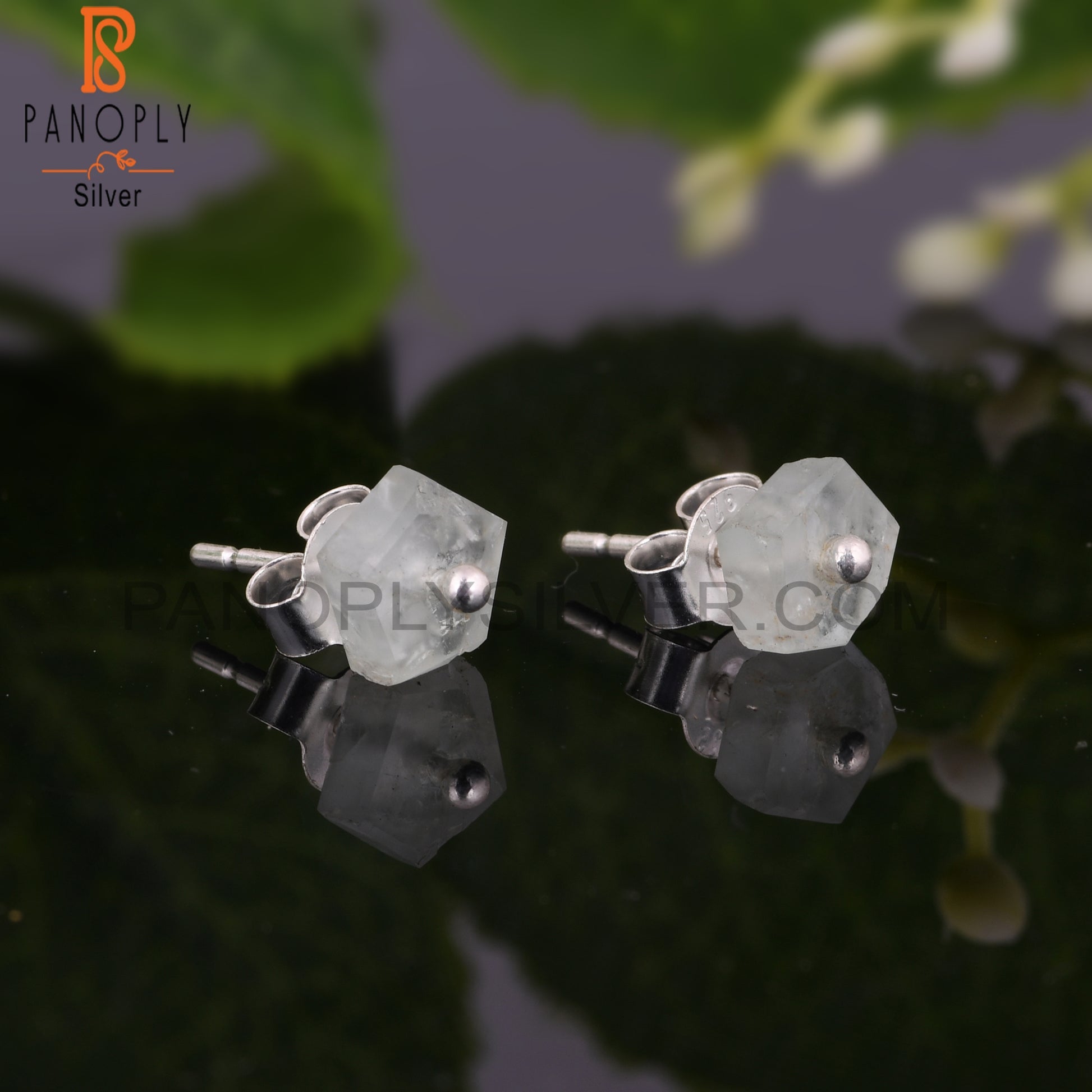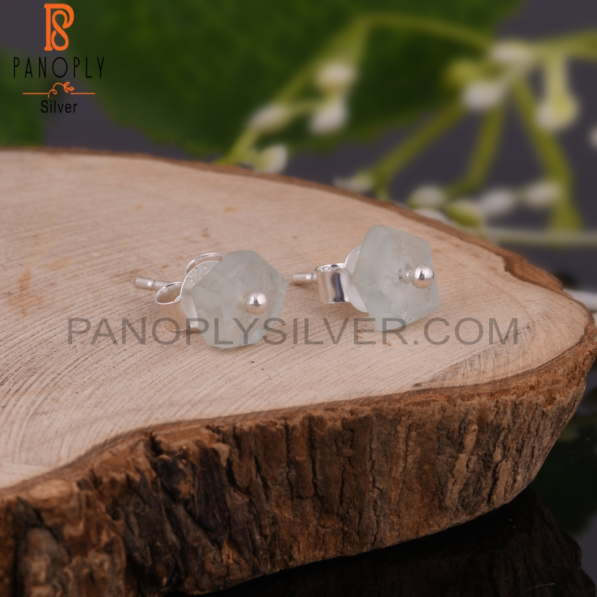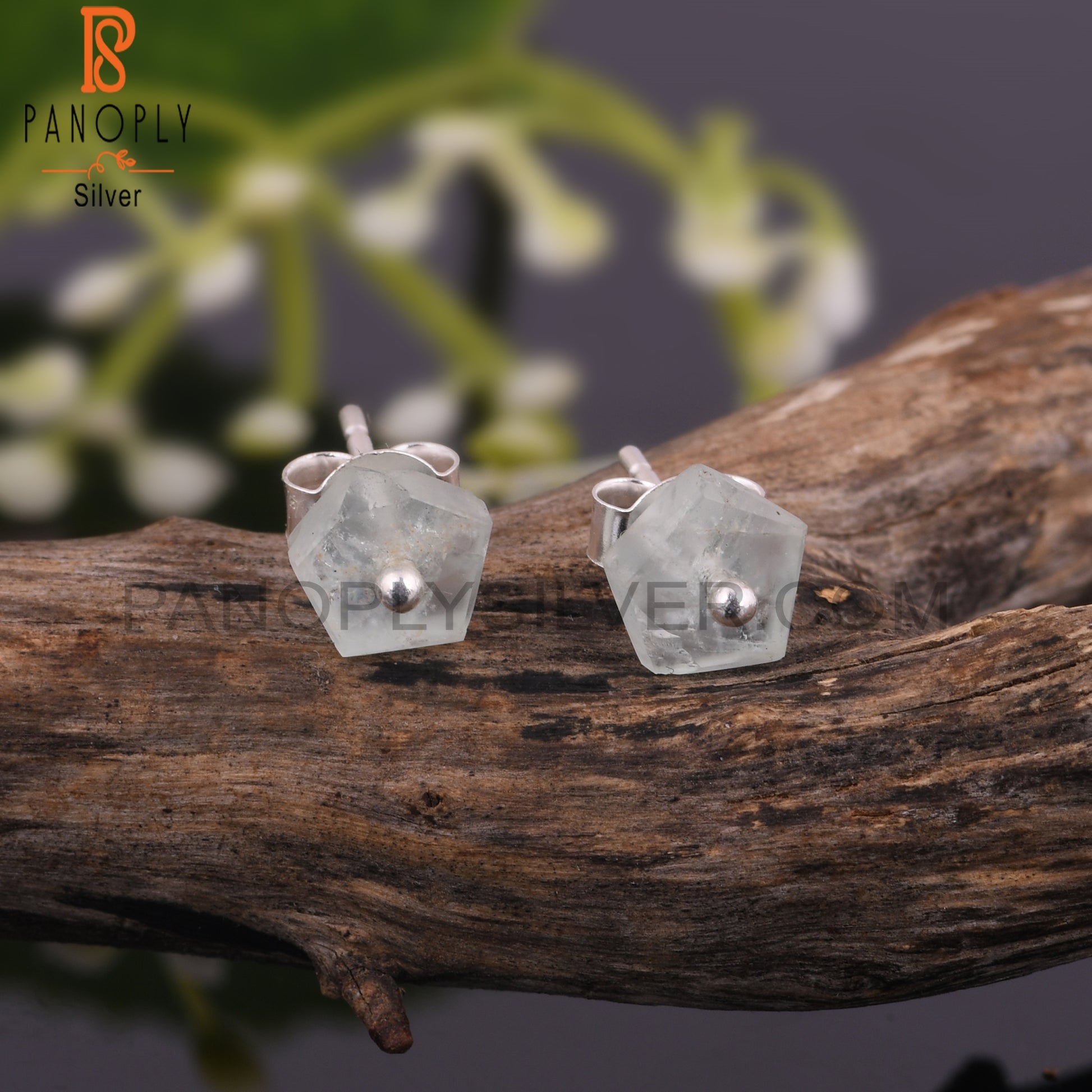 Aquamarine Hexagon Shape 925 Sterling Silver Earrings