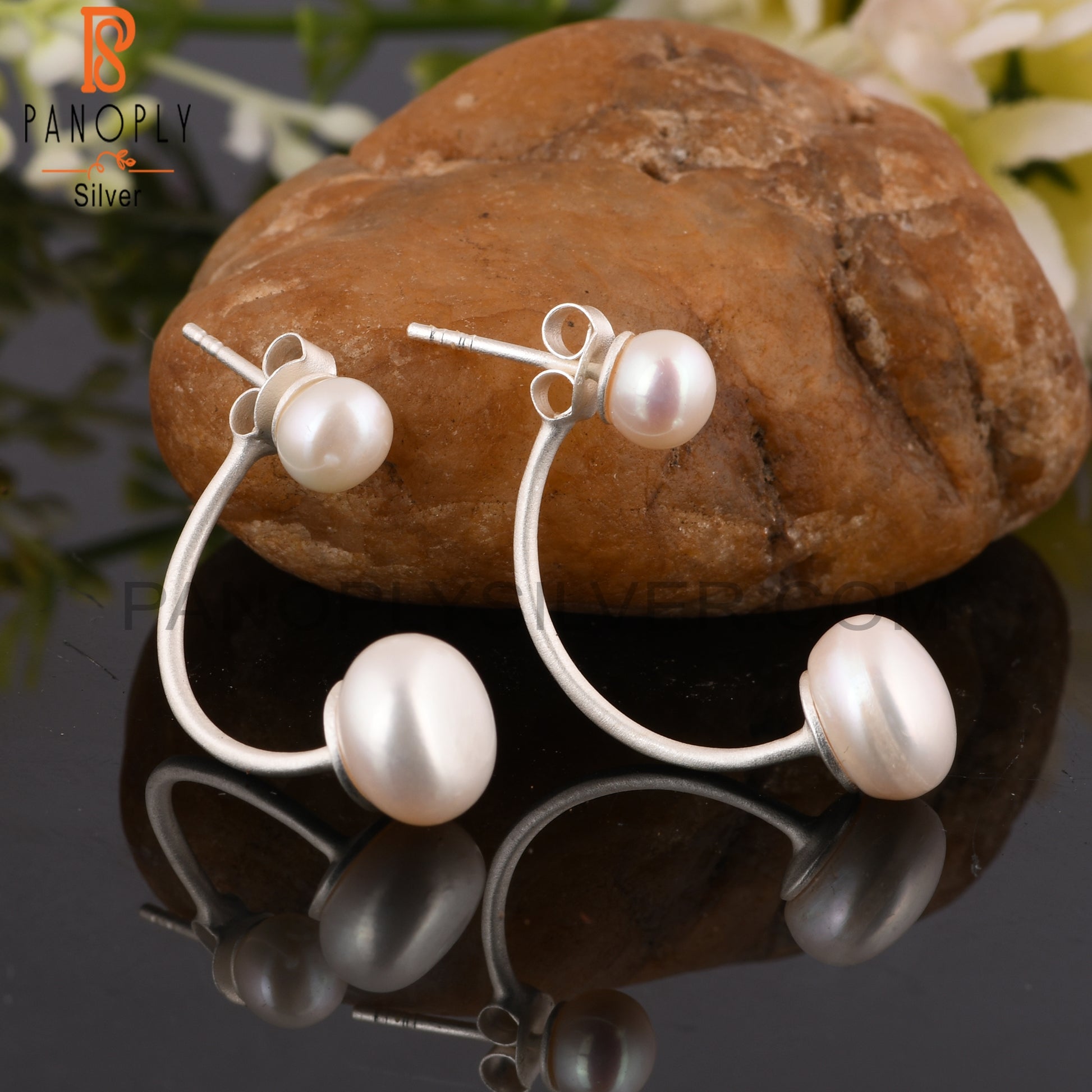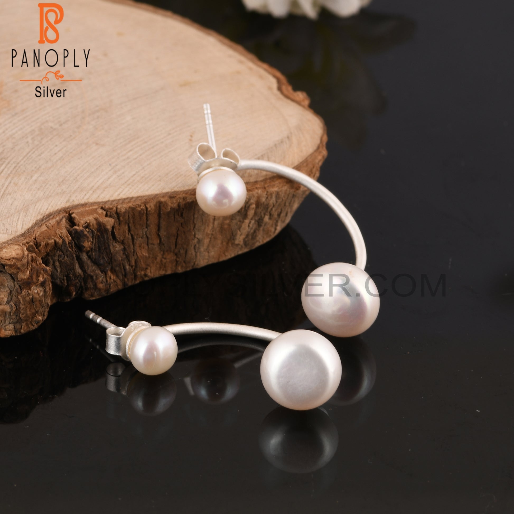 Pearl Round Shape 925 Sterling Silver Party Wear Earrings