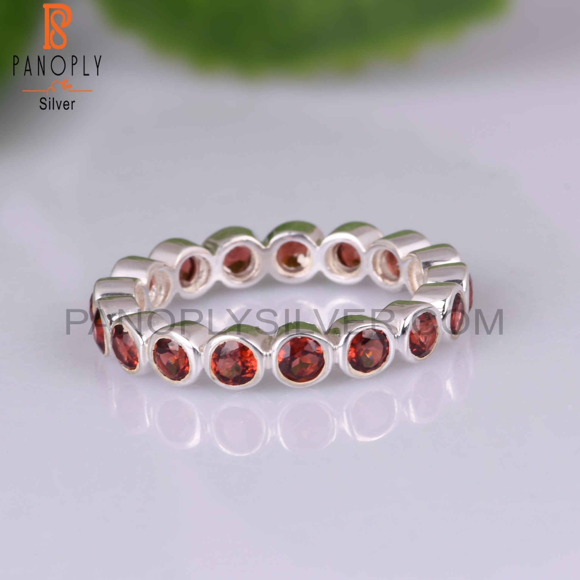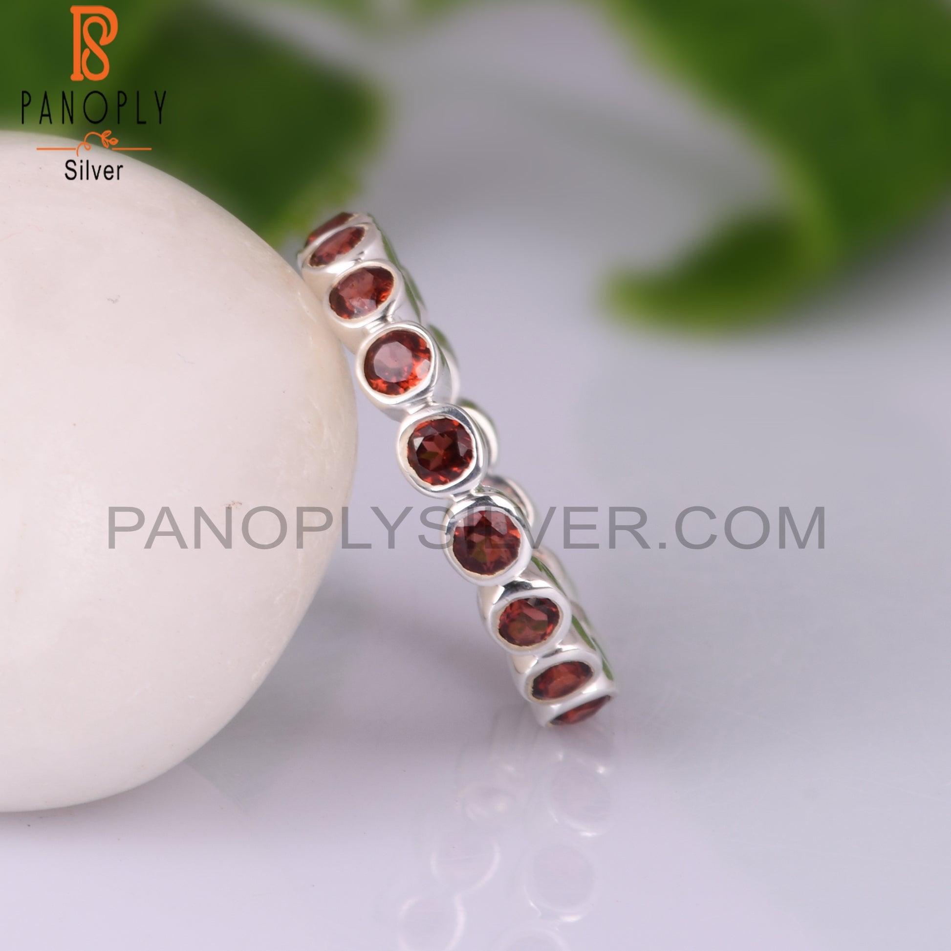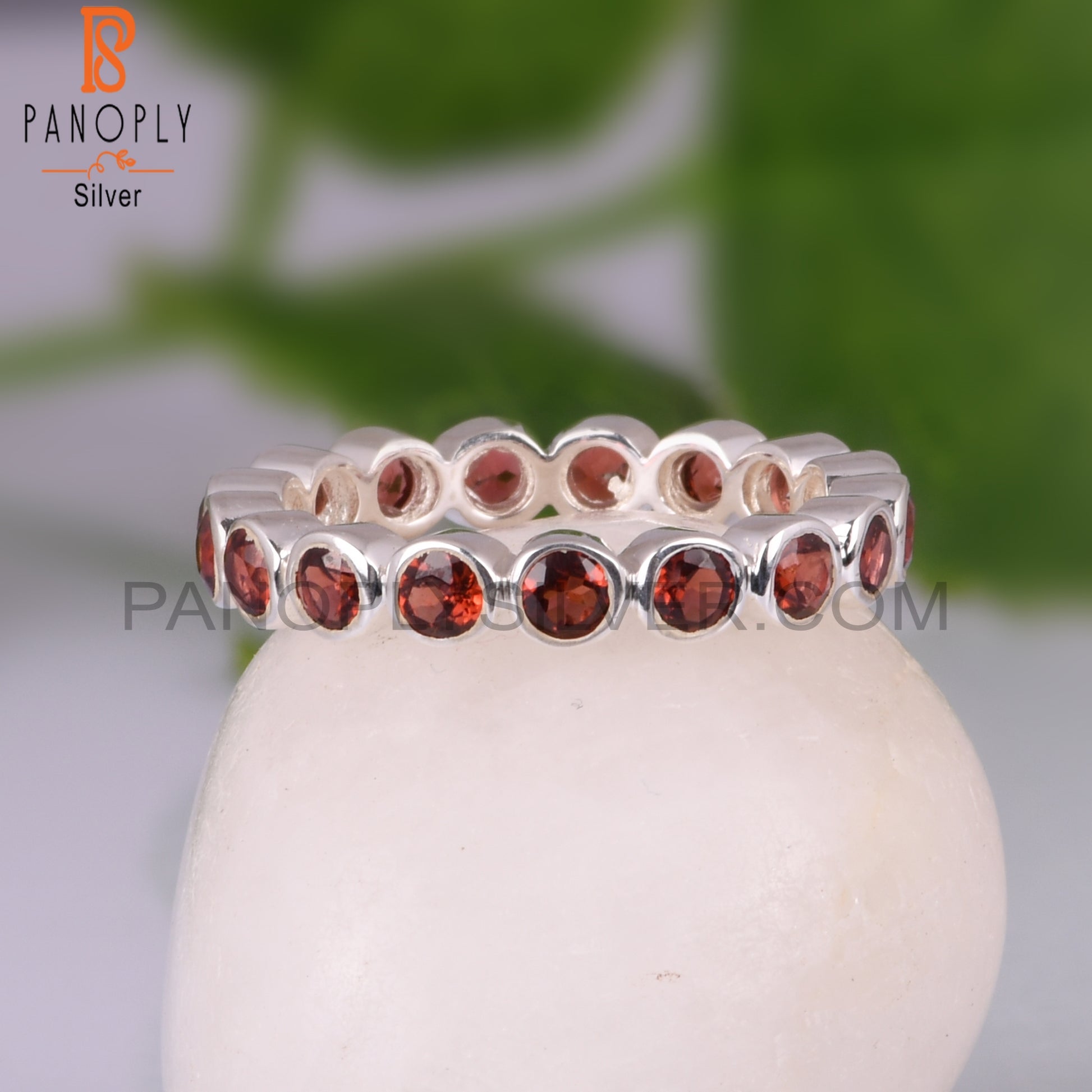 Garnet Round 925 Sterling Silver Ring For Gift For Her