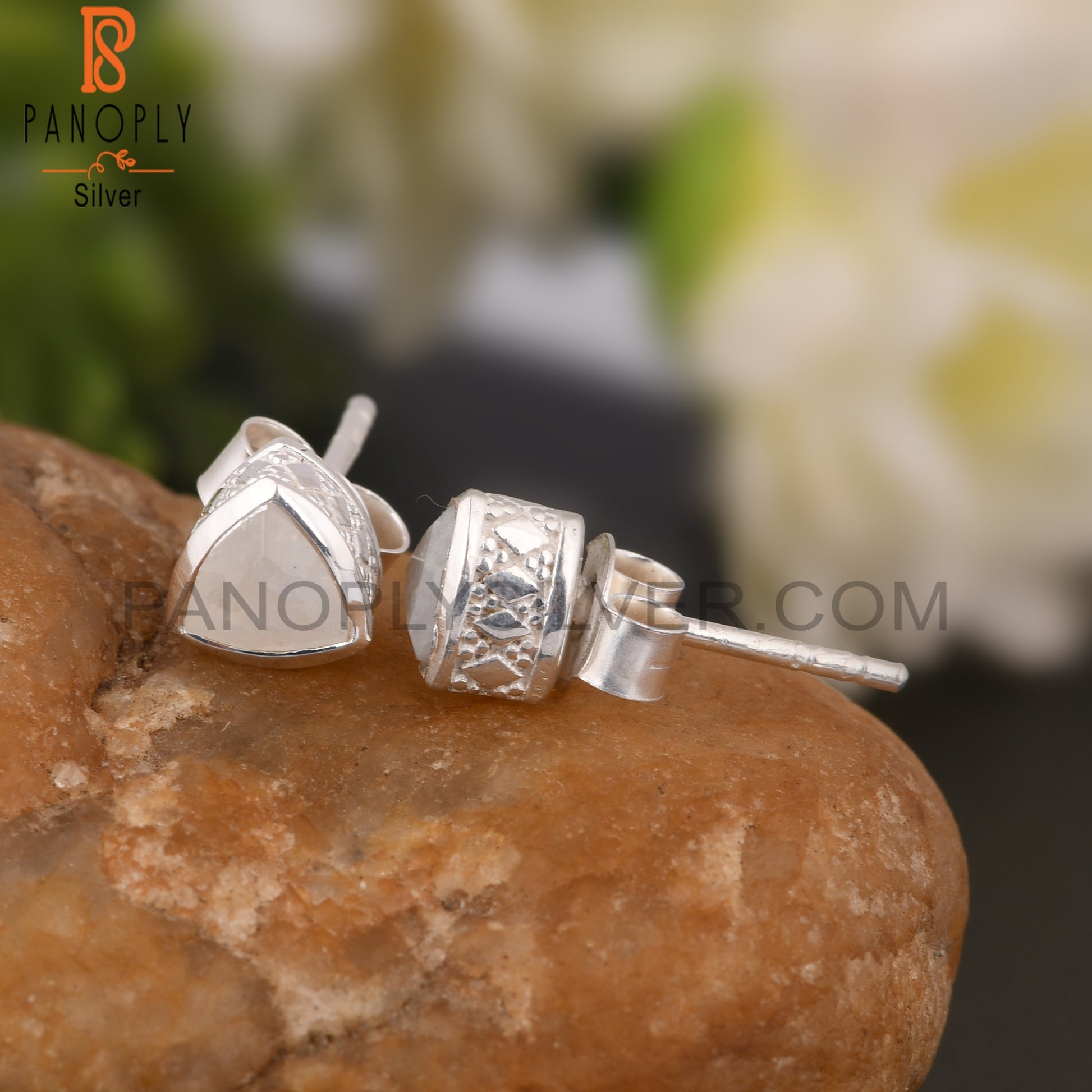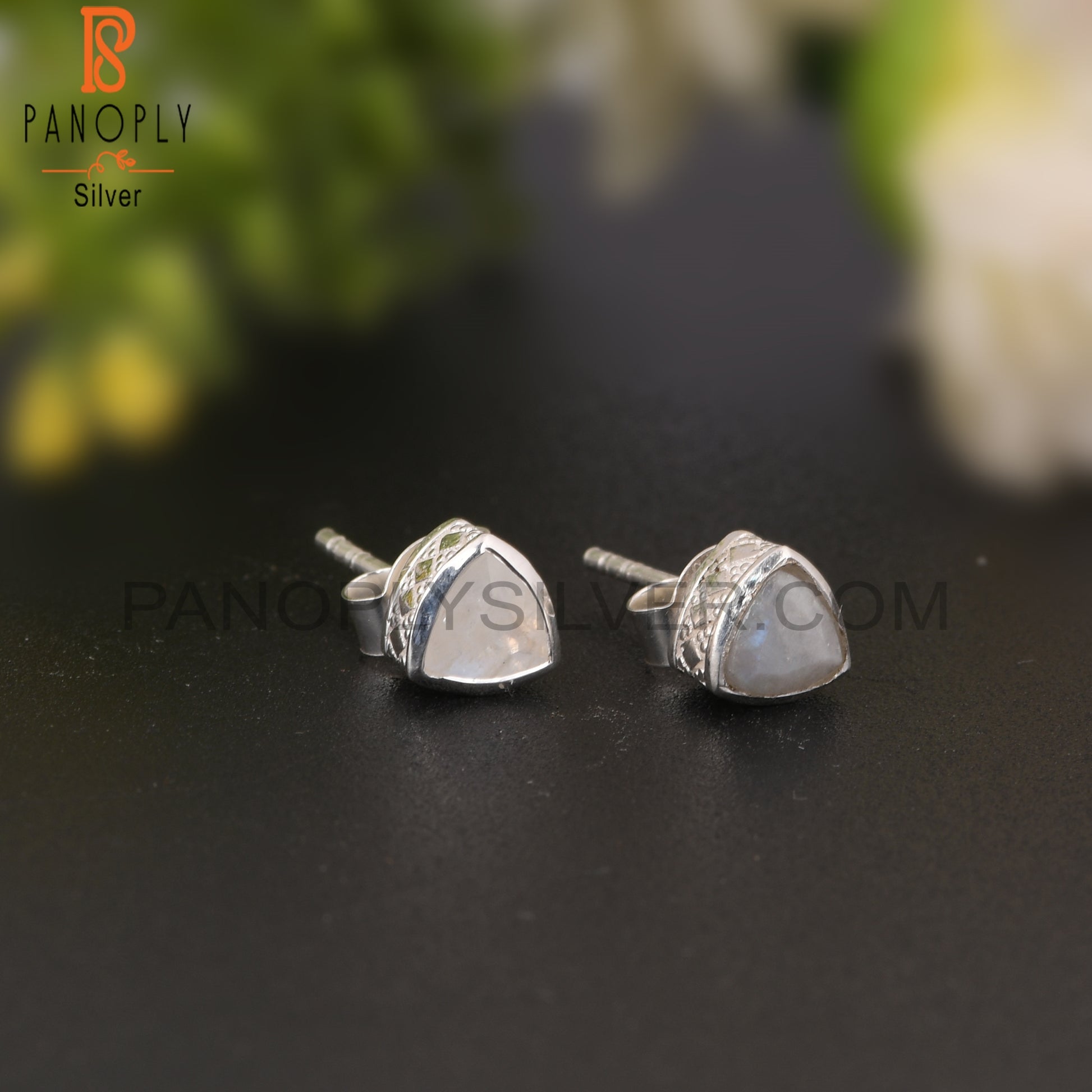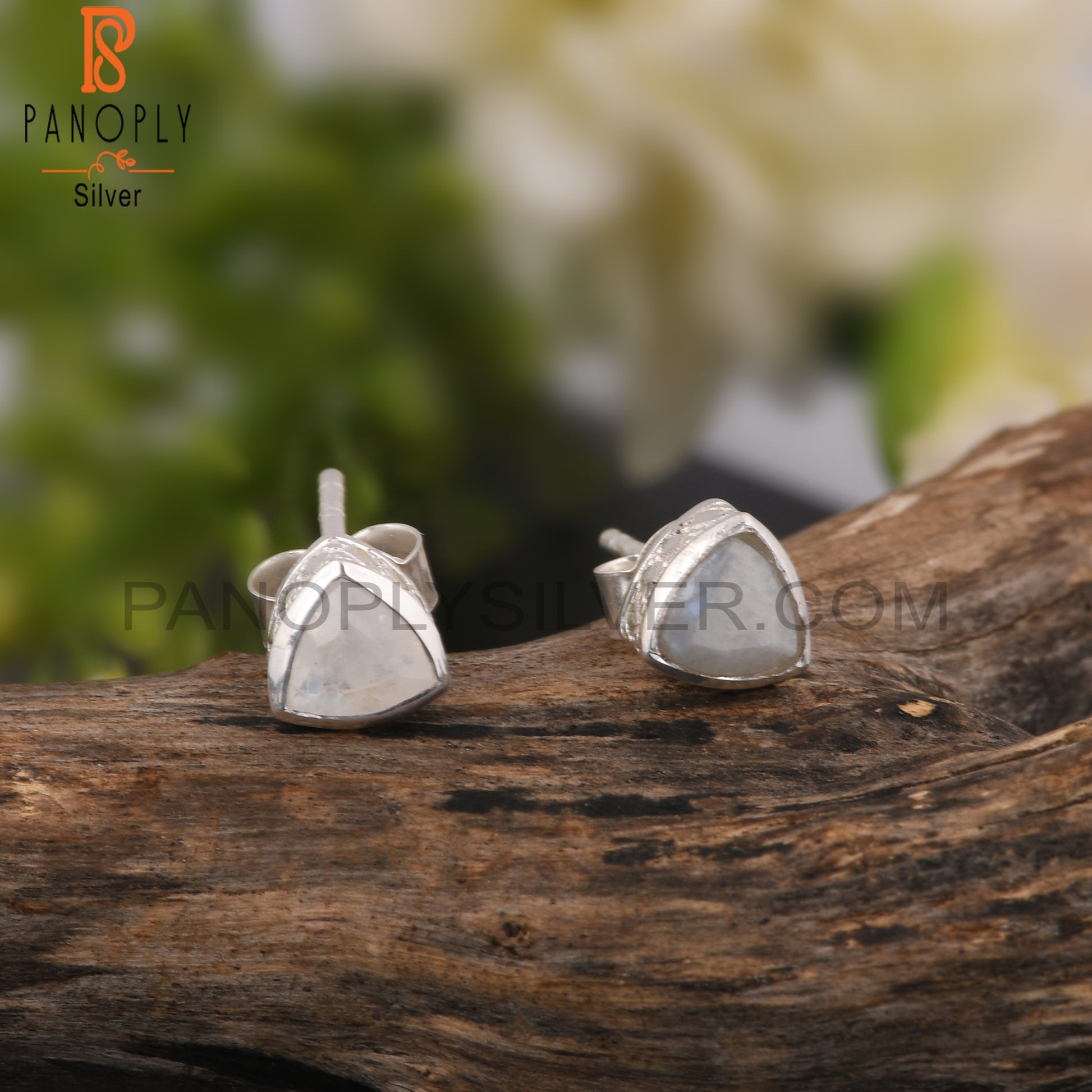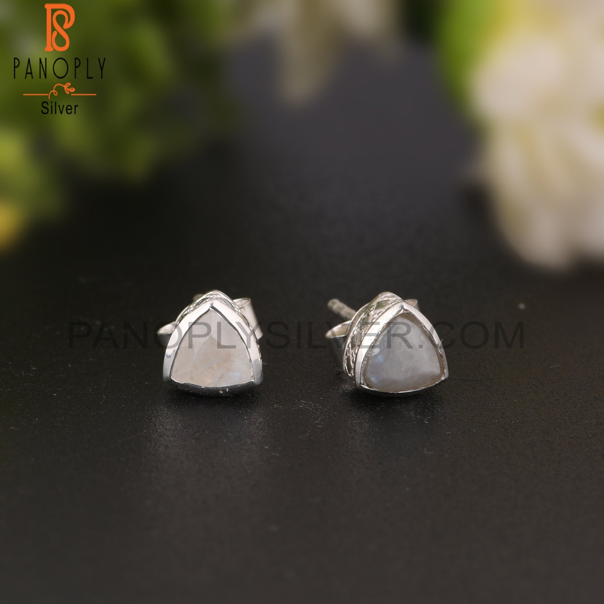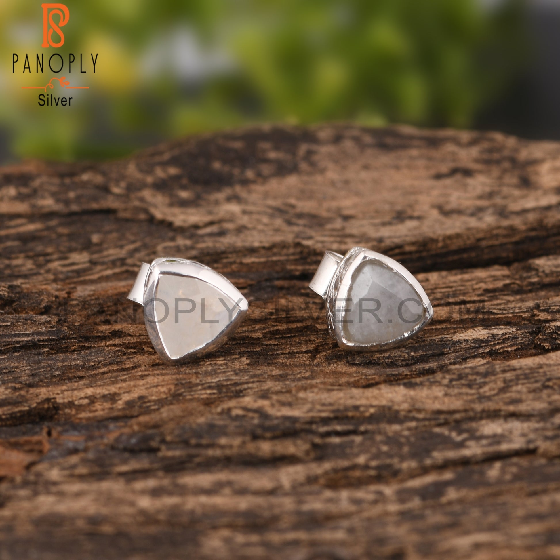 Rainbow Moonstone Trillion Shape 925 Sterling Silver Earrings