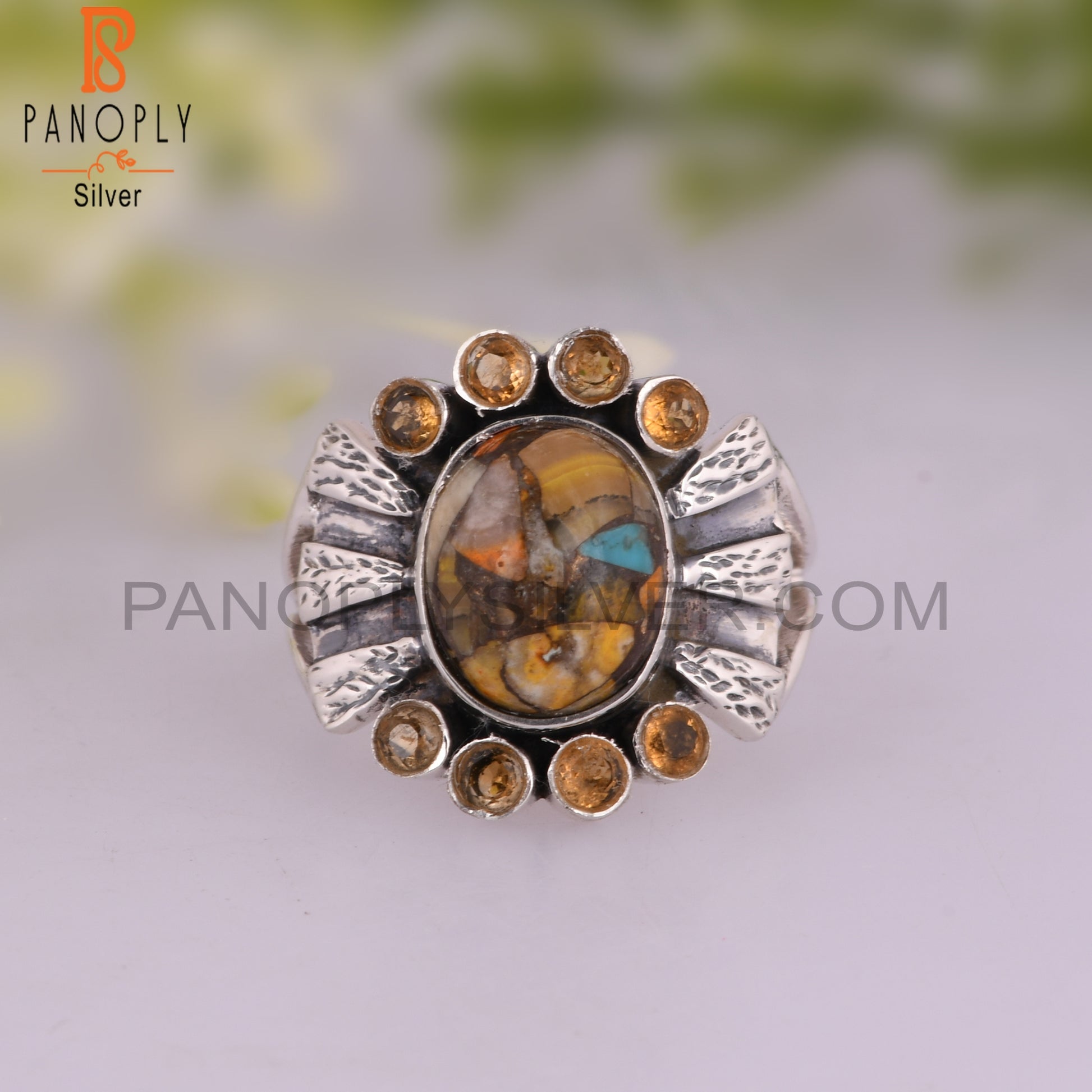 Mojave Copper Bumblebee Turquoise & Citrine 925 Silver Ring