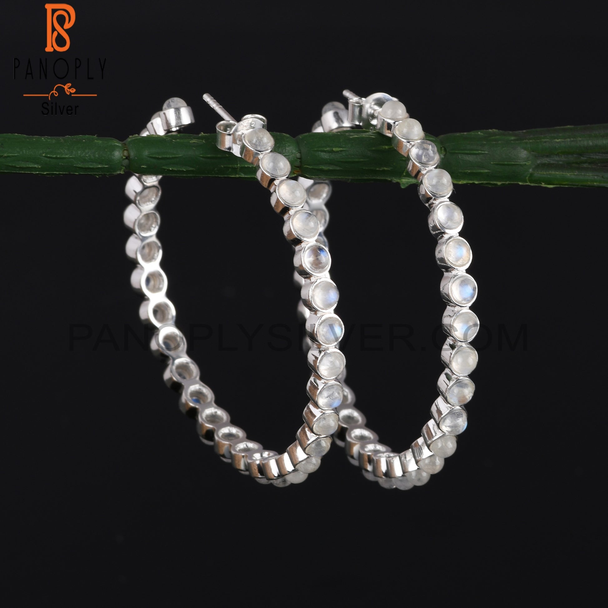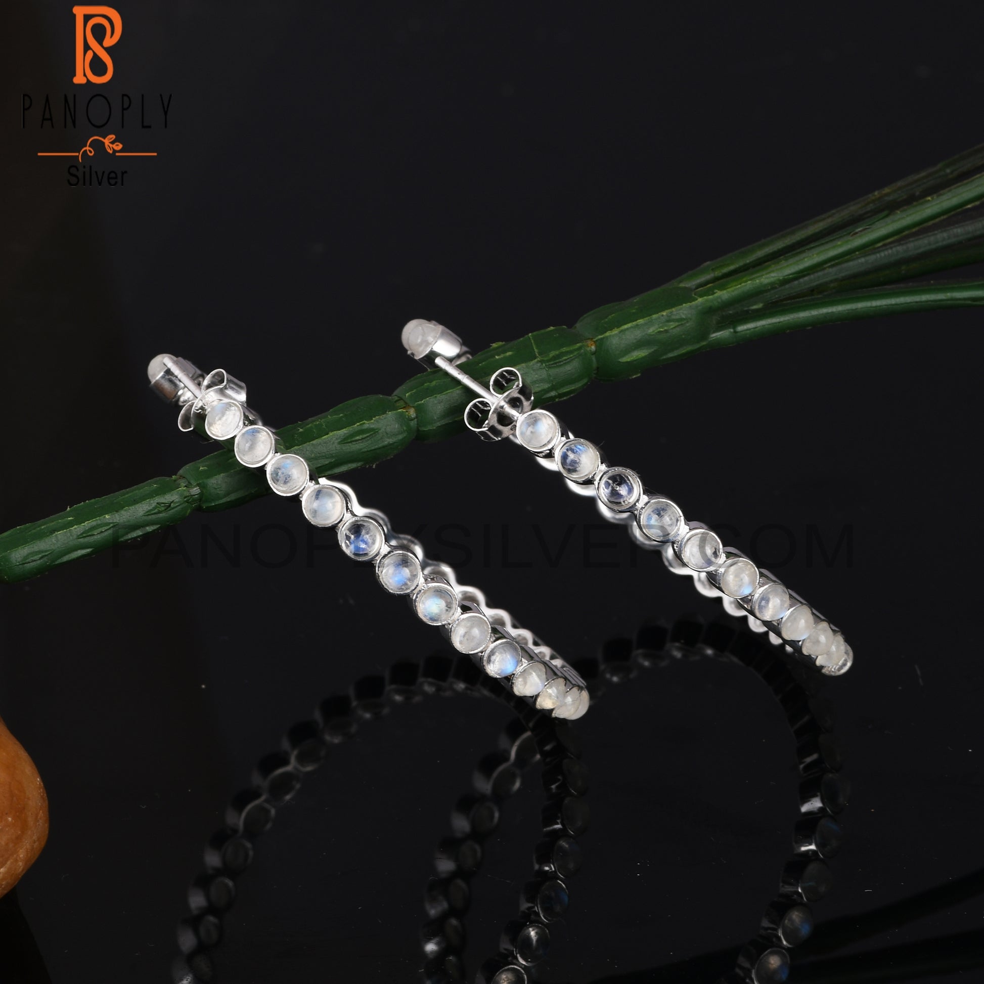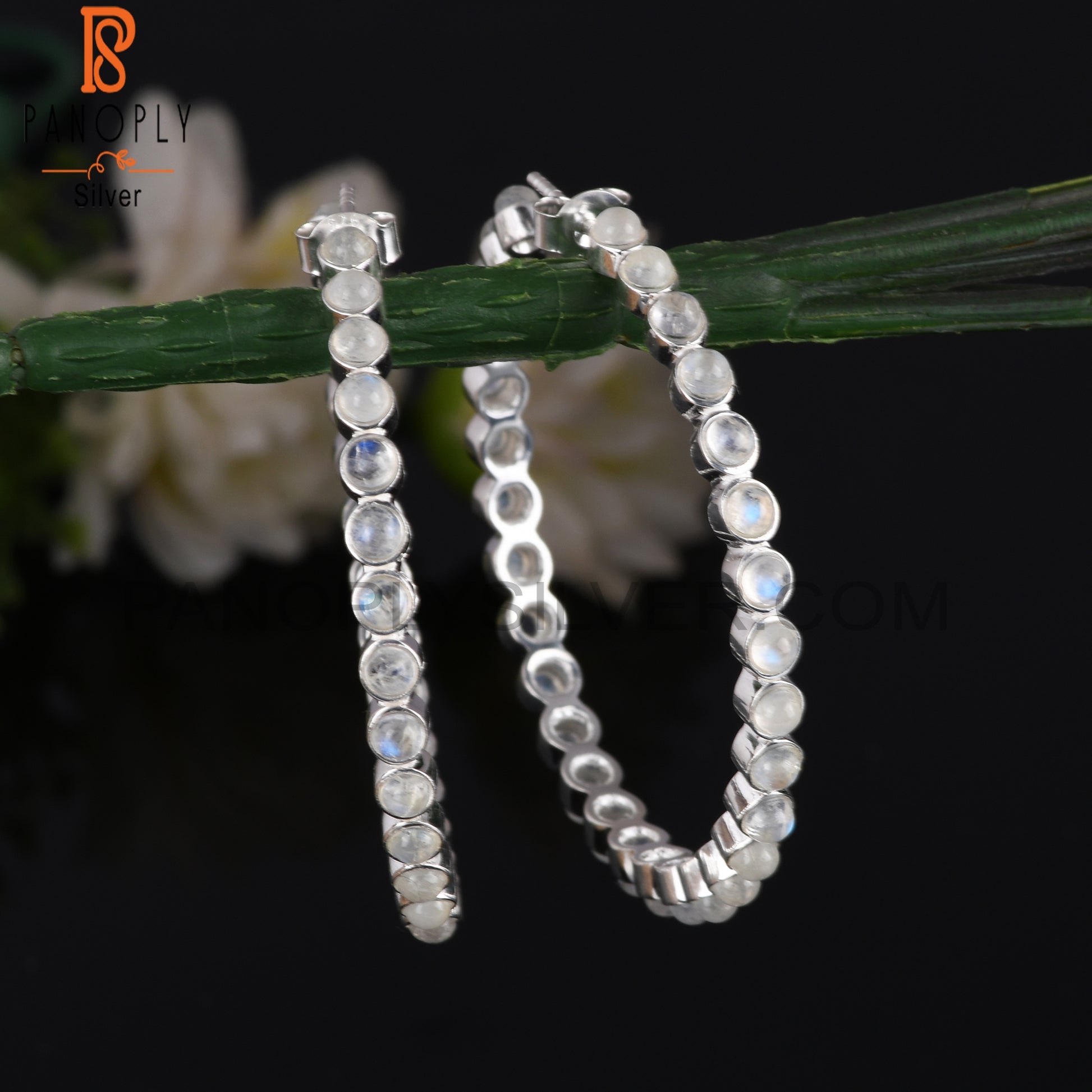 Rainbow Moon Stone Round Shape 925 Sterling Silver Earrings