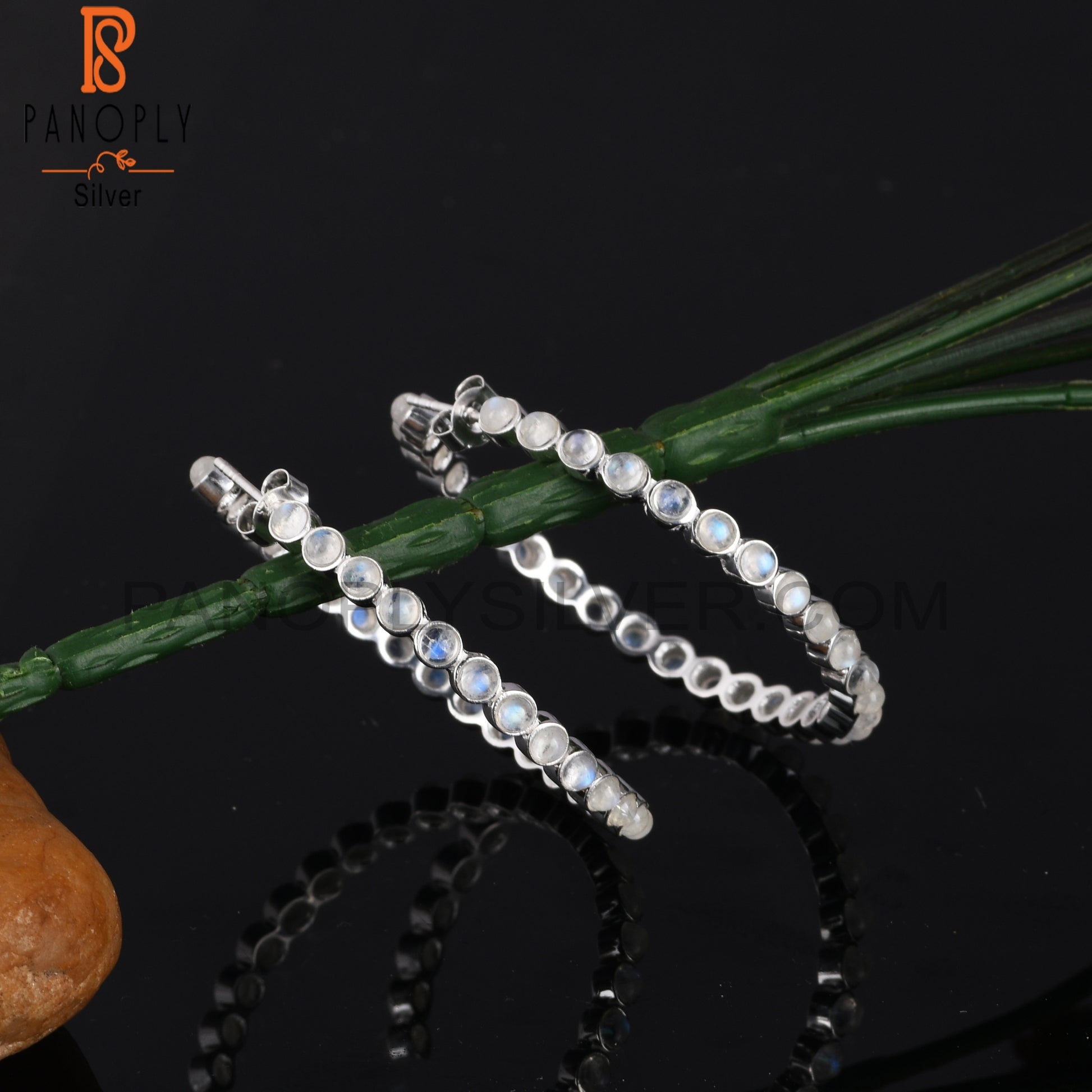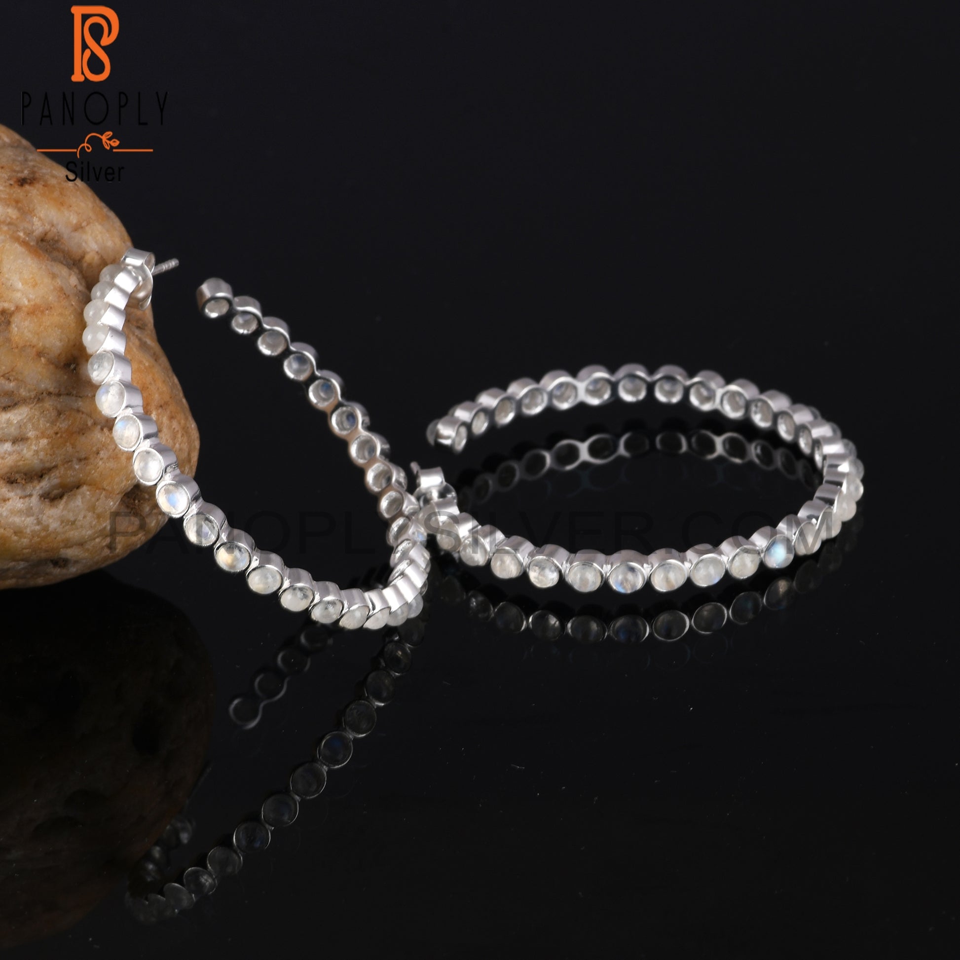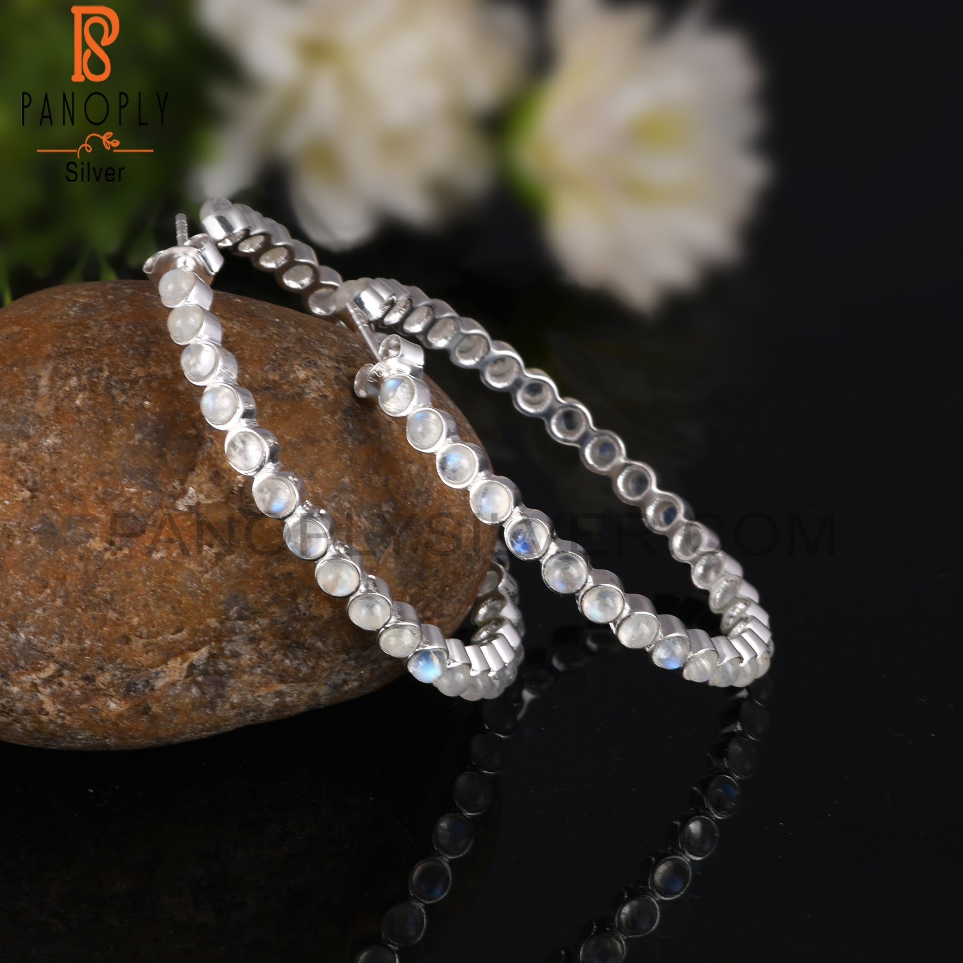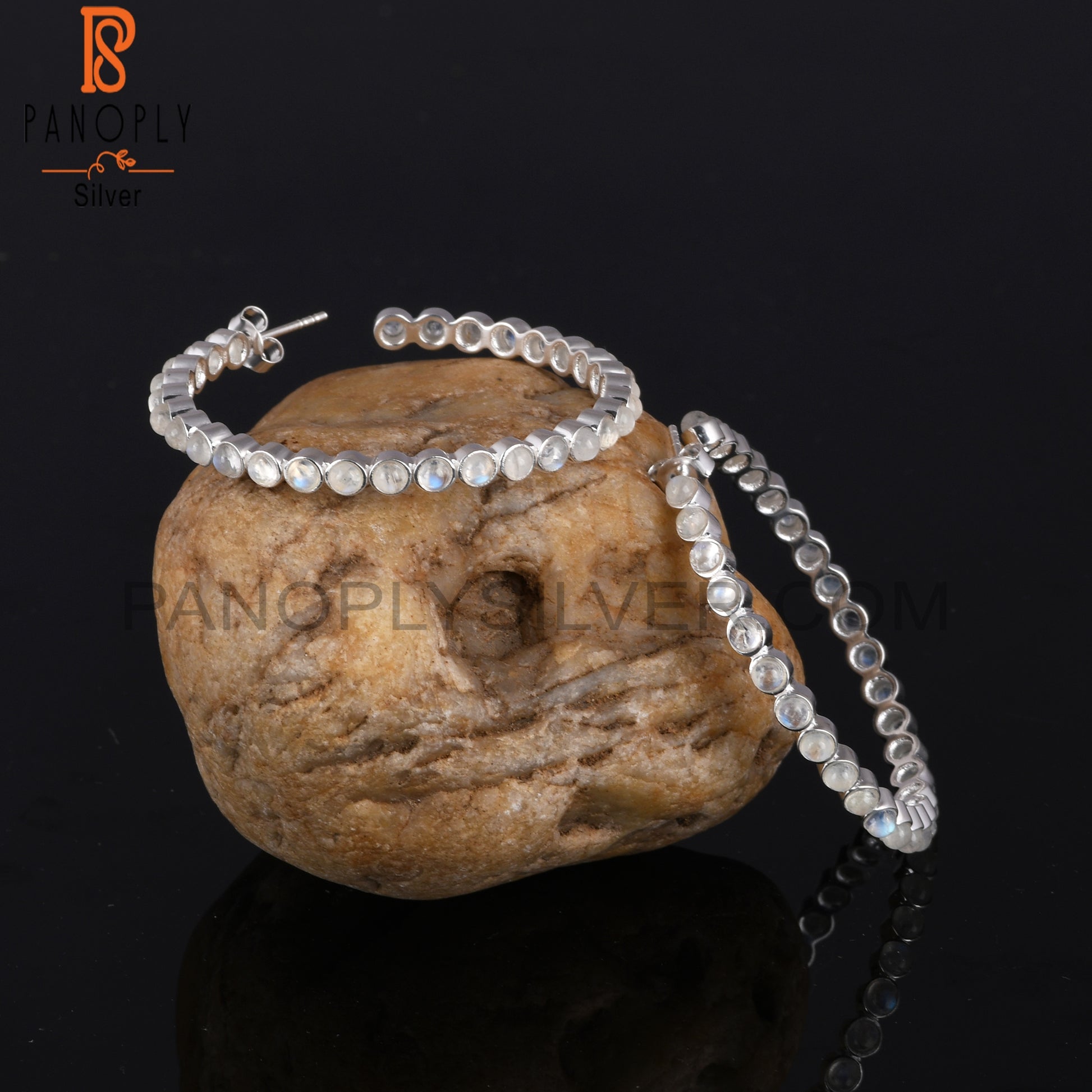 Rainbow Moon Stone Round Shape 925 Sterling Silver Earrings