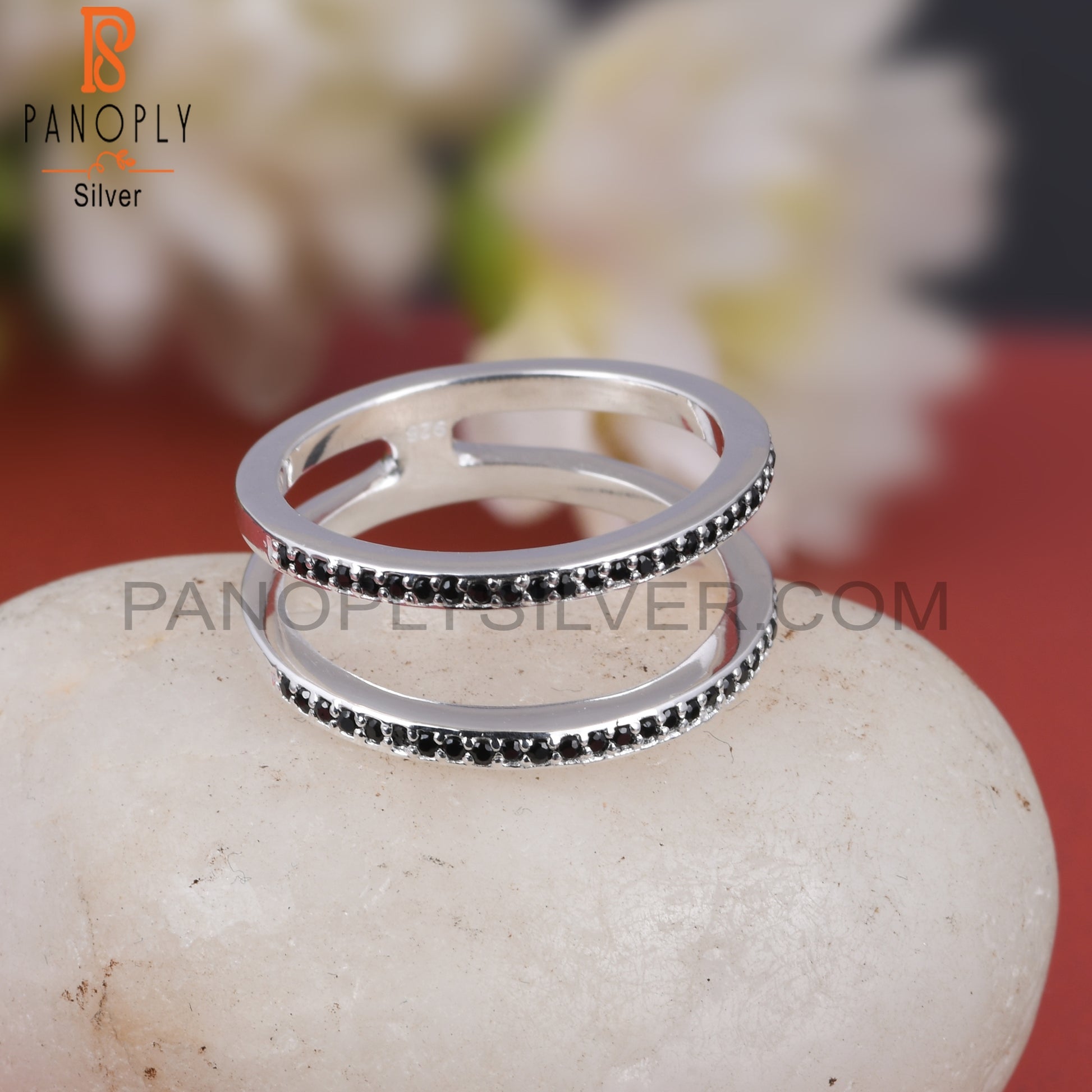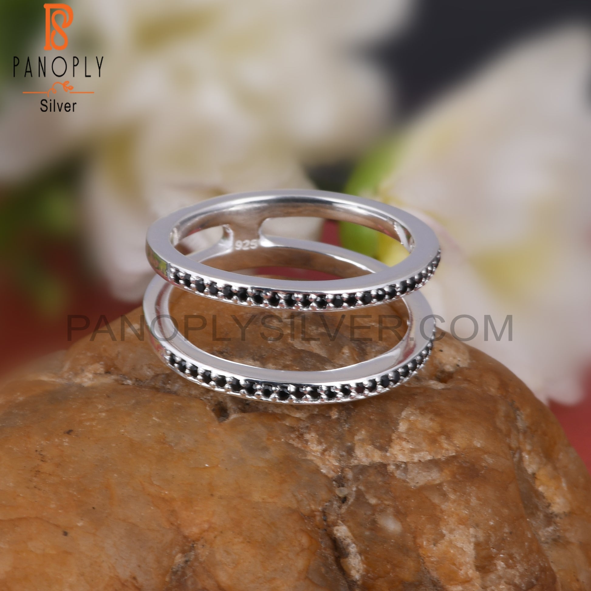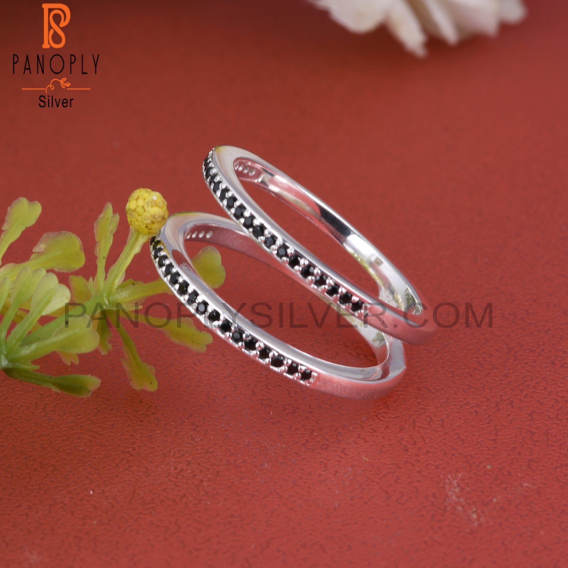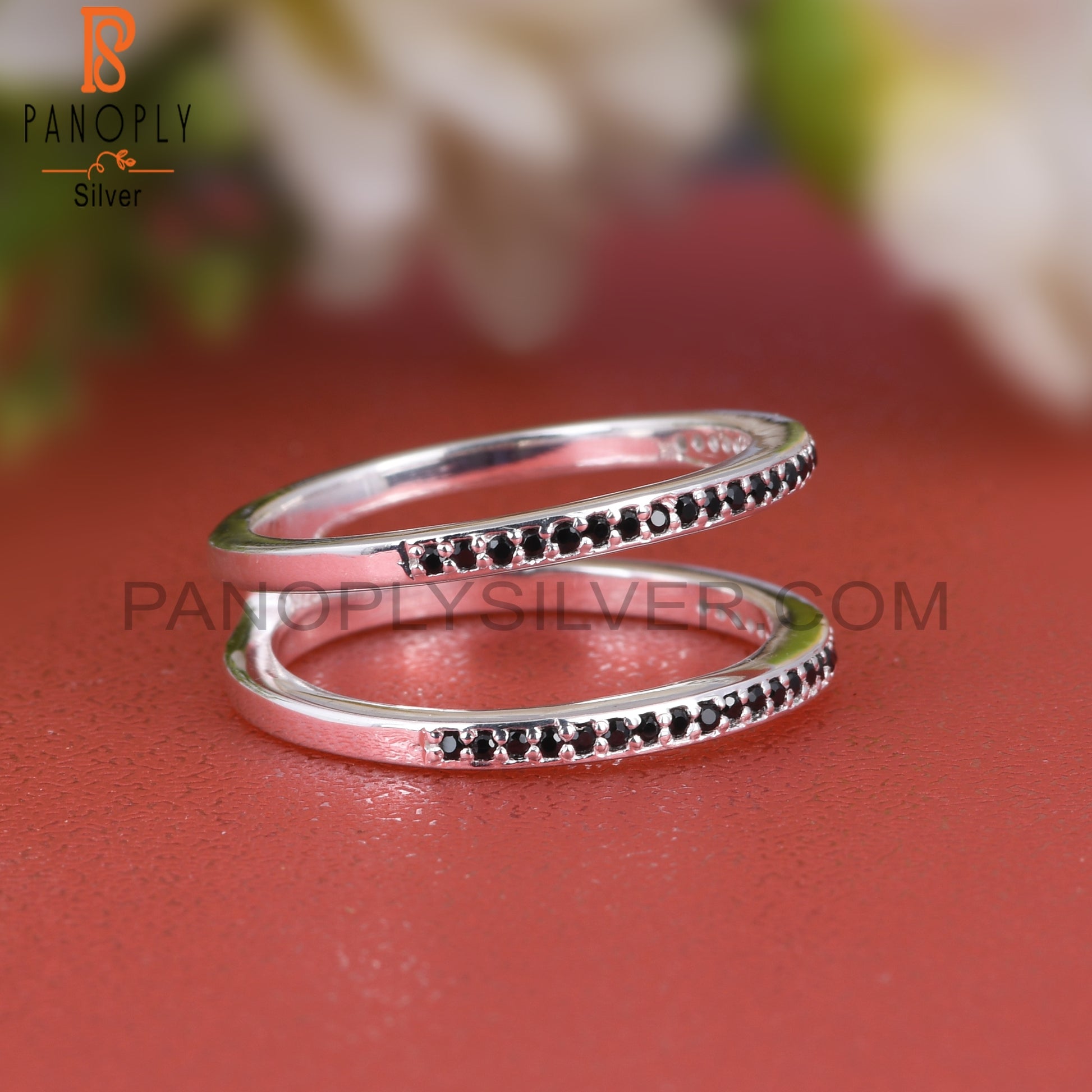Black Spinal Round Shape 925 Sterling Silver Ring