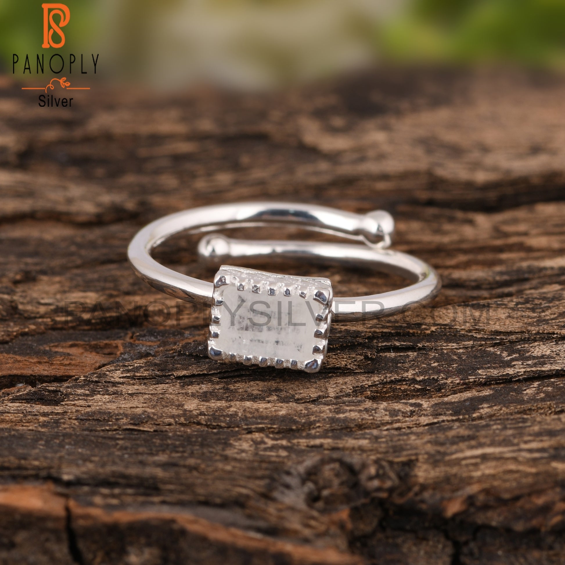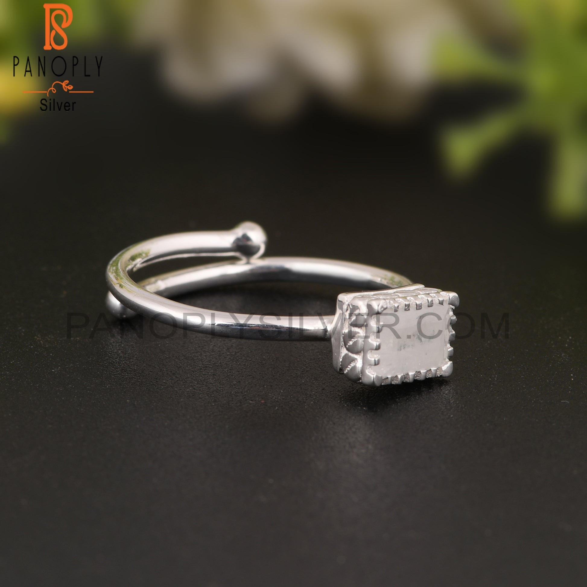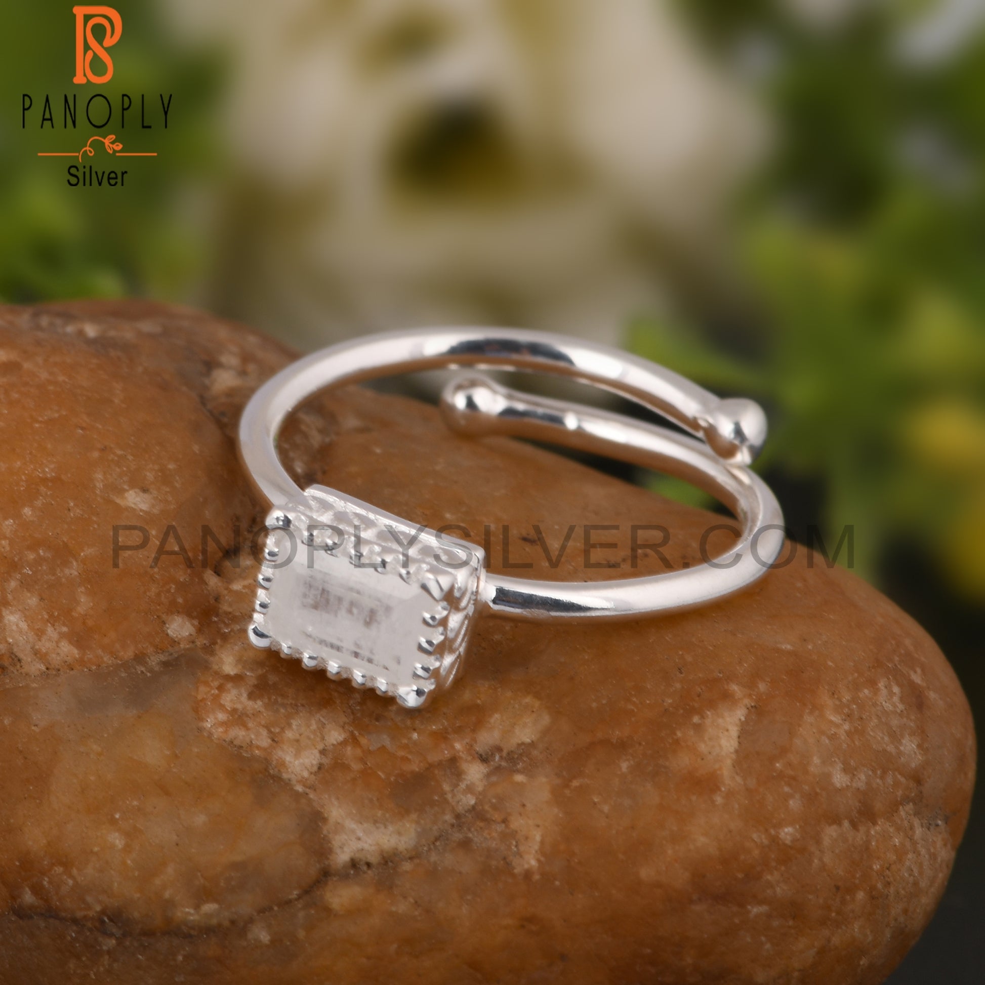 Rainbow Moonstone Beguette Shape 925 Sterling Silver Ring