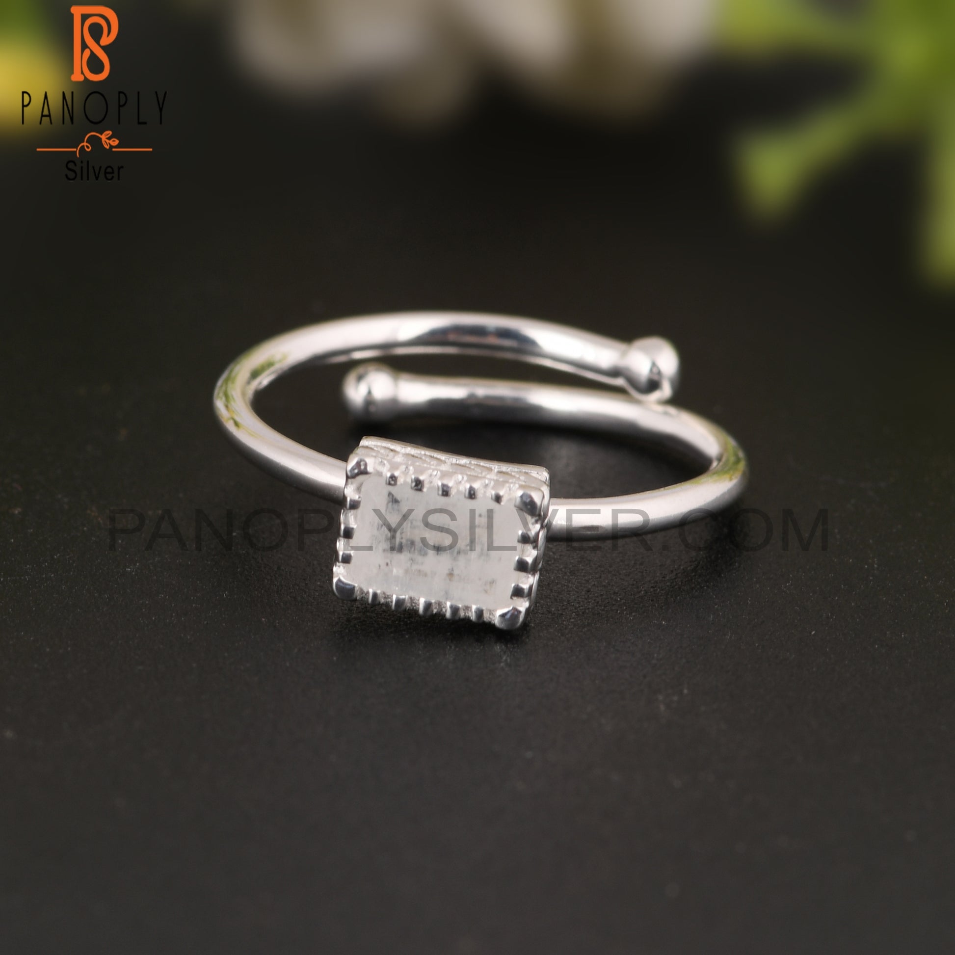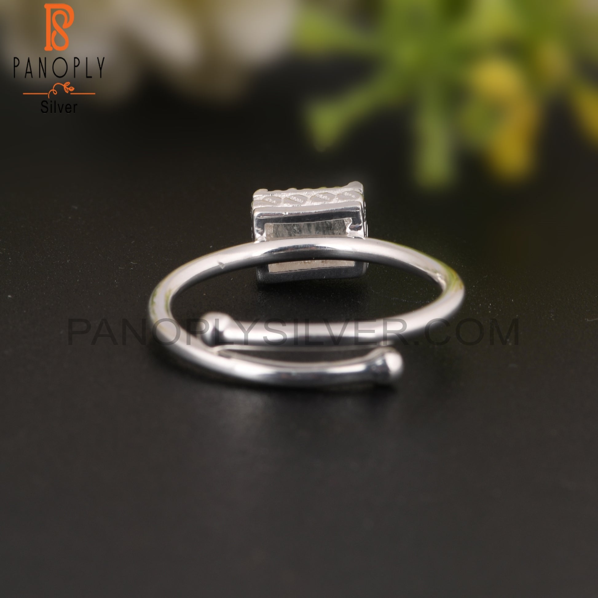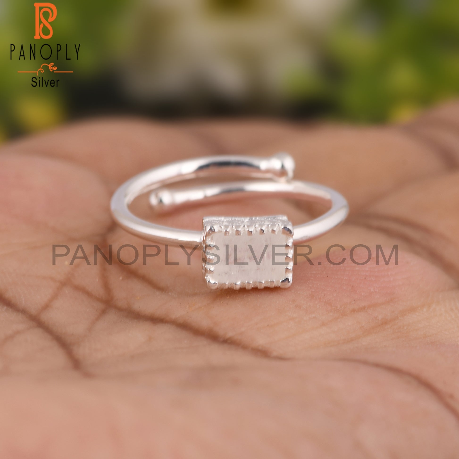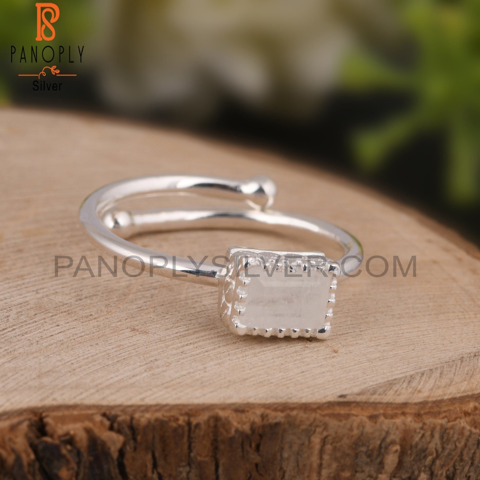 Rainbow Moonstone Beguette Shape 925 Sterling Silver Ring