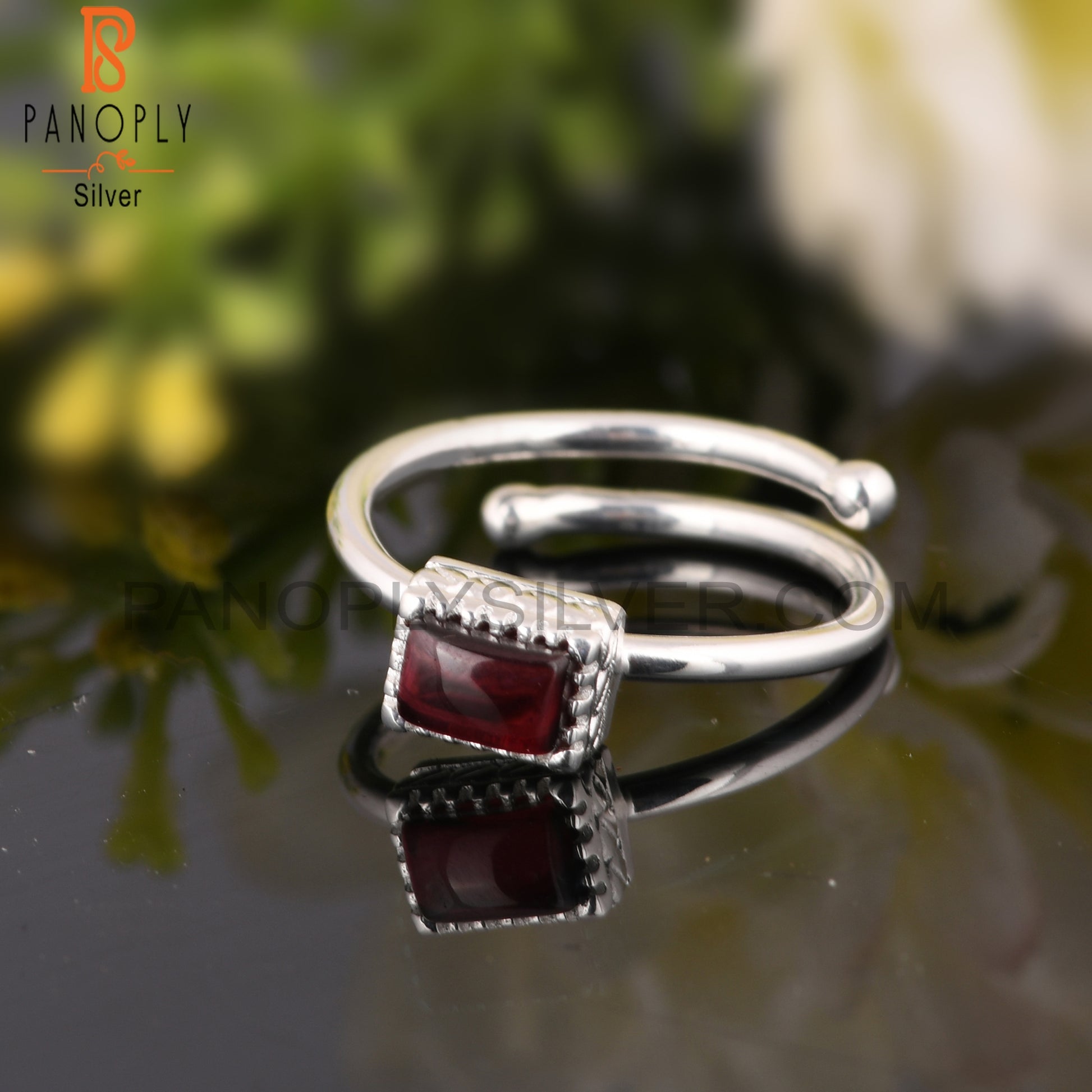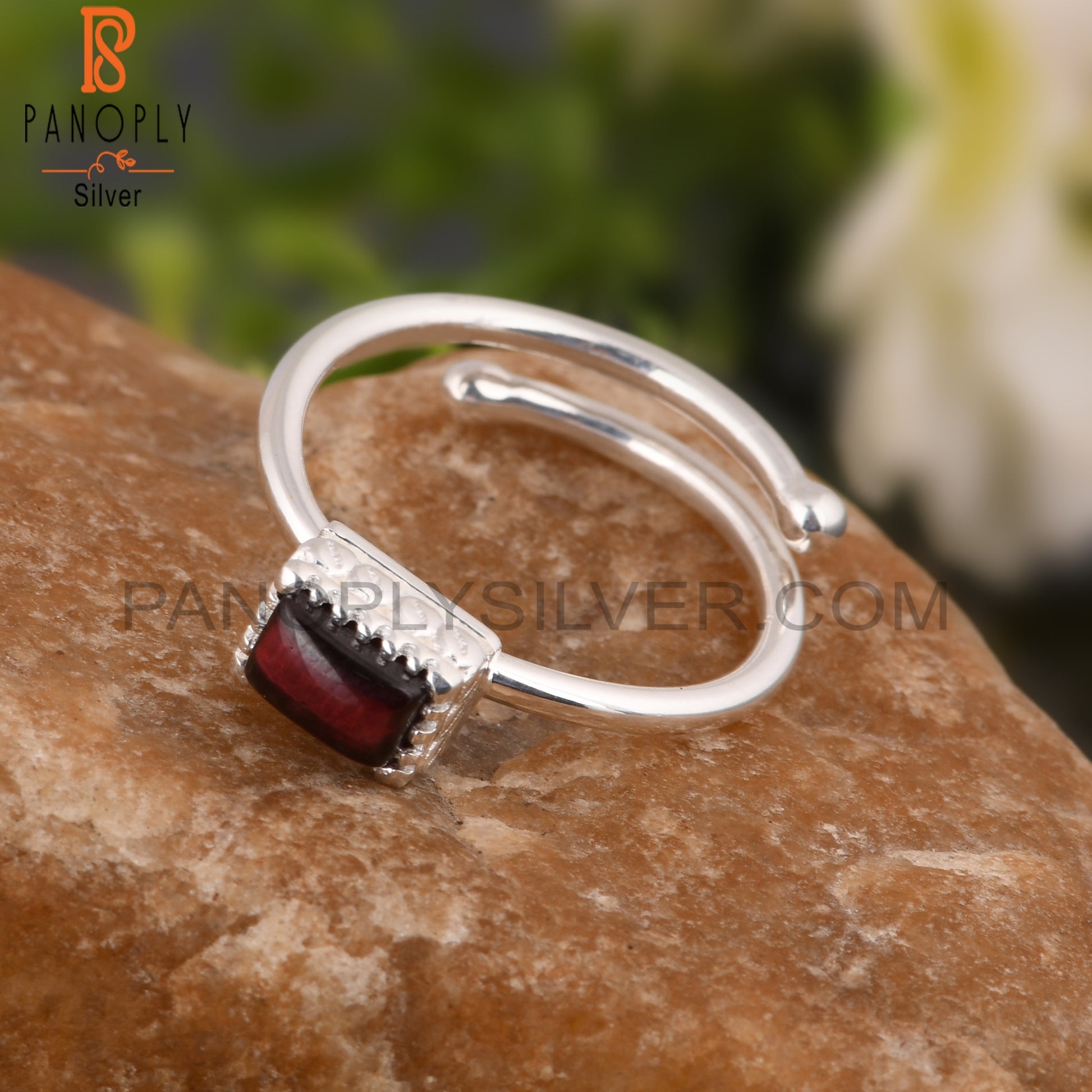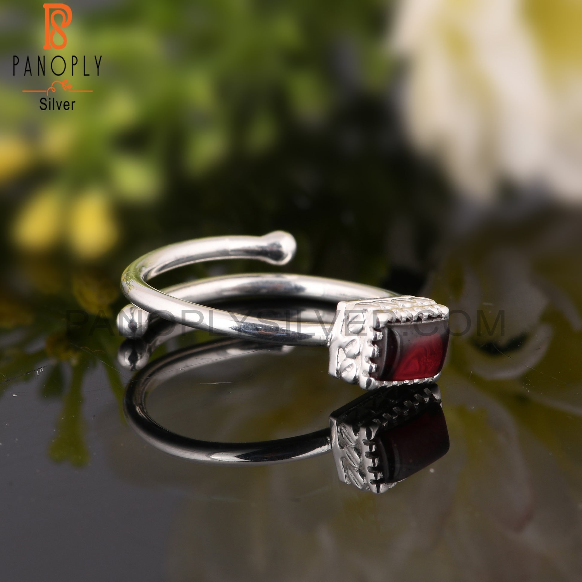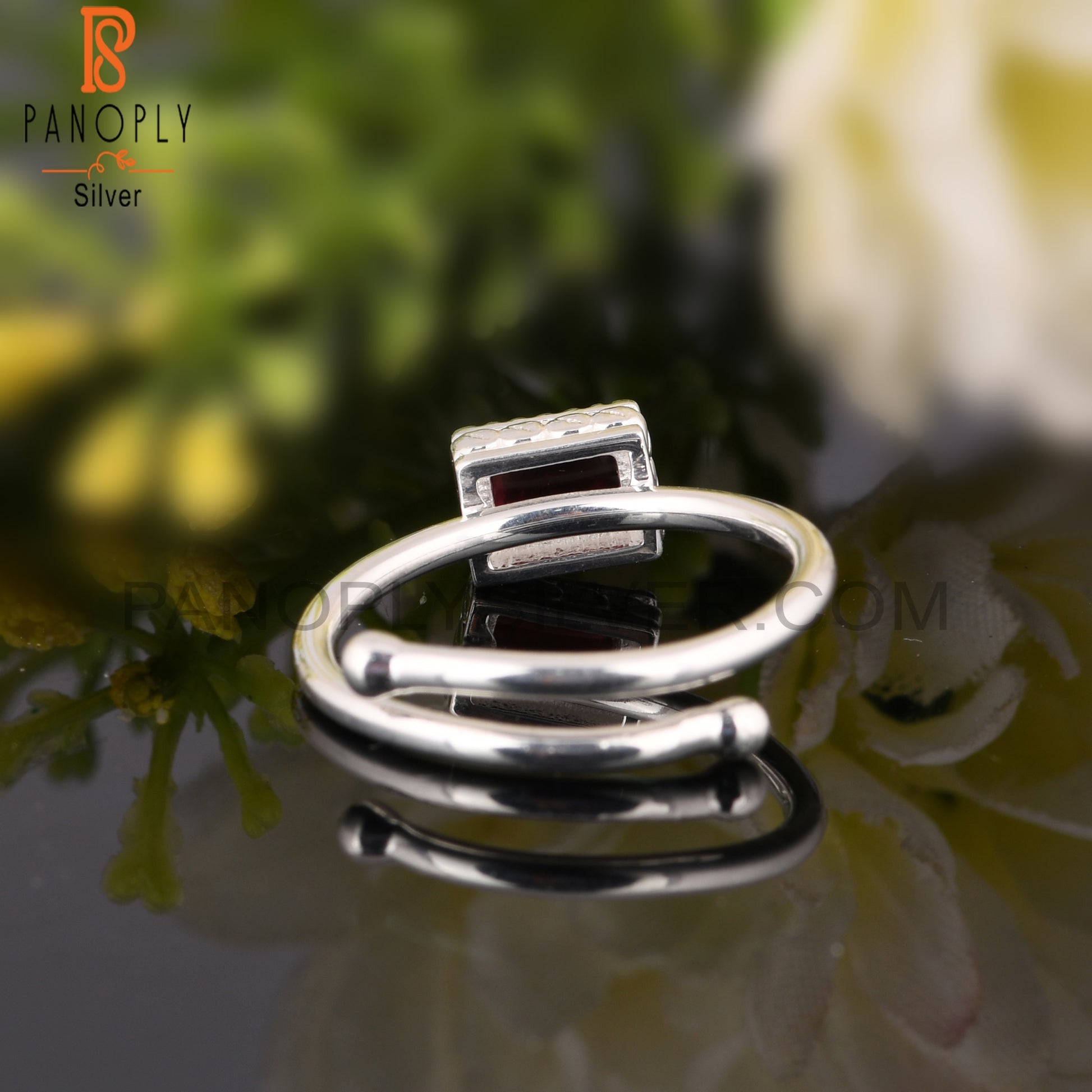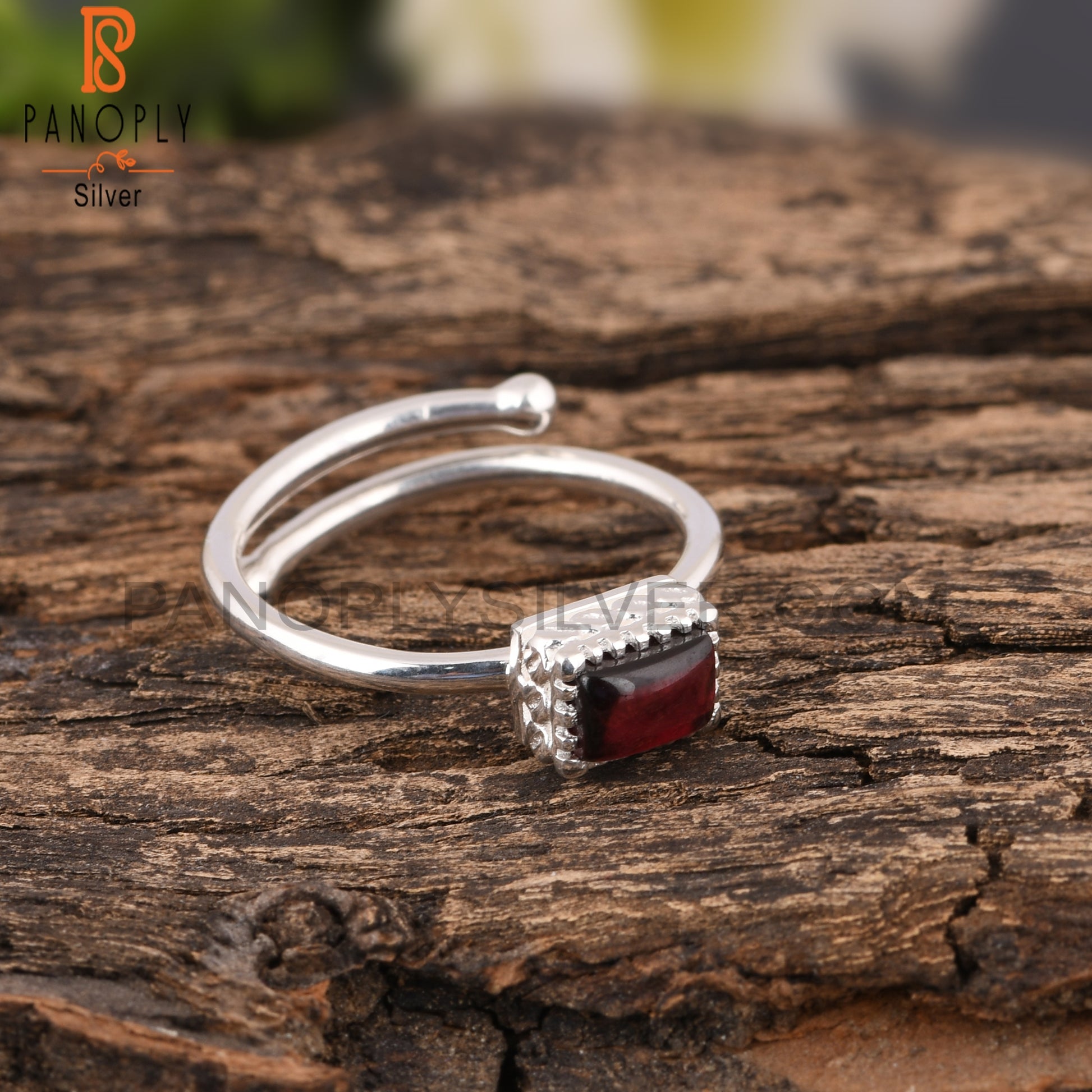 Garnet Beguette Shape 925 Sterling Silver Ring