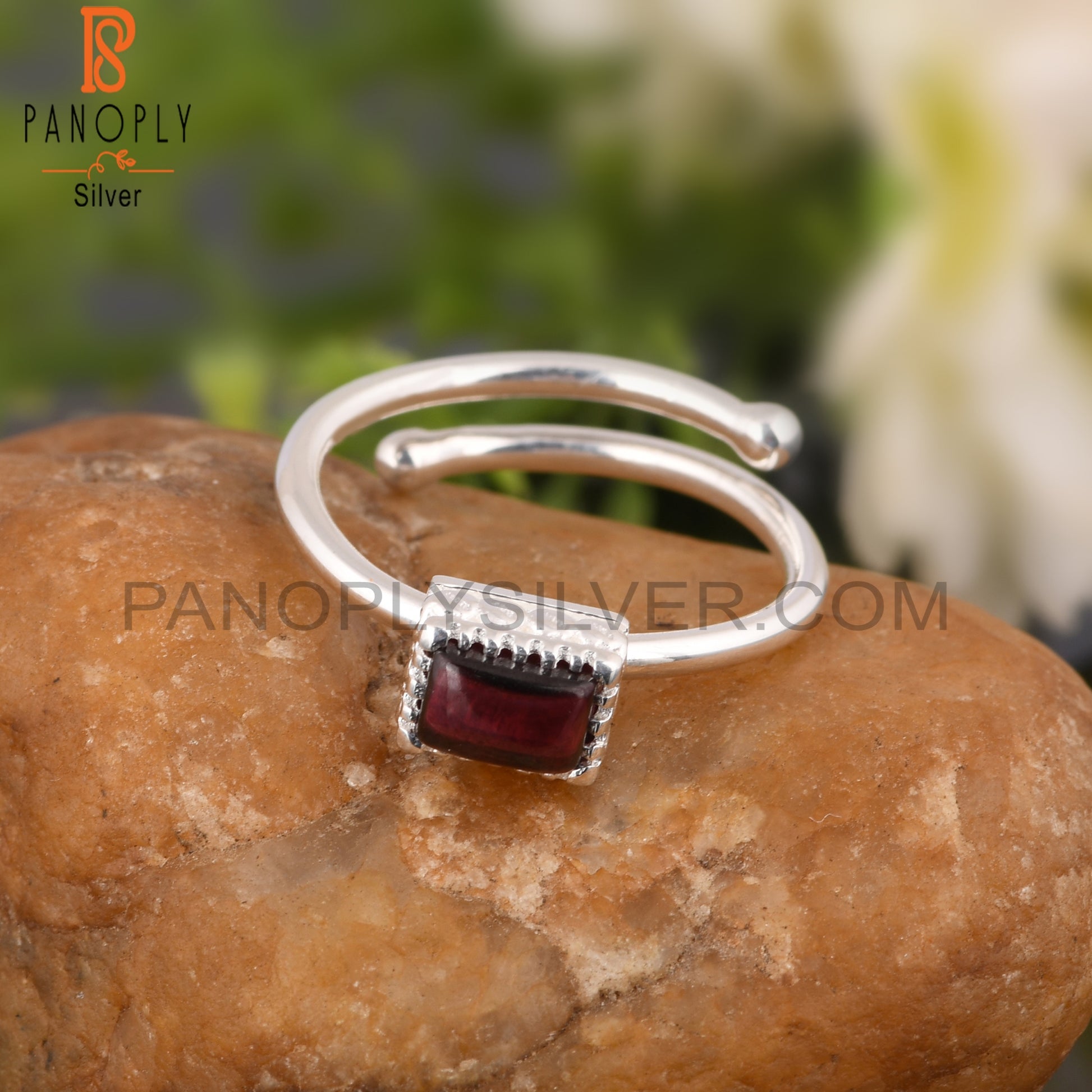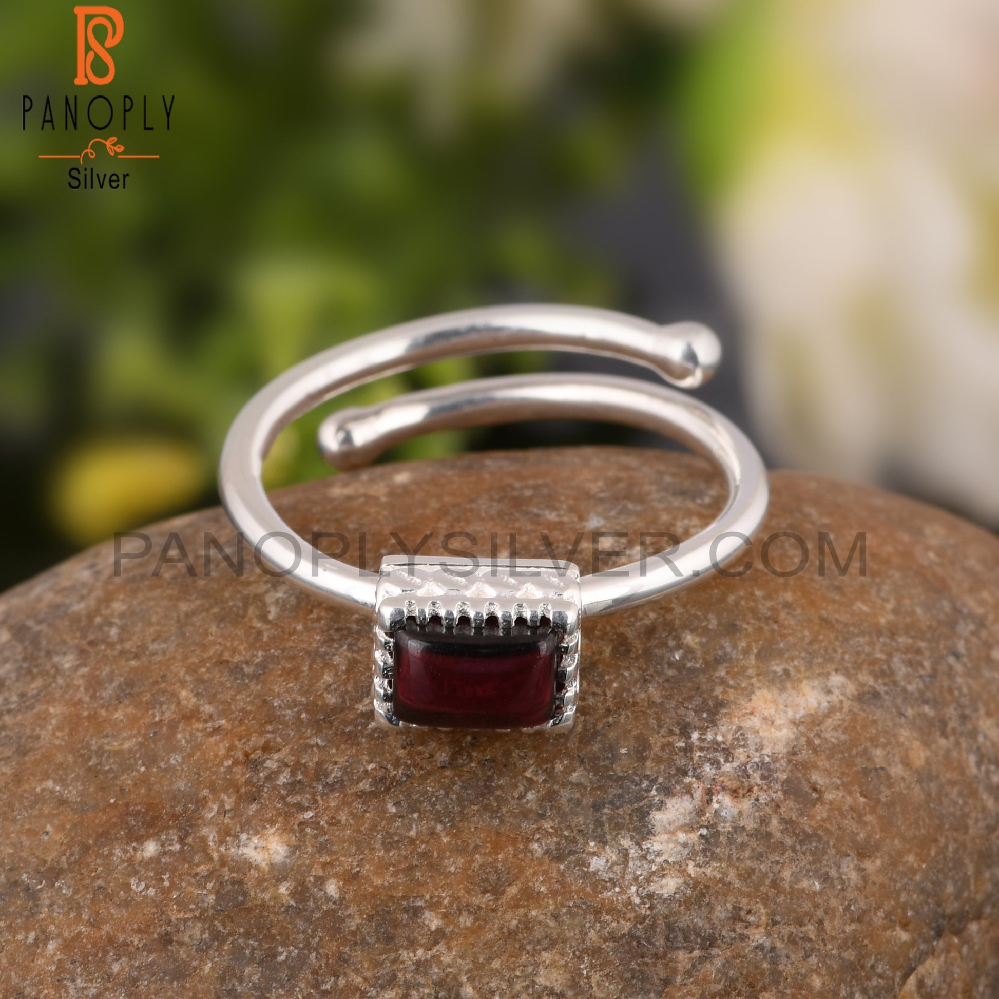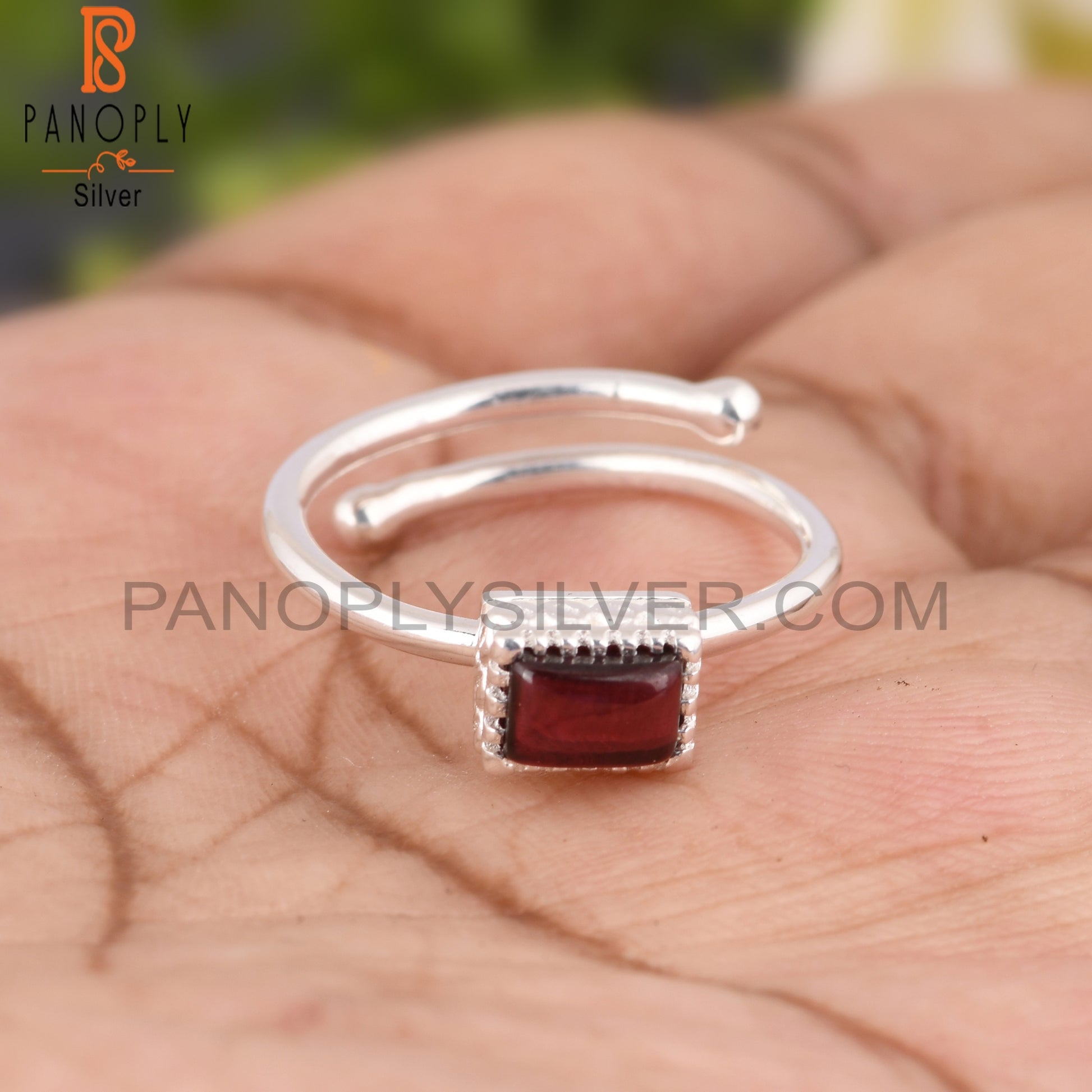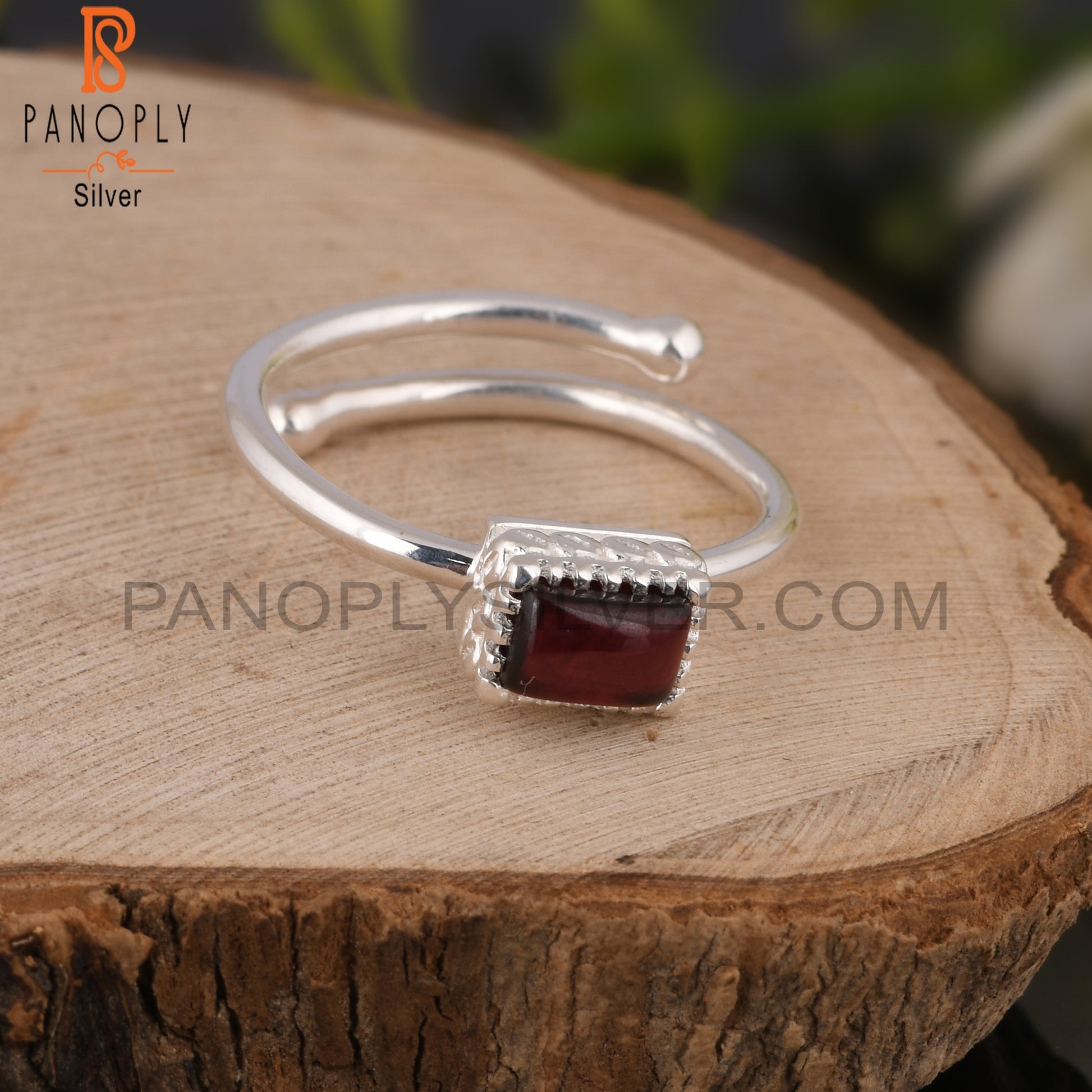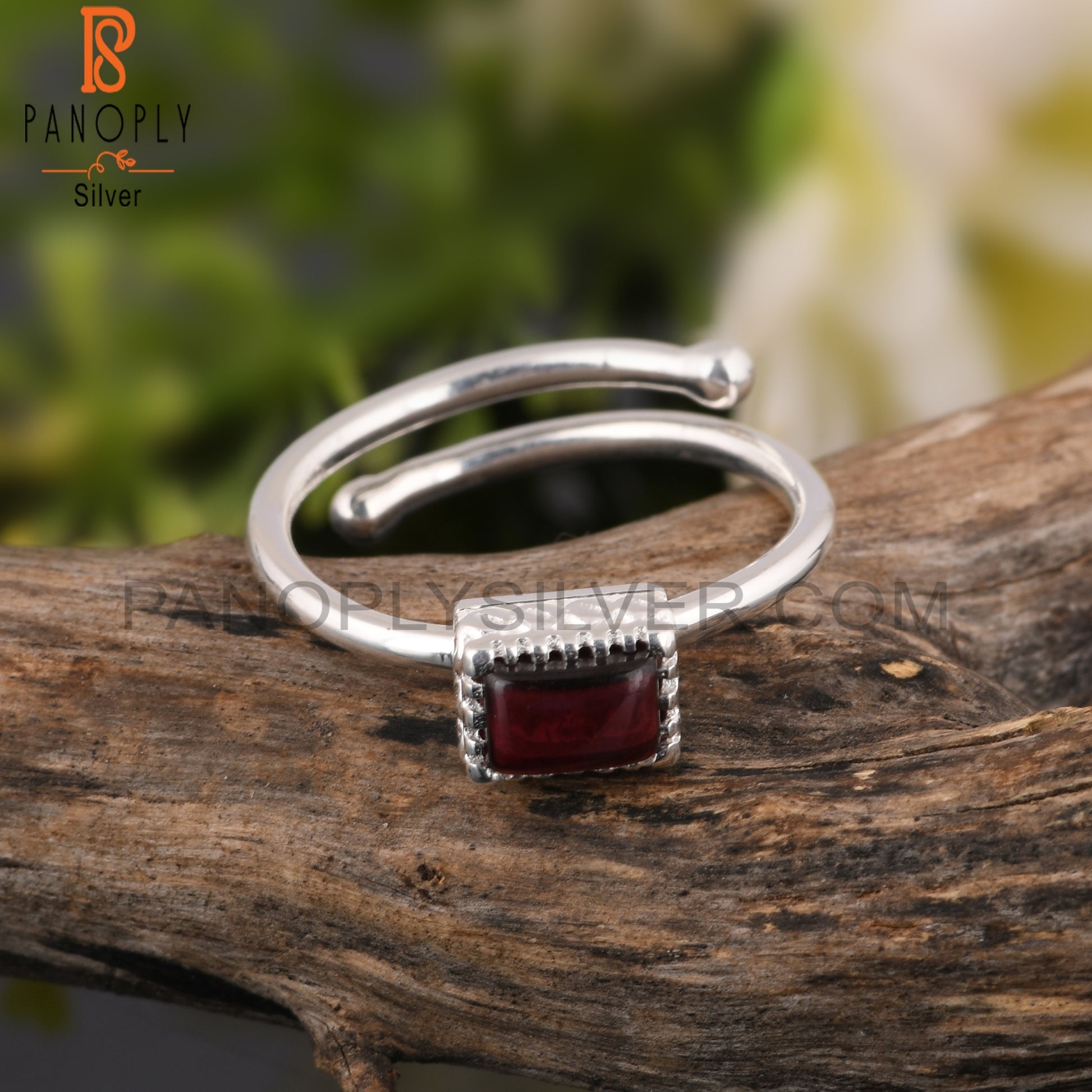 Garnet Beguette Shape 925 Sterling Silver Ring