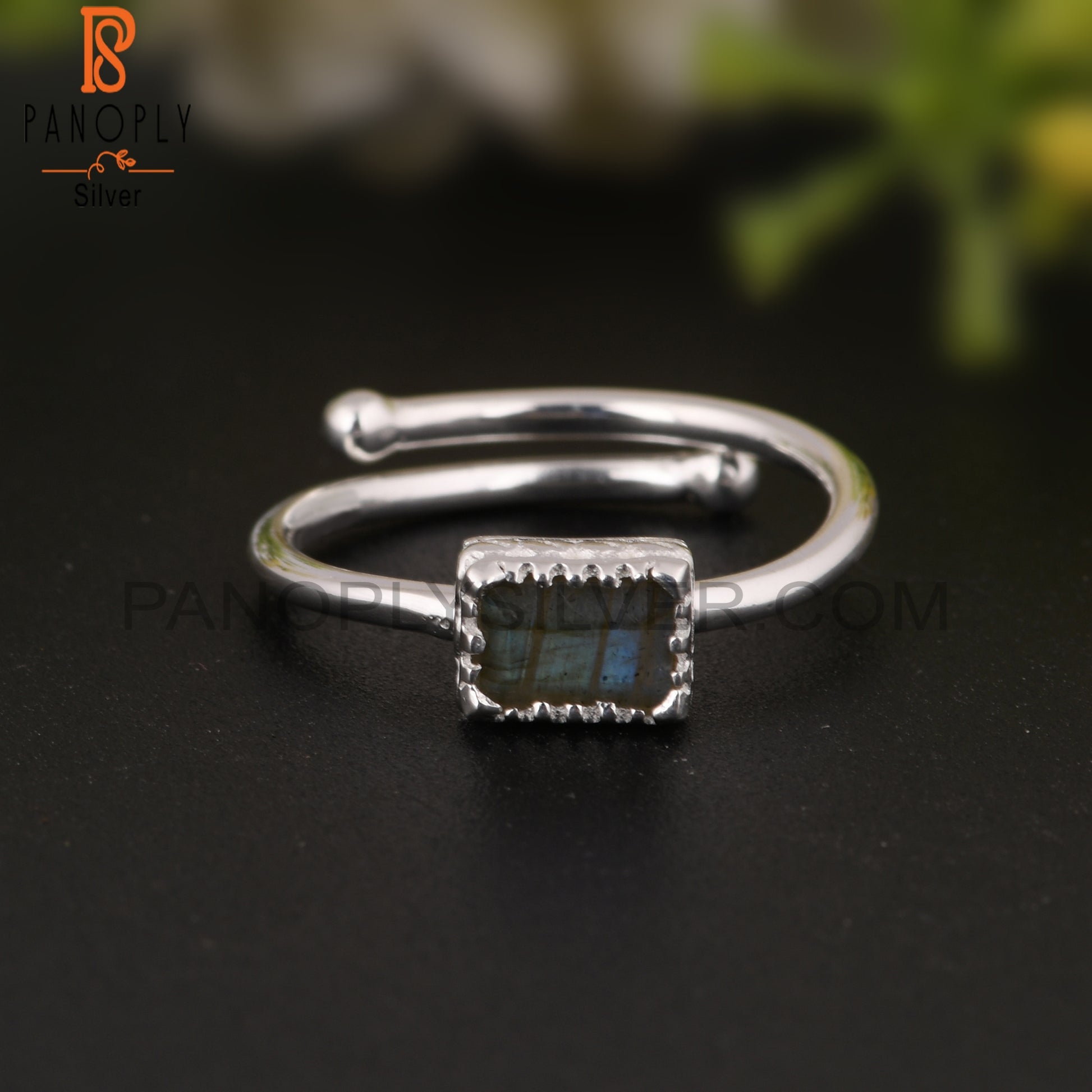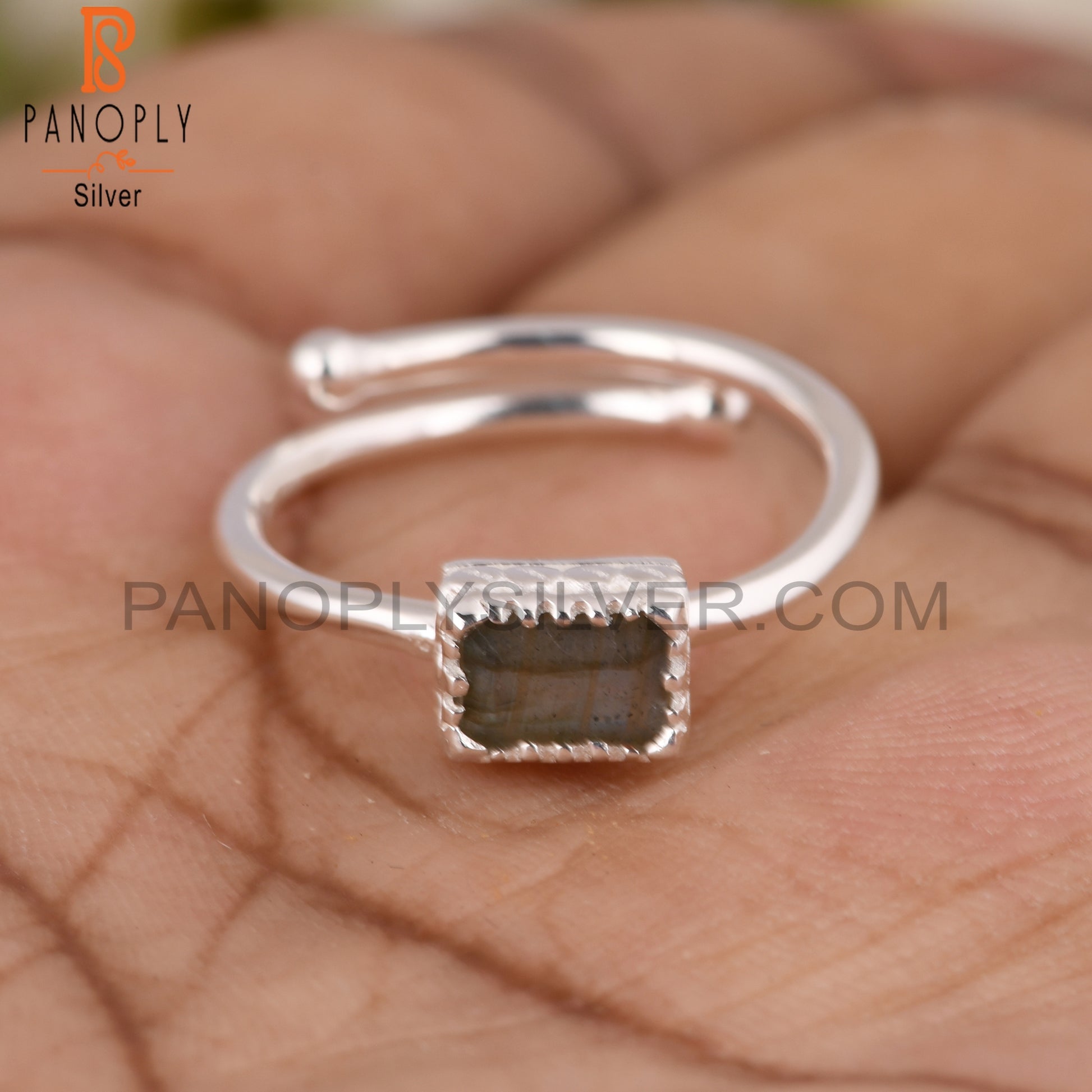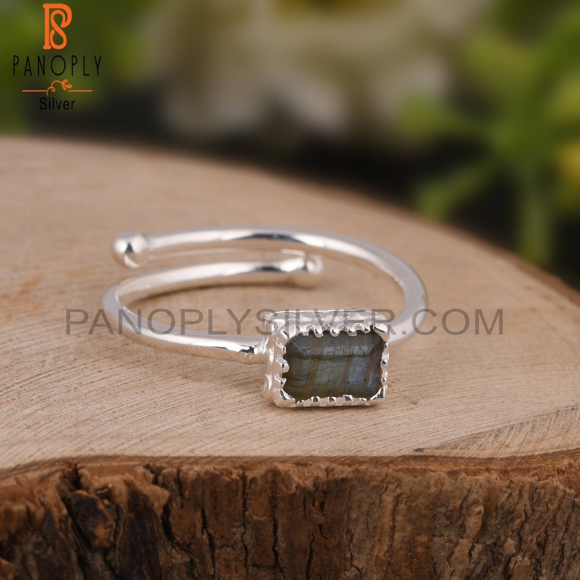 Labradorite Beguette Shape 925 Sterling Silver Ring