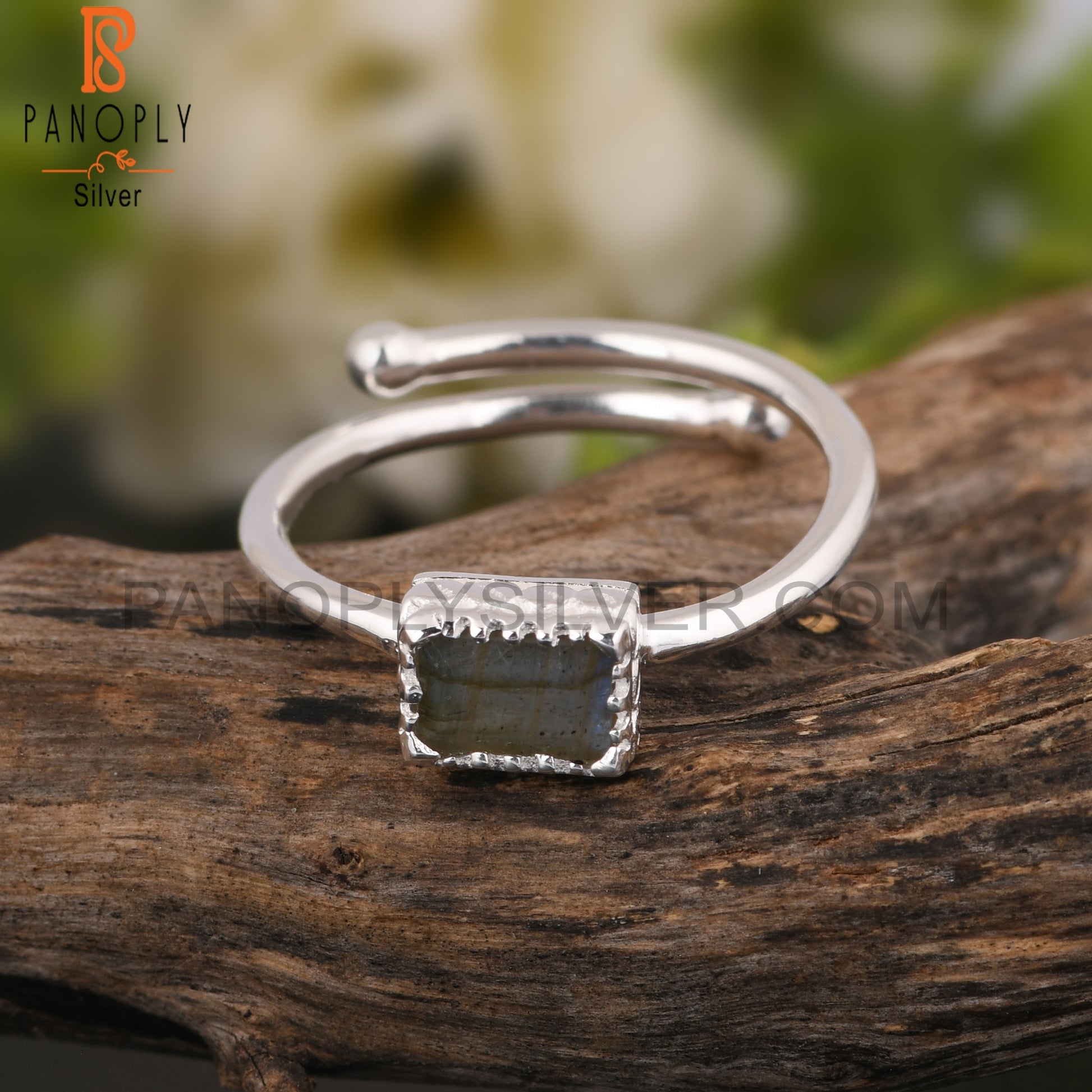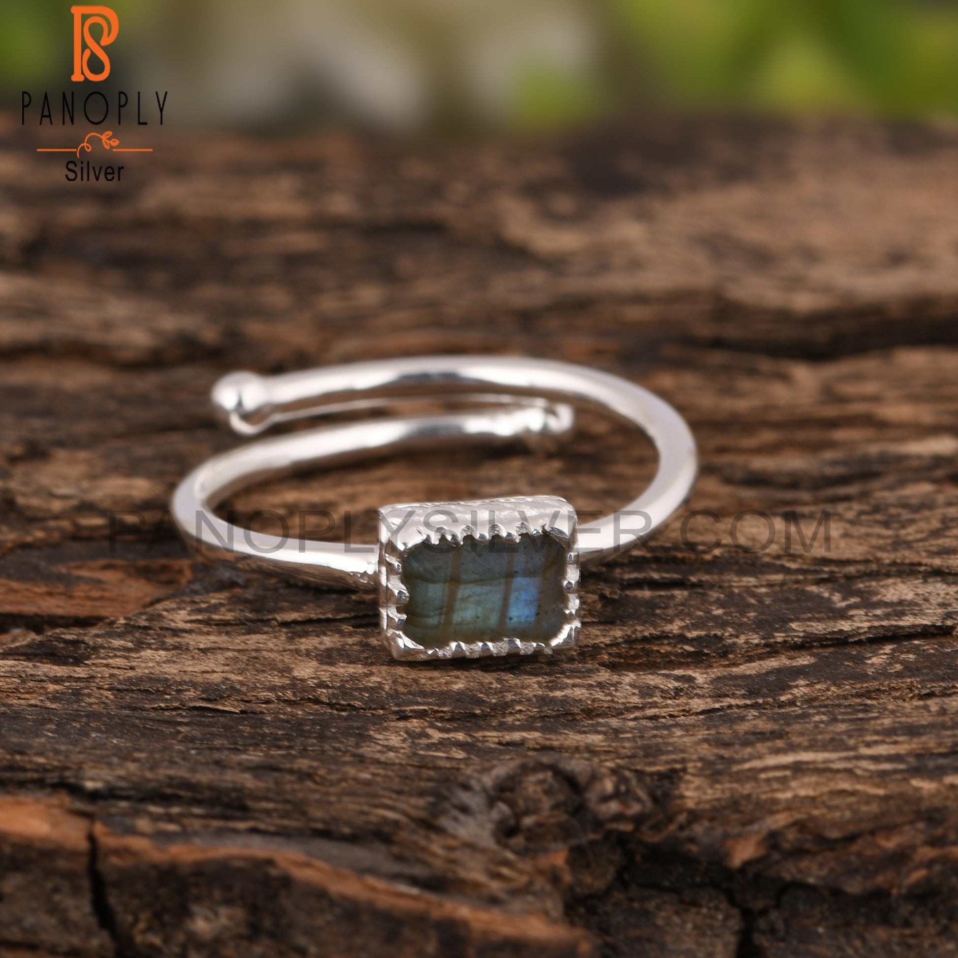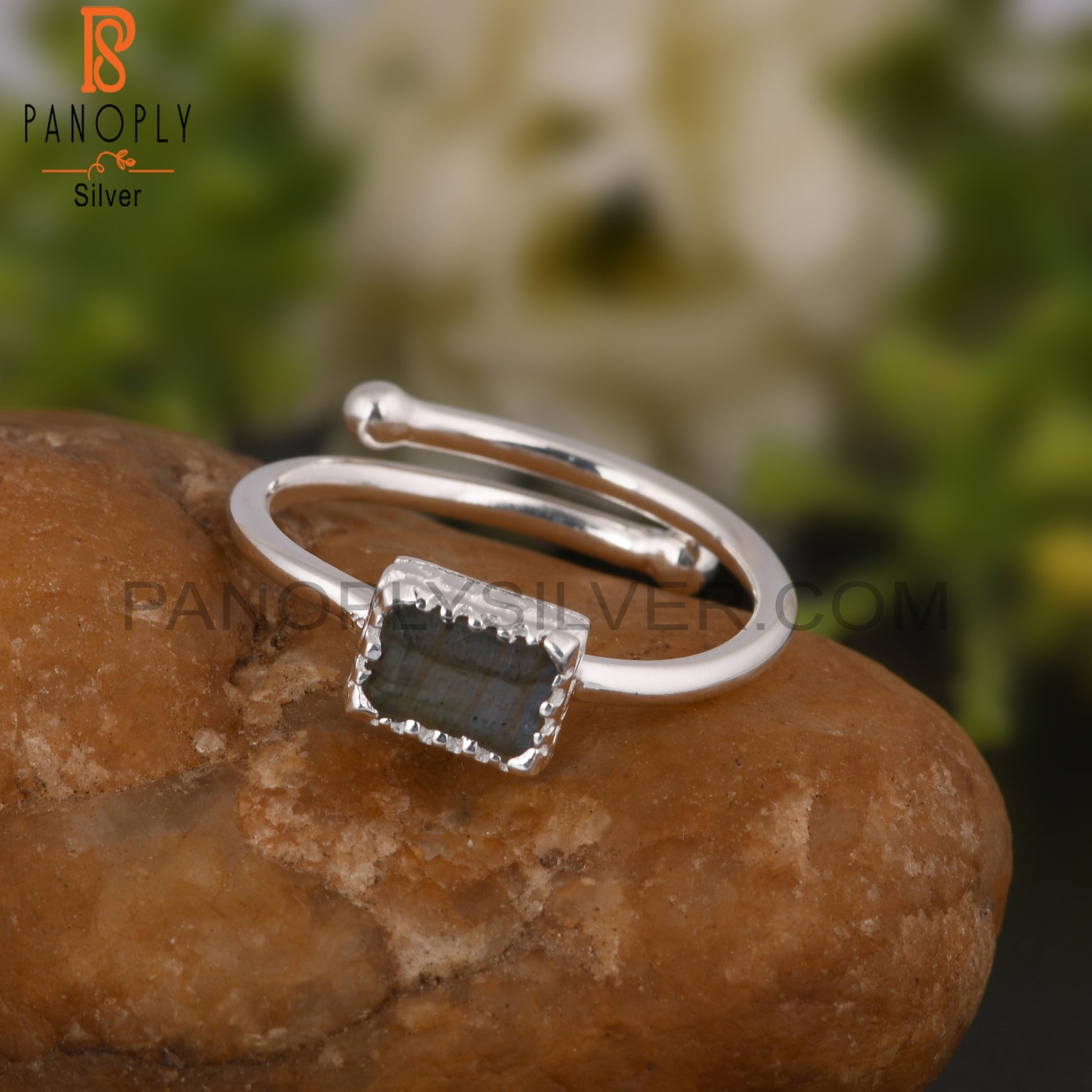Labradorite Beguette Shape 925 Sterling Silver Ring