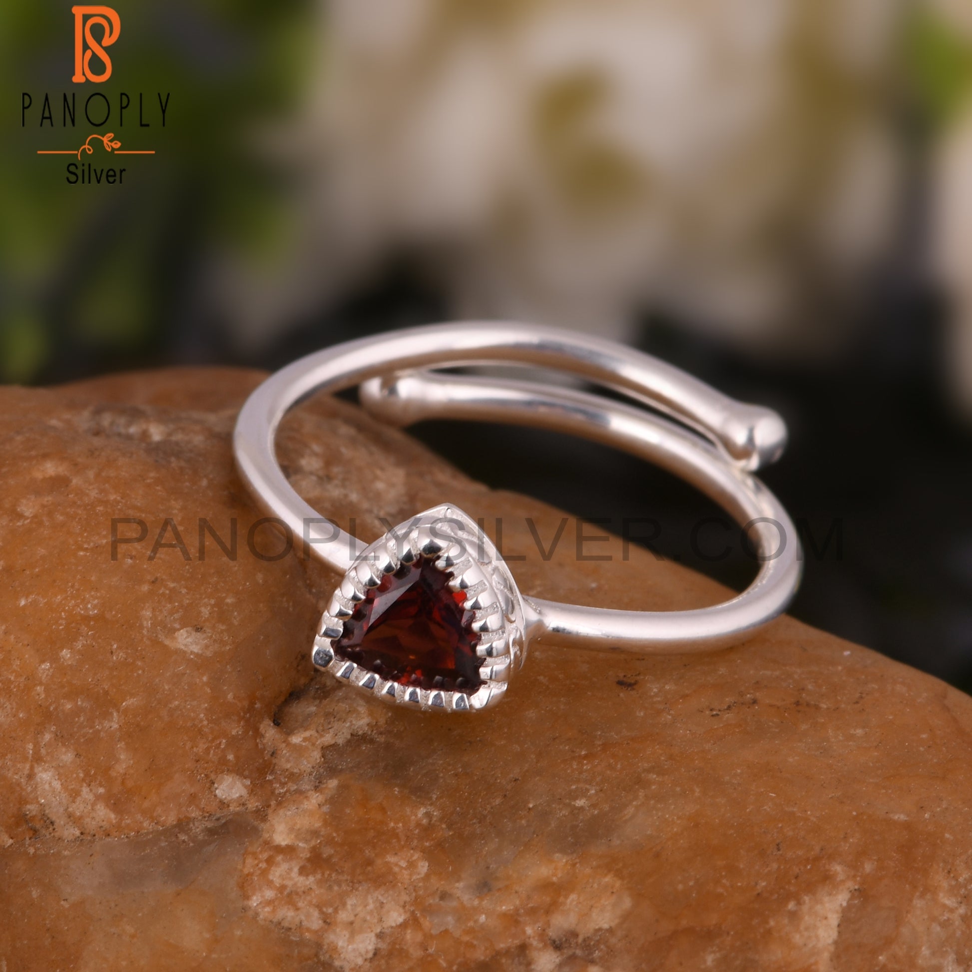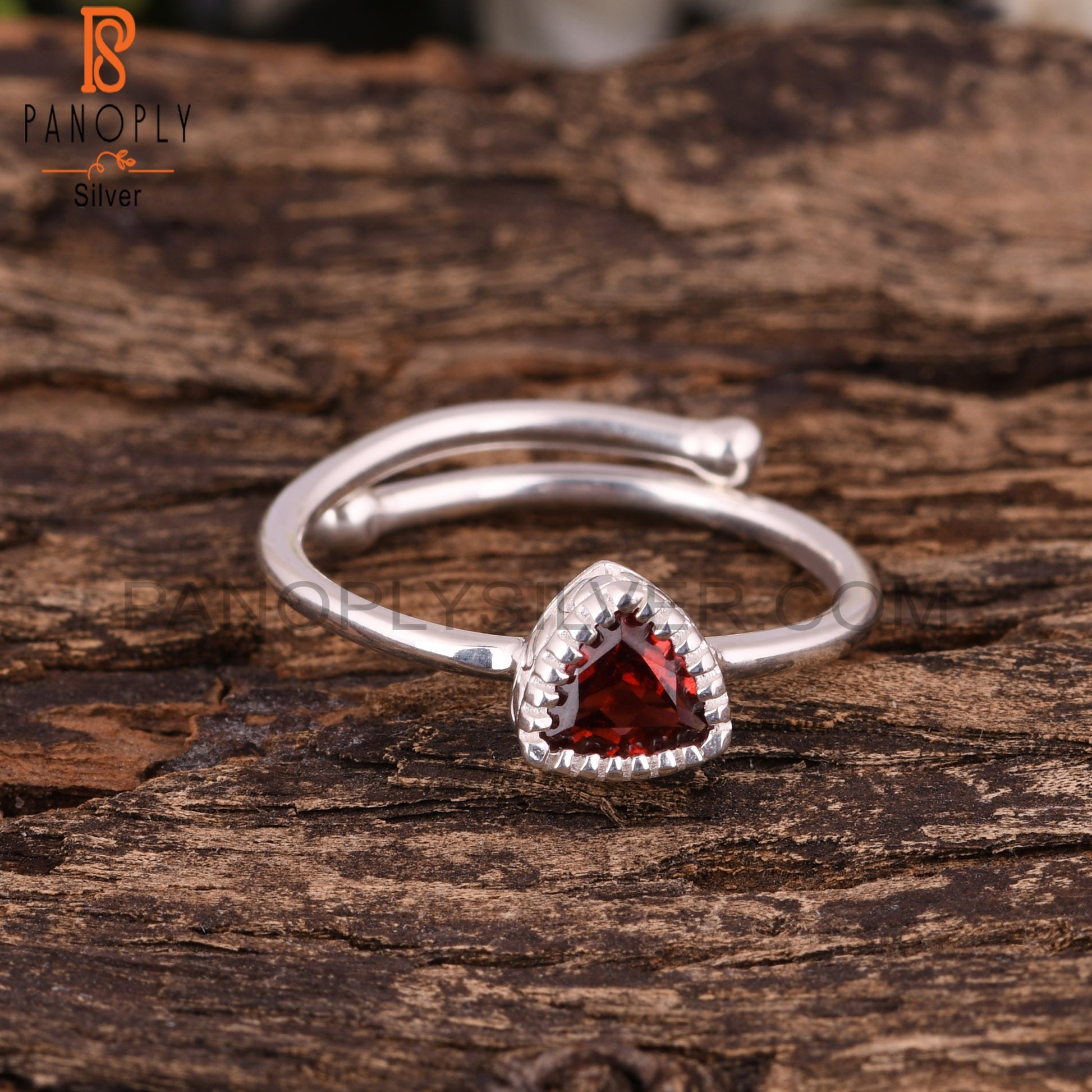 Garnet Trillion Shape 925 Sterling Silver Ring