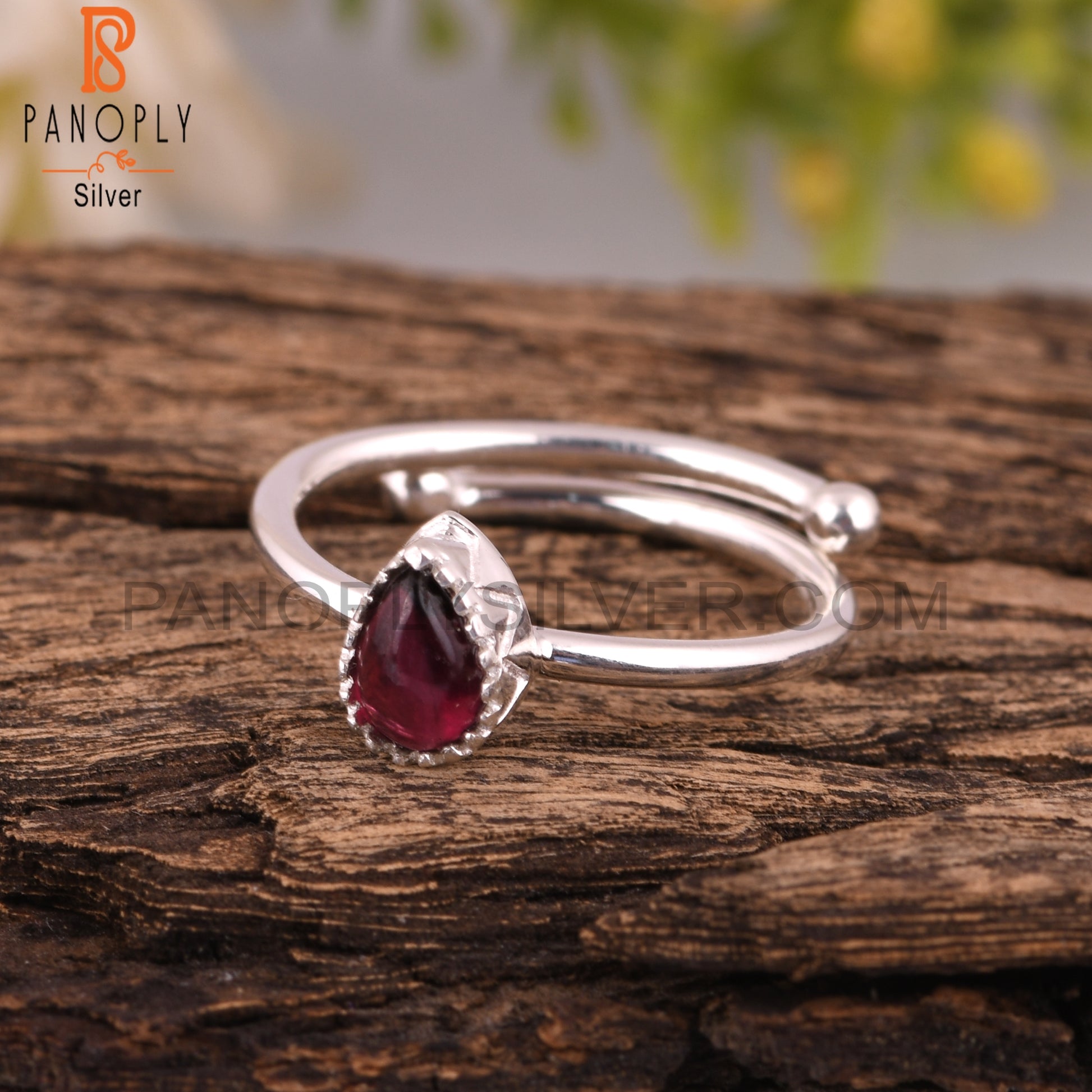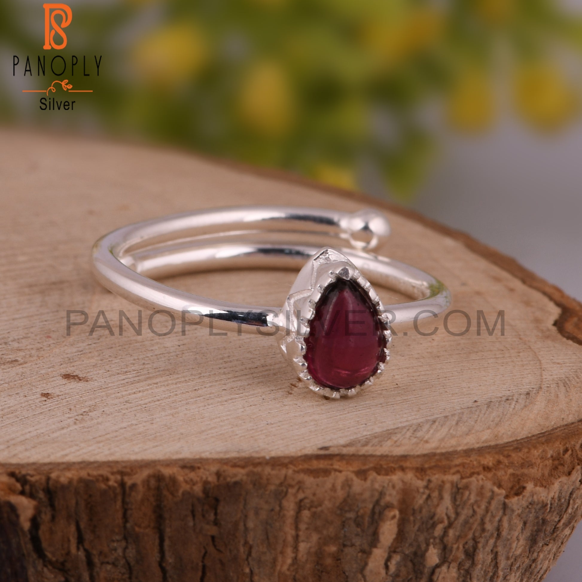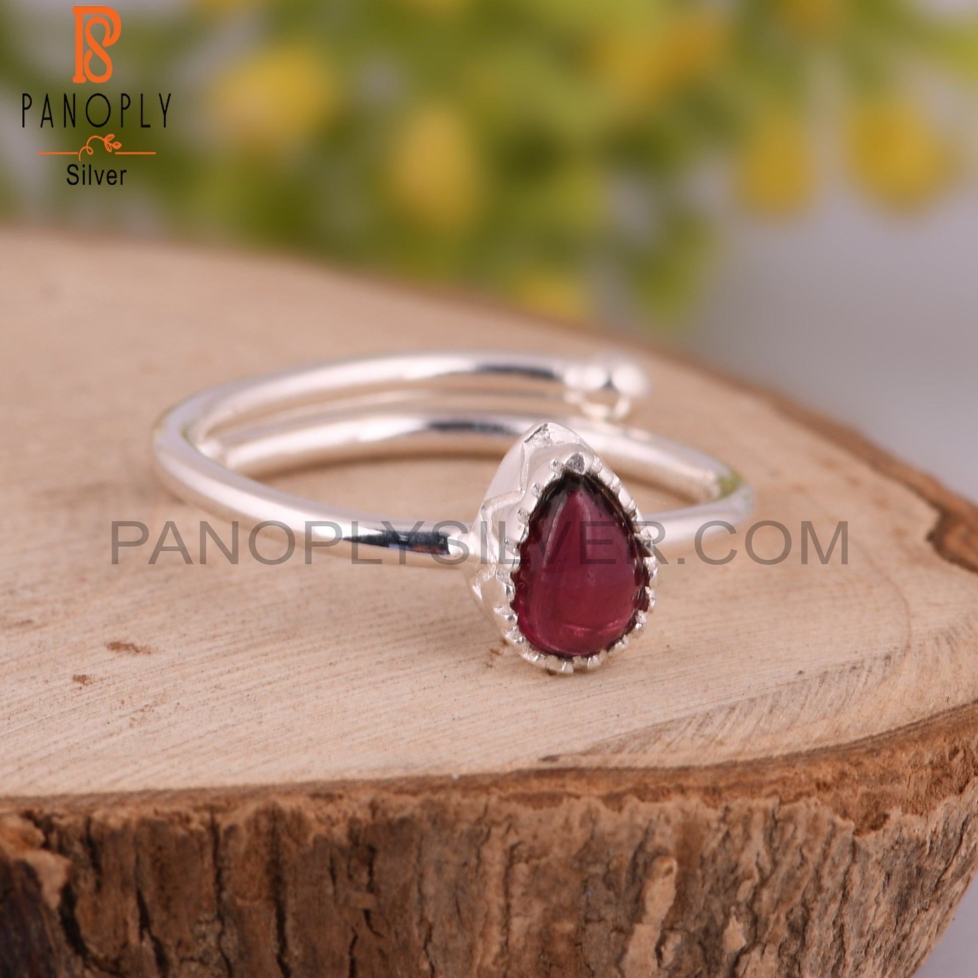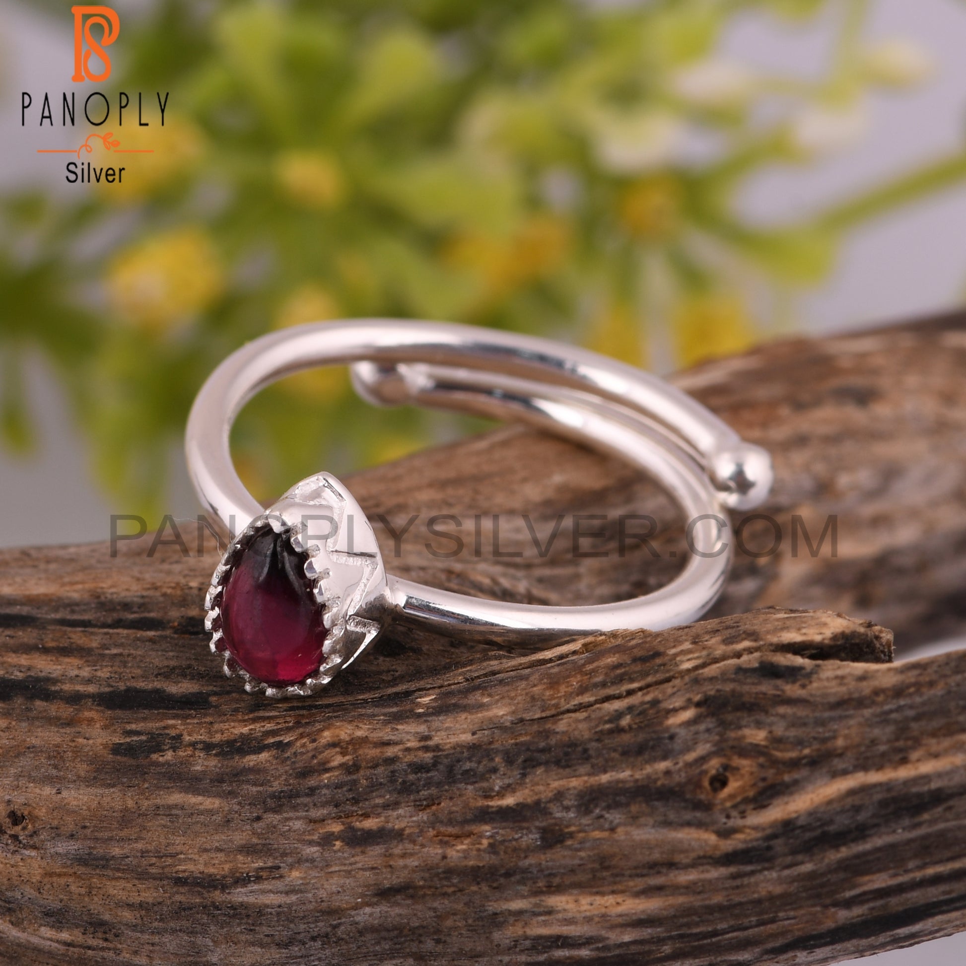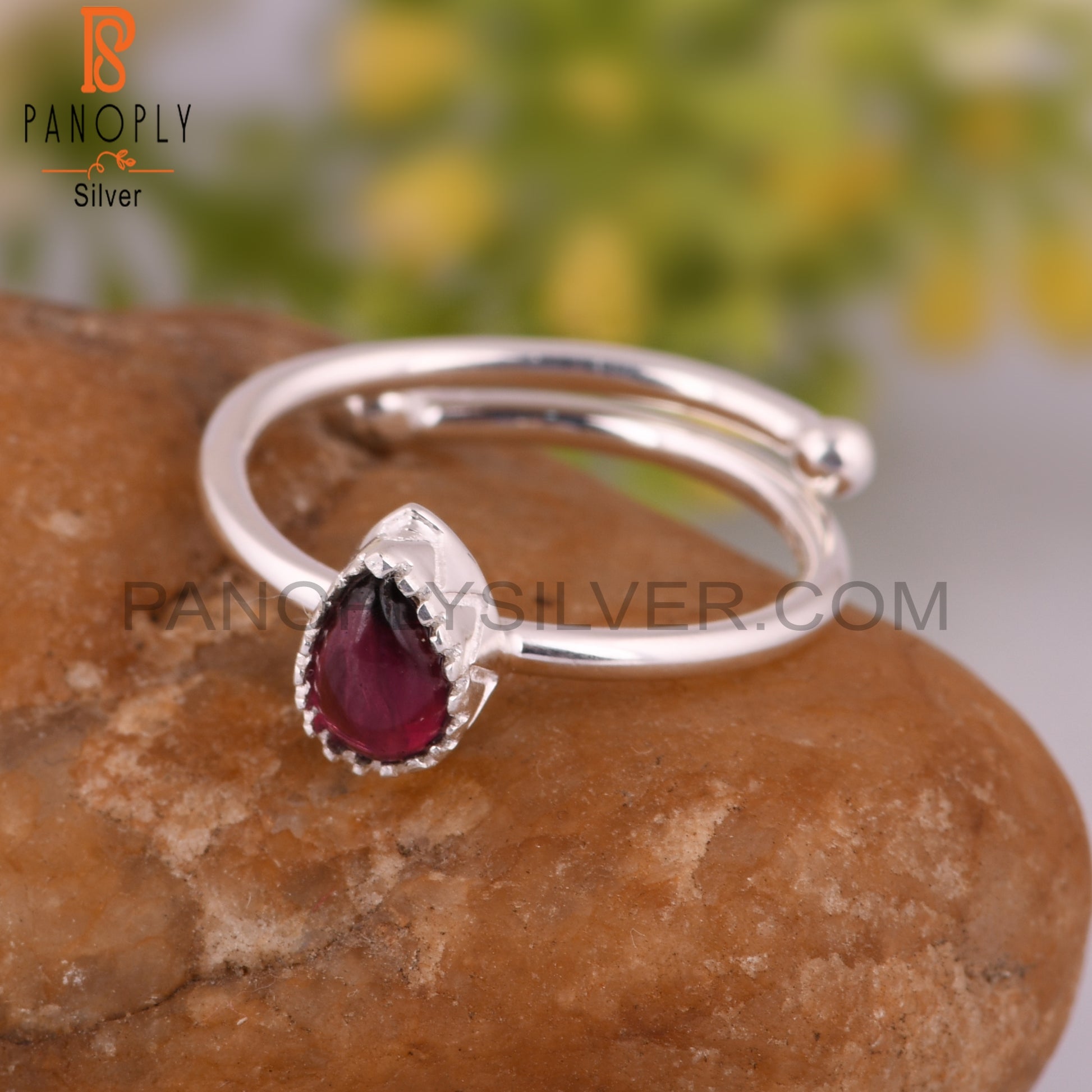 Garnet Pear Shape 925 Sterling Silver Natural Attractive Ring