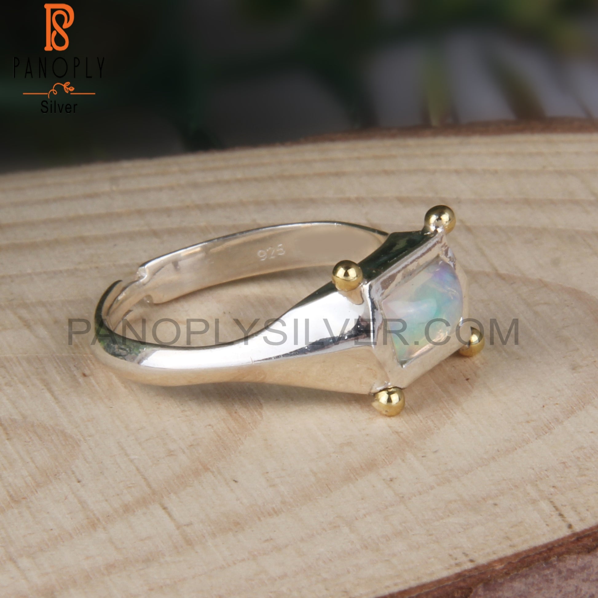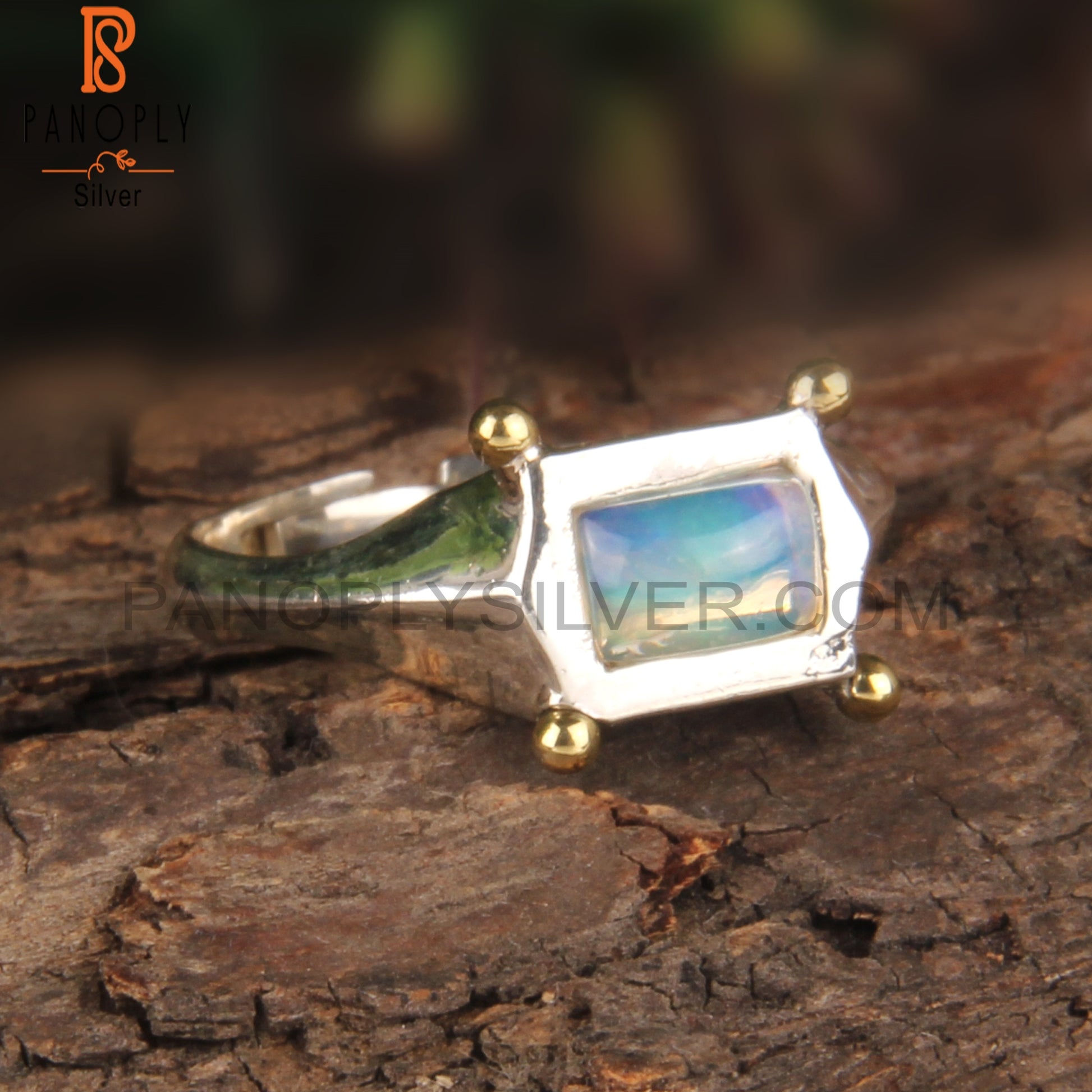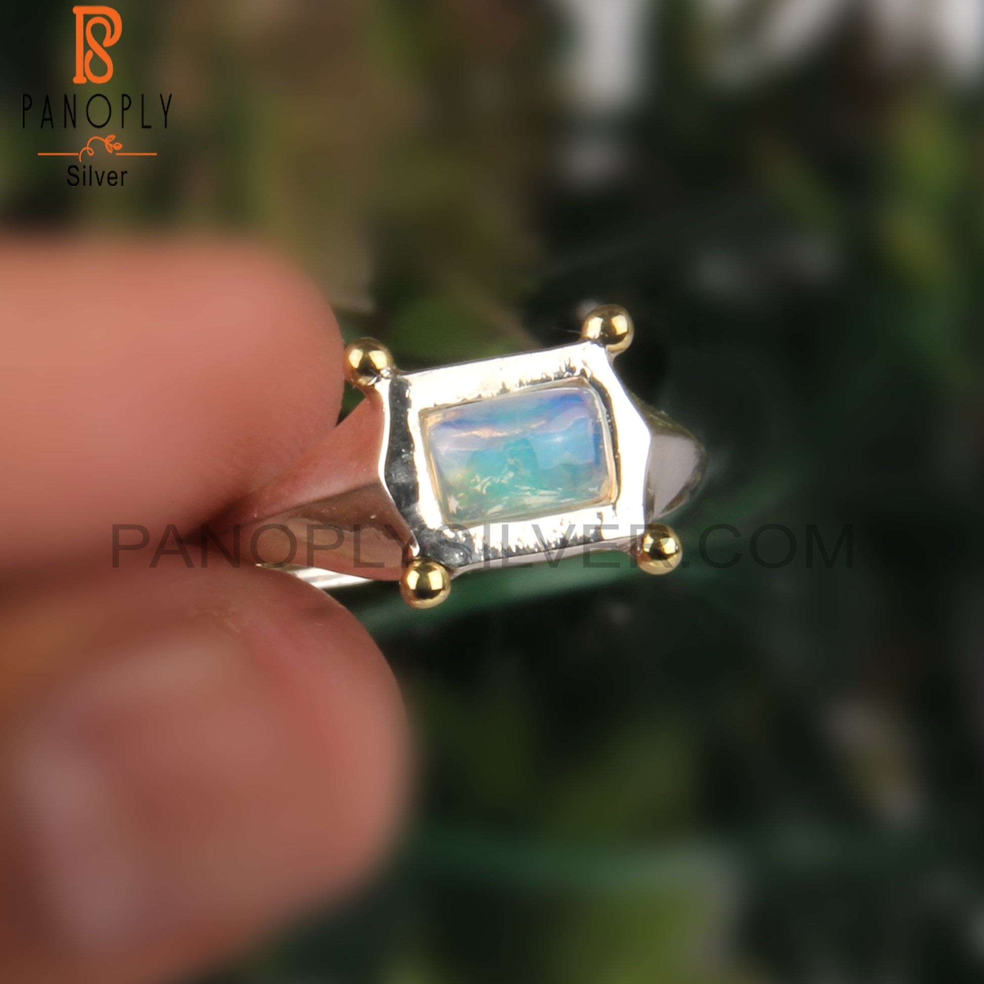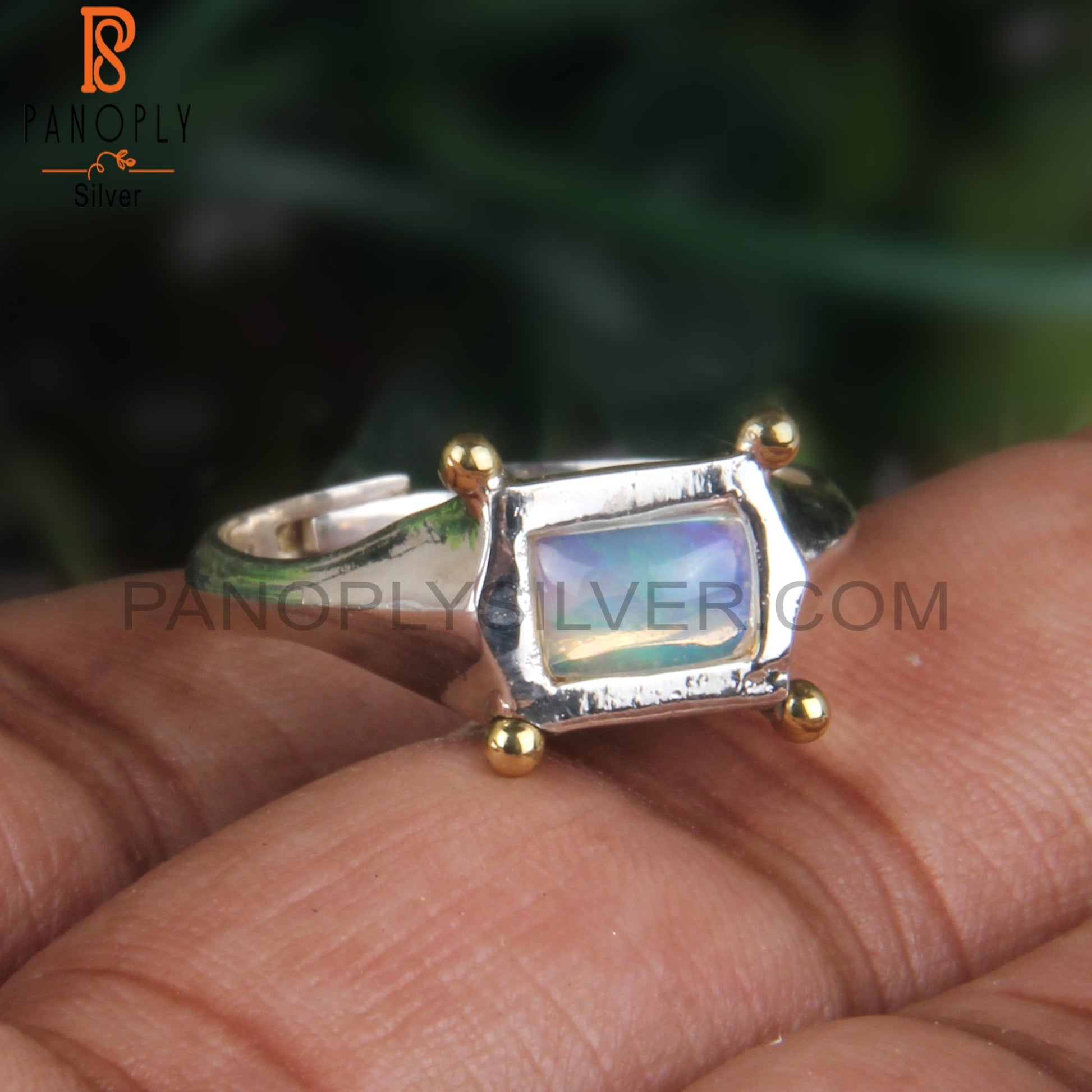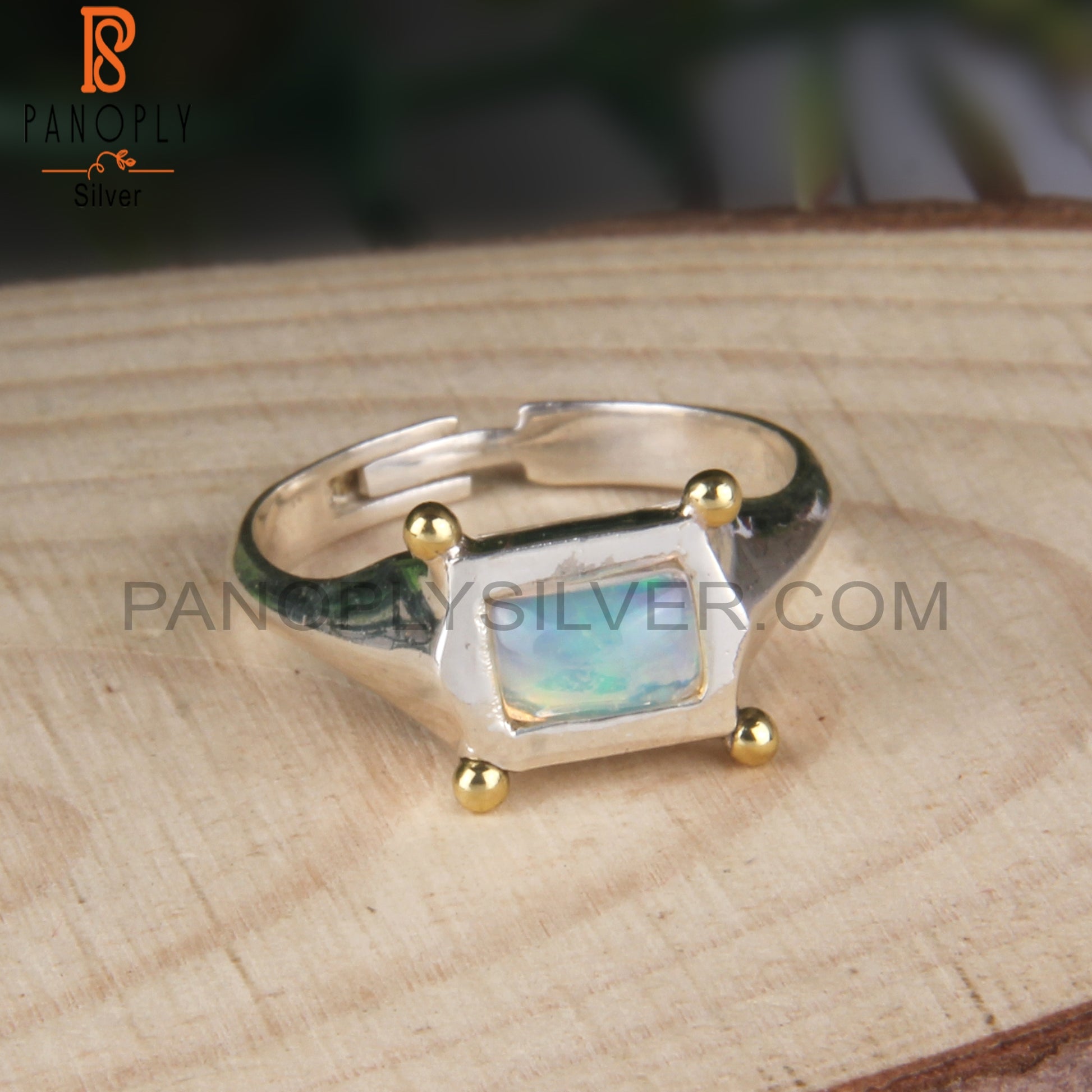 Ethiopian Opal 925 Sterling Silver Simple Hand hammered Ring